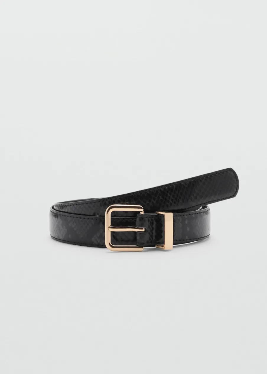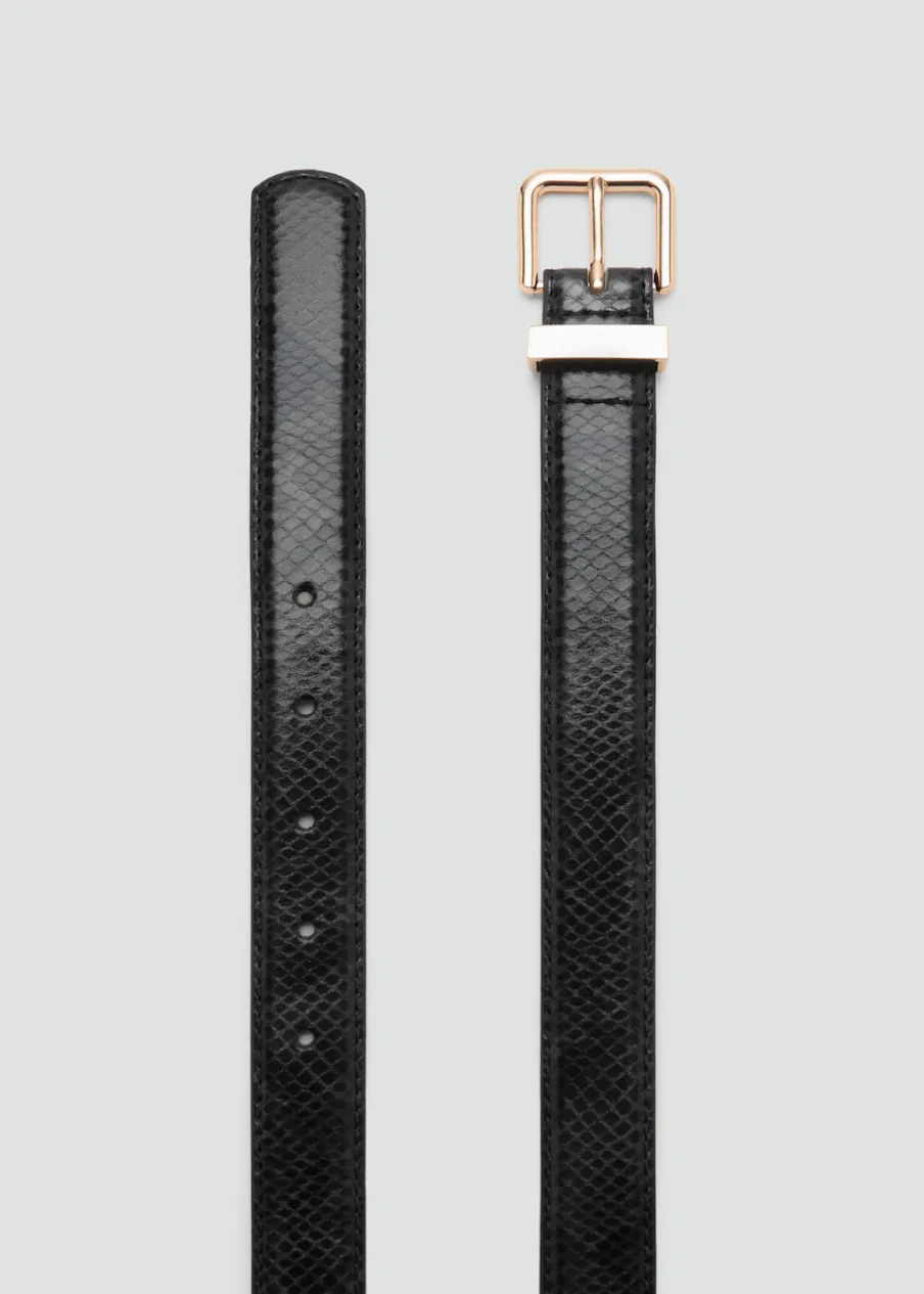 Wzór wężowej skóry. Zapięcie na klamrę. Metalowa klamra.