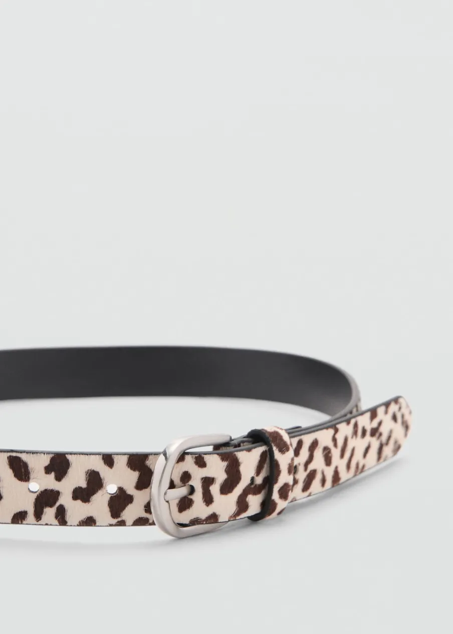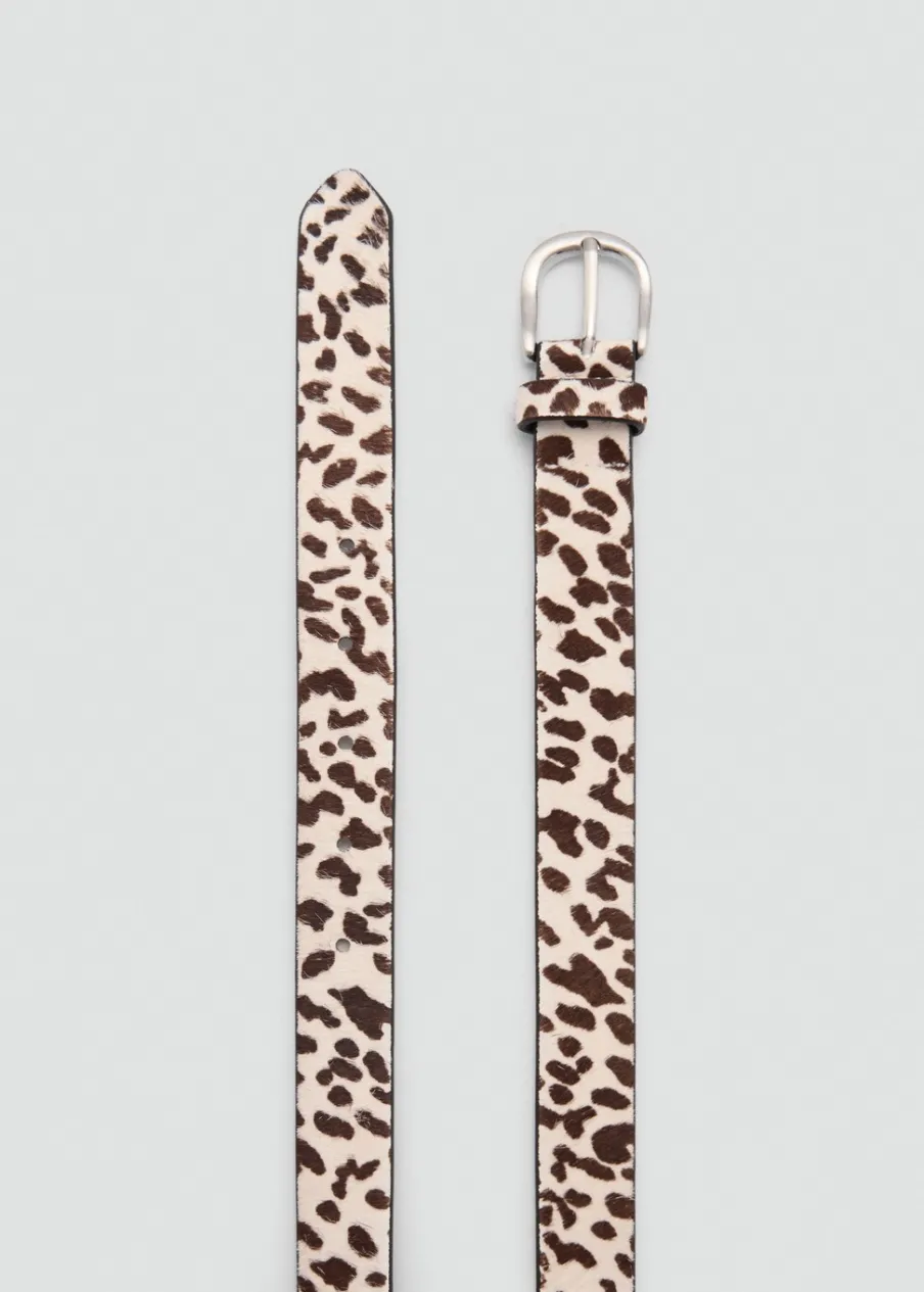 100% skóra bydlęca. Zapięcie na klamrę. Dorabianie dziurek w celu dopasowania rozmiaru gratis w sklepach MANGO. Wstawki w lamparcie cętki.