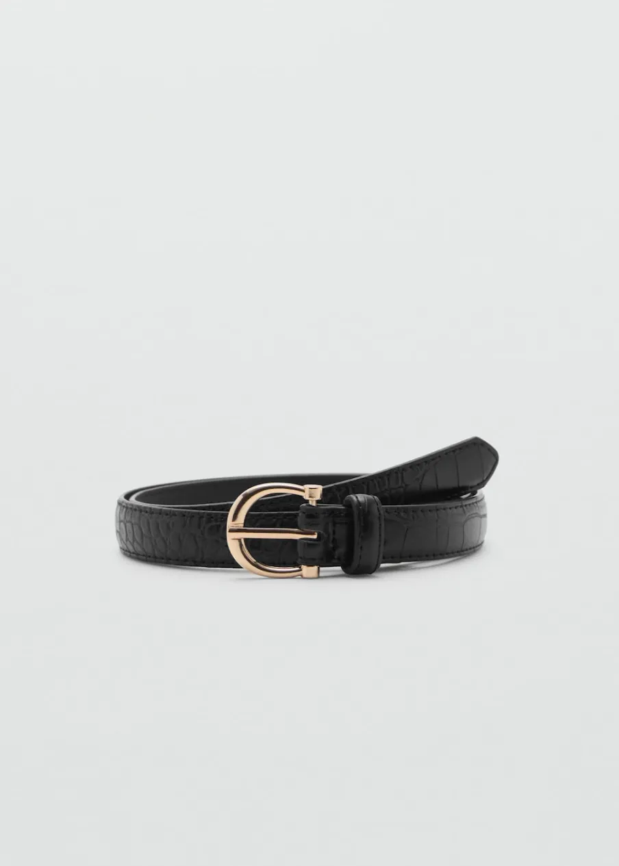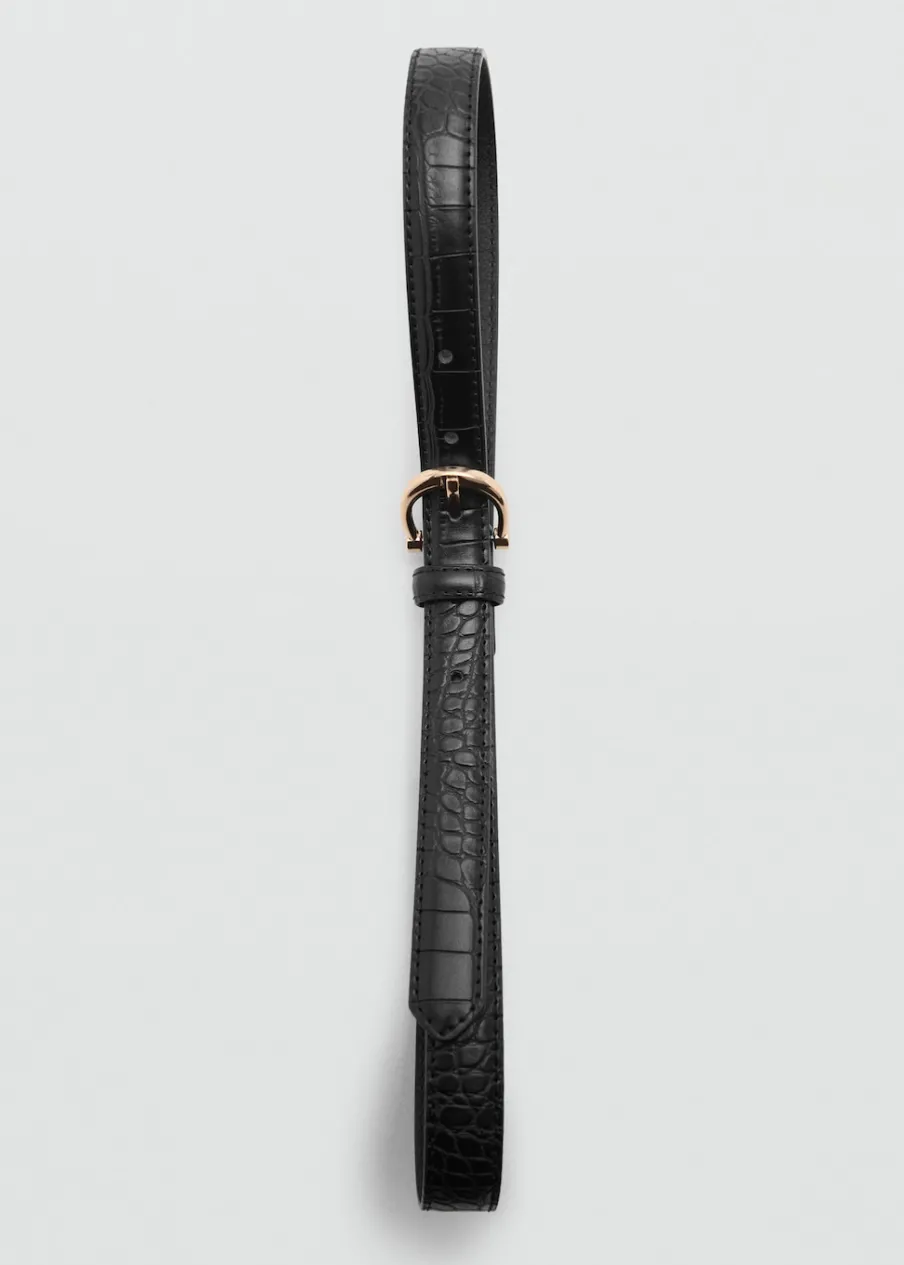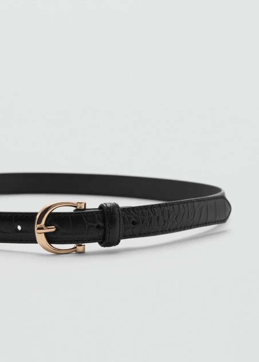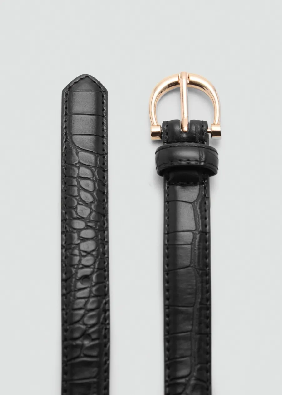 Efekt krokodylej skóry. Zwierzęcy wzór. Metalowa klamra. Regulowana klamerka.