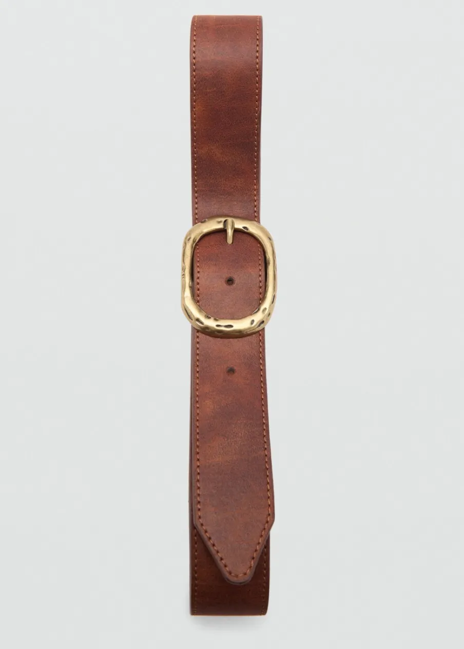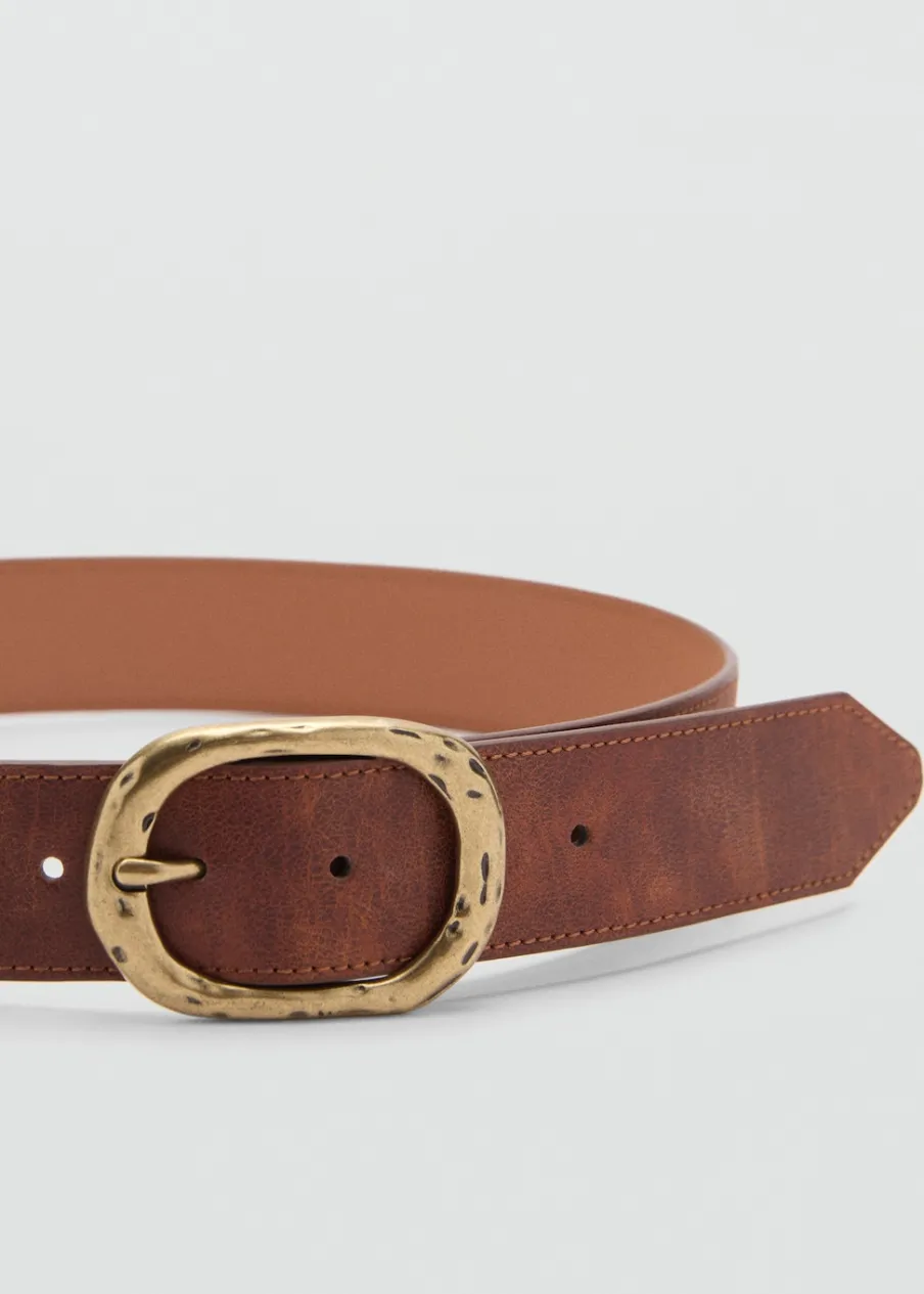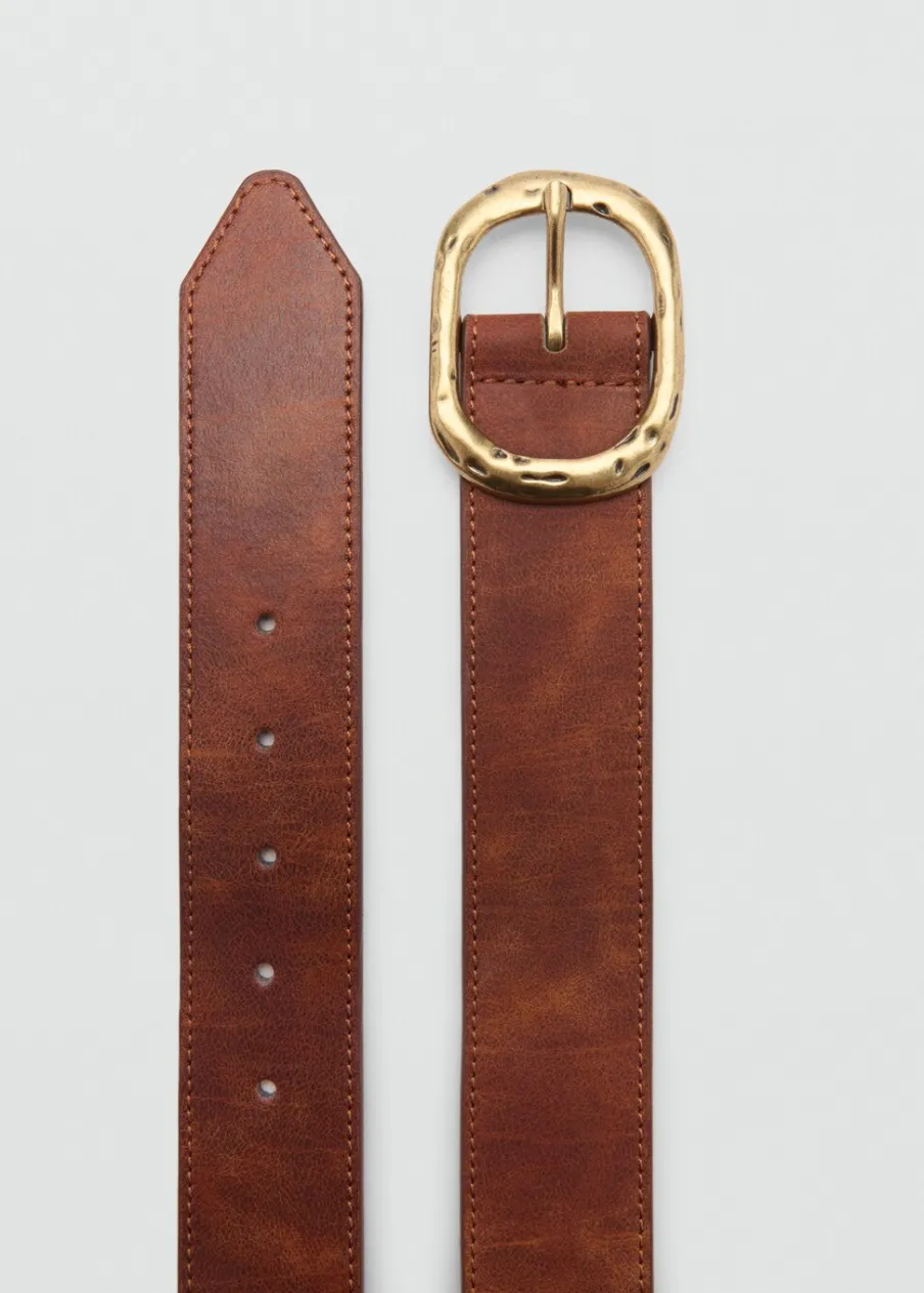 Szeroki fason. Z teksturą. Zapięcie na klamrę. Okrągła klamra. Wytarty efekt.