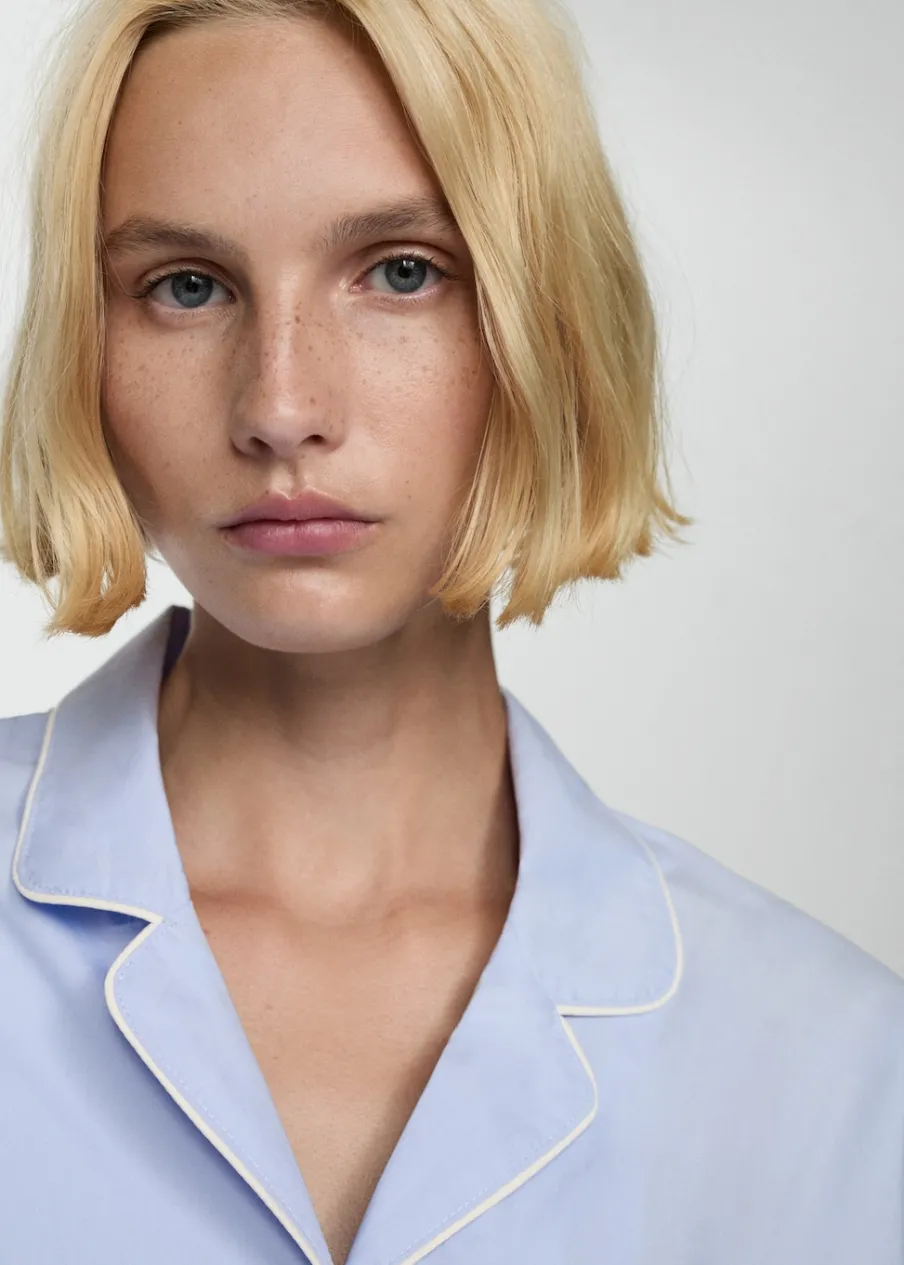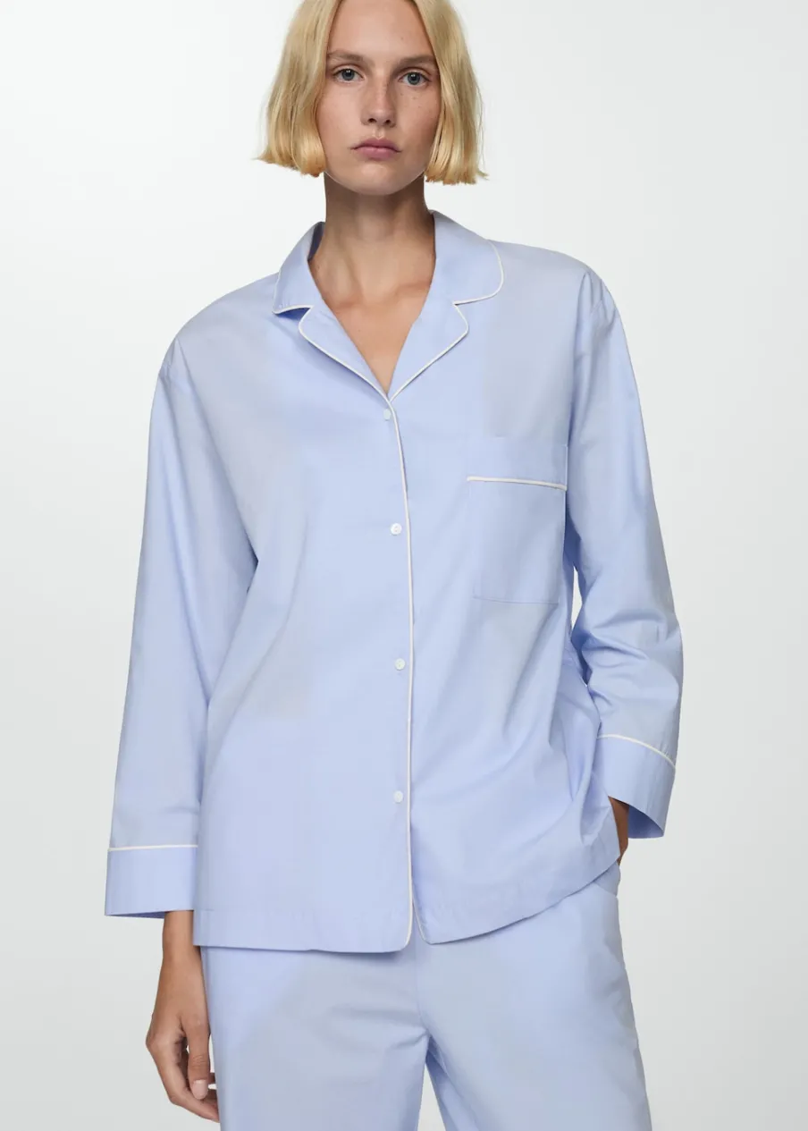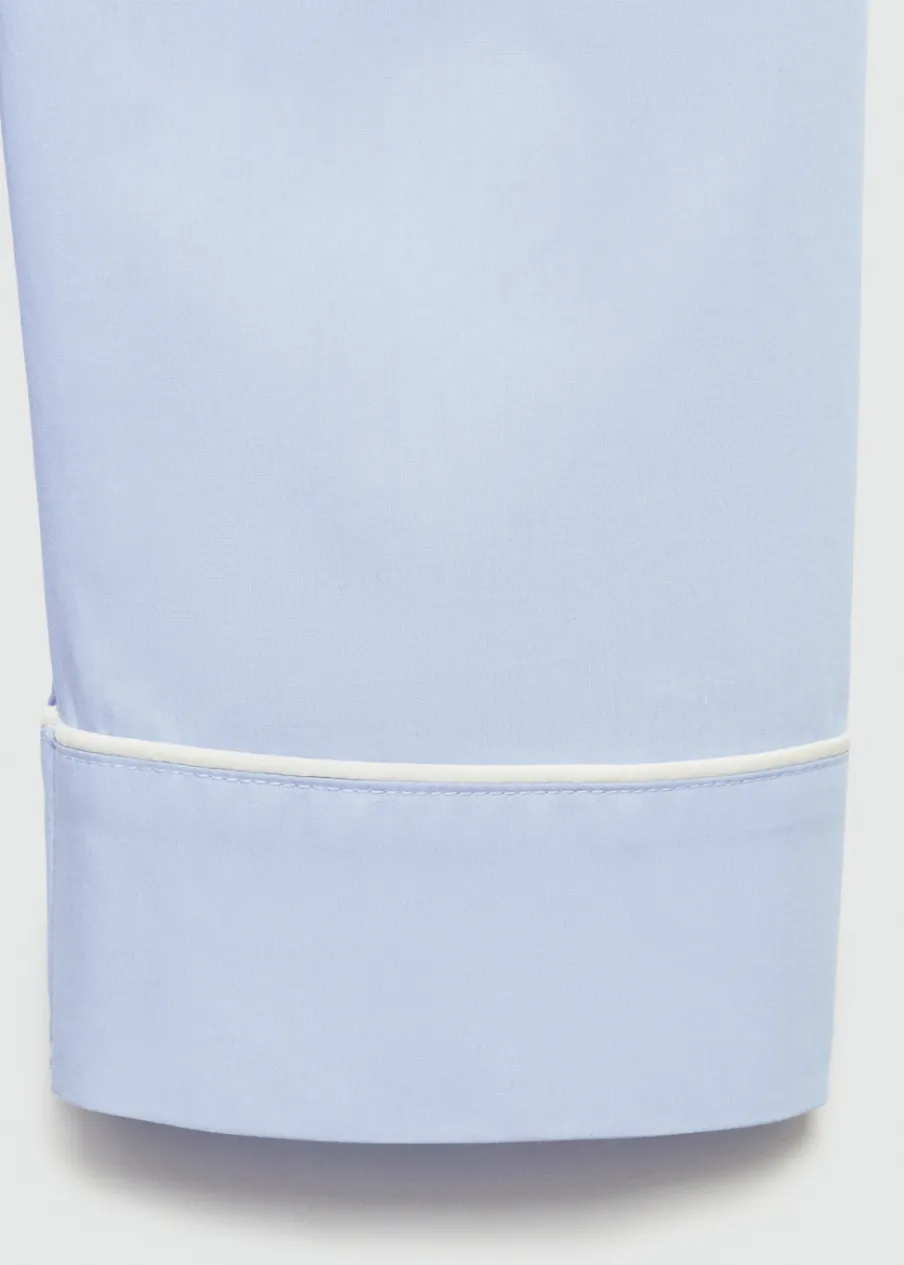 Model prosty. Koszulowy kołnierz. Długi rękaw z guzikami na mankietach. Kieszeń nakładana na piersi. Kontrastowe wykończenia. Total look. Tkanina z 100% bawełny. Zapięcie na guziki z przodu.