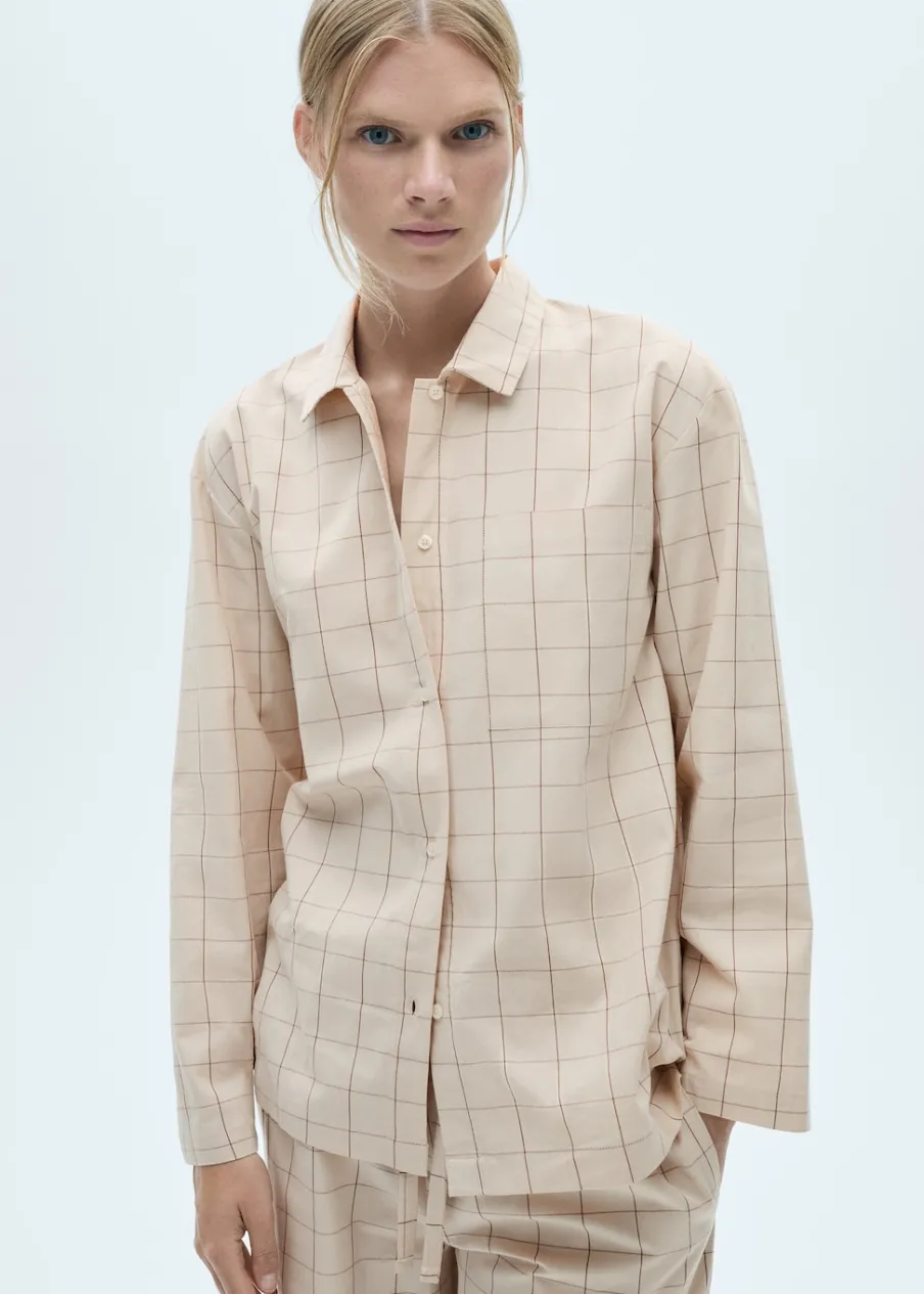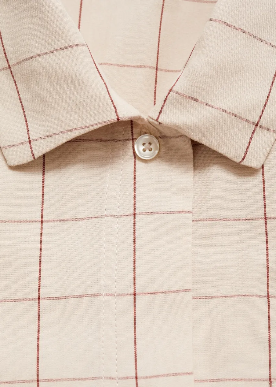 Model prosty. Model długi. Deseń w kratę. Koszulowy kołnierz. Długi rękaw. Elastyczny pas z wiązanym zapięciem. Modelka ma 178 cm wzrostu i nosi rozmiar S/36. Tkanina z 100% bawełny. Zapięcie na guziki z przodu.