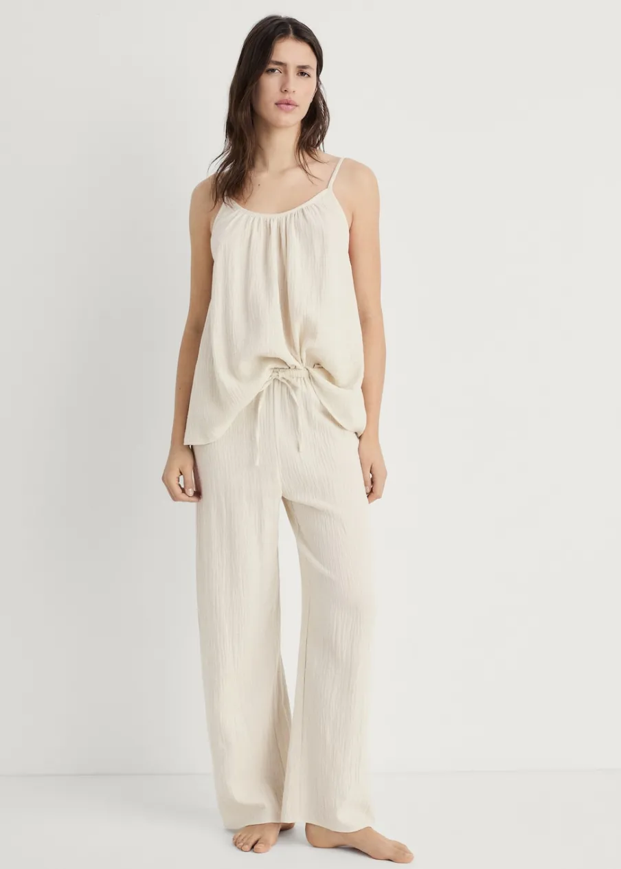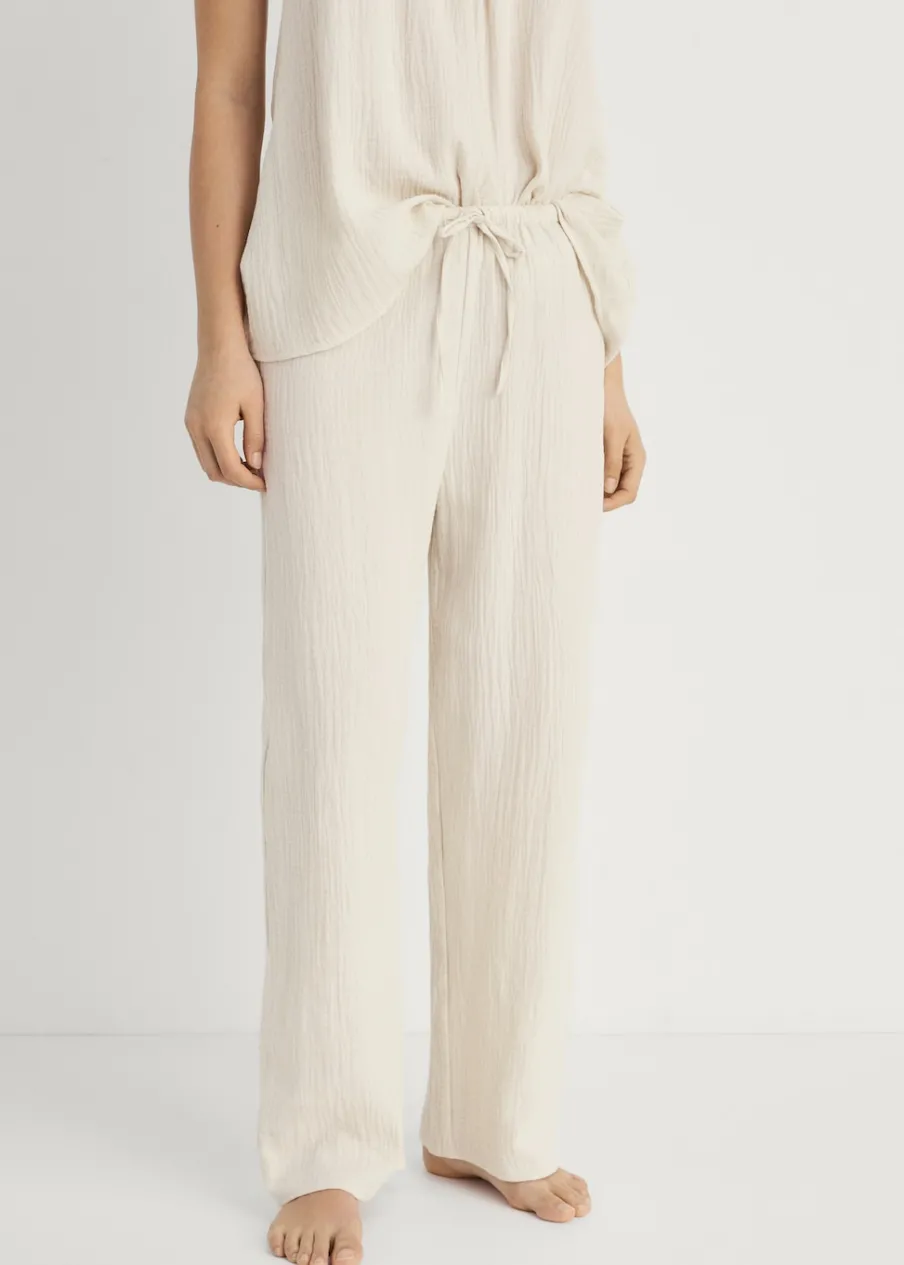 OpisSpodnie od piżamy. Tkanina z 100% bawełny. Regulowany sznurek. Model prosty. Model długi.