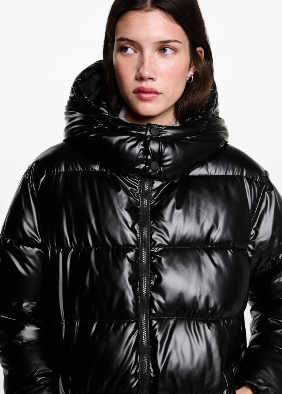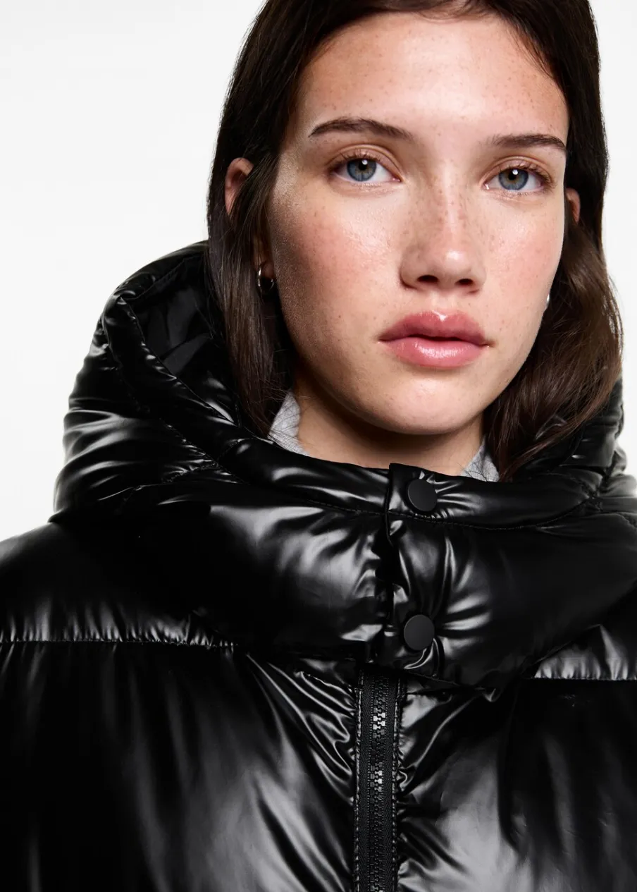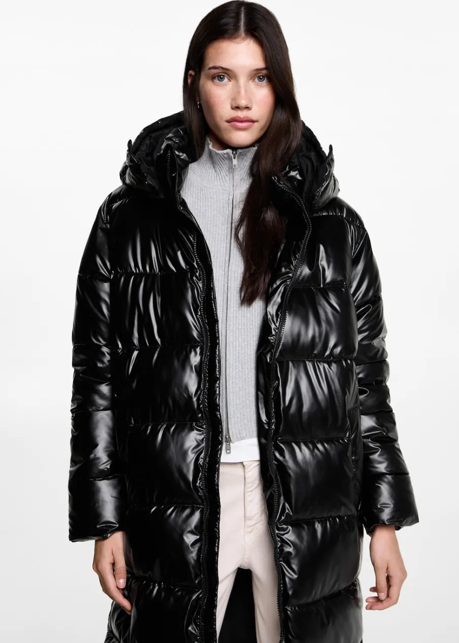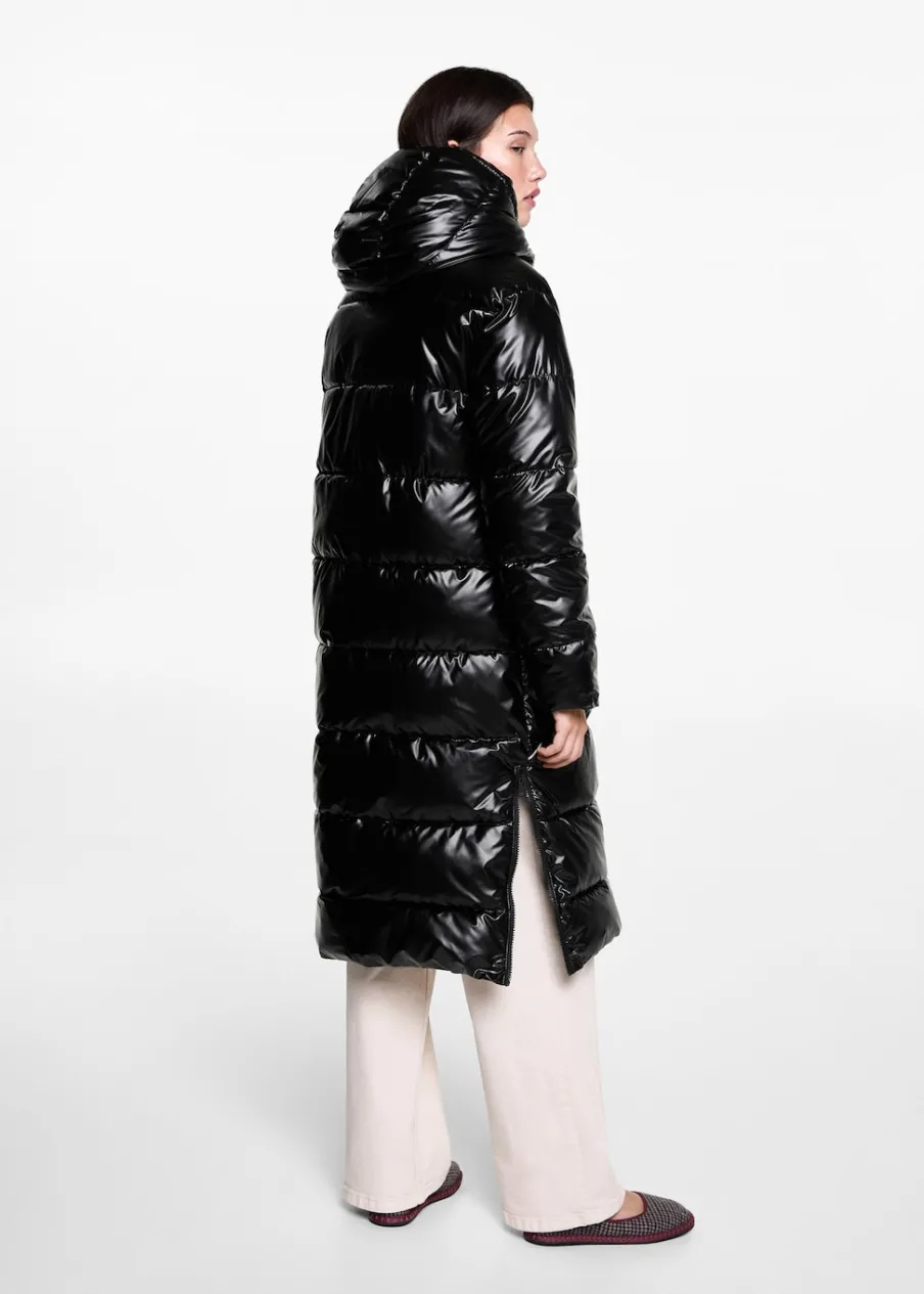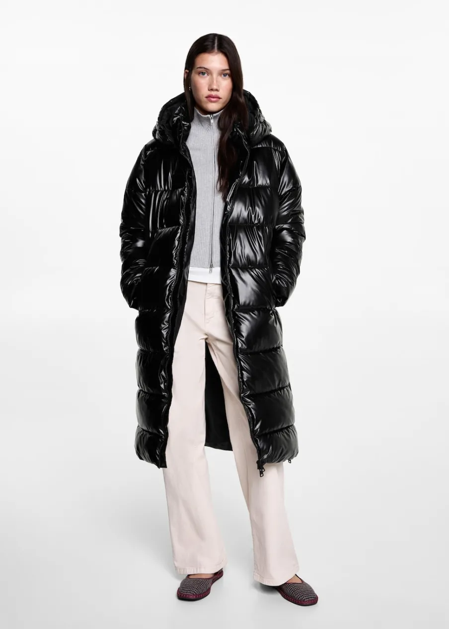 Model pikowany. Model prosty. Model długi. Kaptur z zapięciem na guzik. Dwie kieszenie boczne. Zapięcie na suwak. Modelka ma 172 cm wzrostu i nosi rozmiar M.