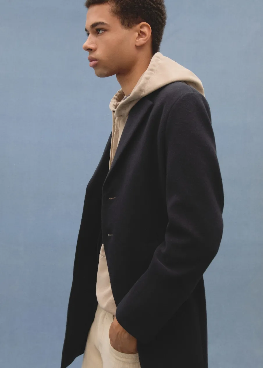 Model prosty. Zapięcie na guziki. Model ma 175 cm wzrostu i nosi rozmiar M. Klapy. Długi rękaw. Dwie kieszenie boczne.