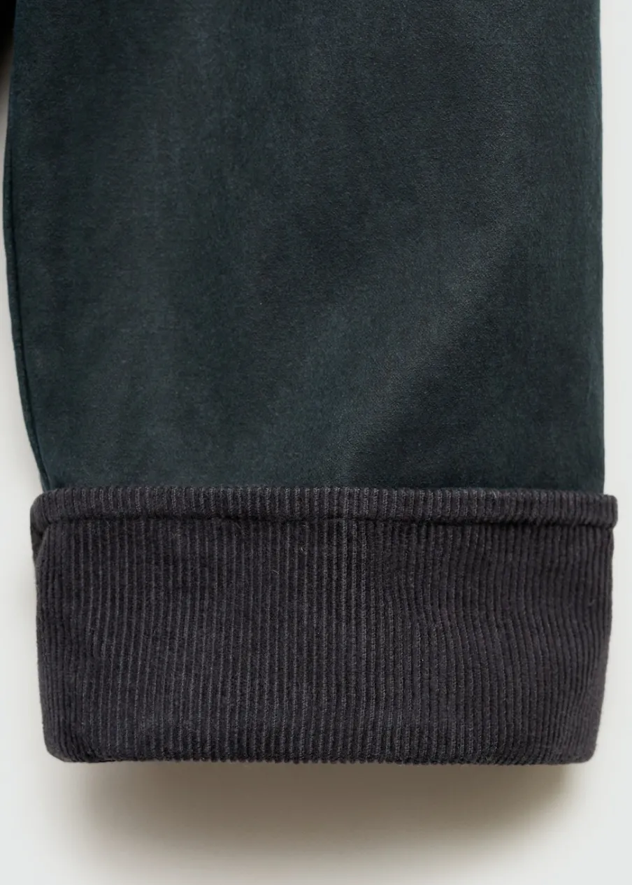 OpisTkanina z bawełną. Model prosty. Wstawki ze sztruksu. Krótki krój. Dwie kieszenie boczne. Zapięcie na suwak i g…