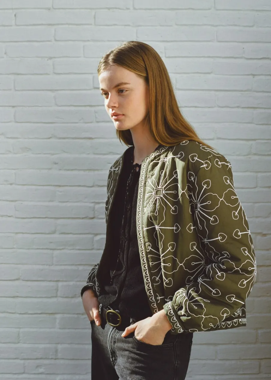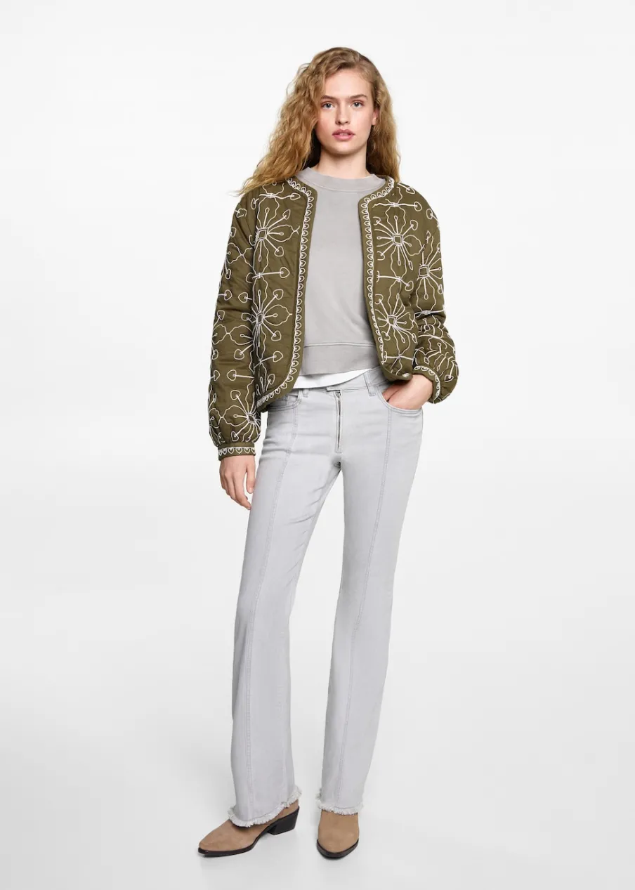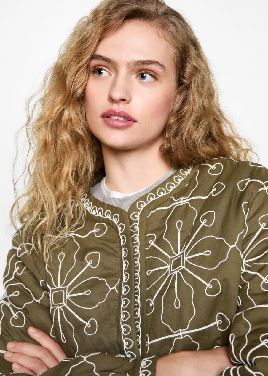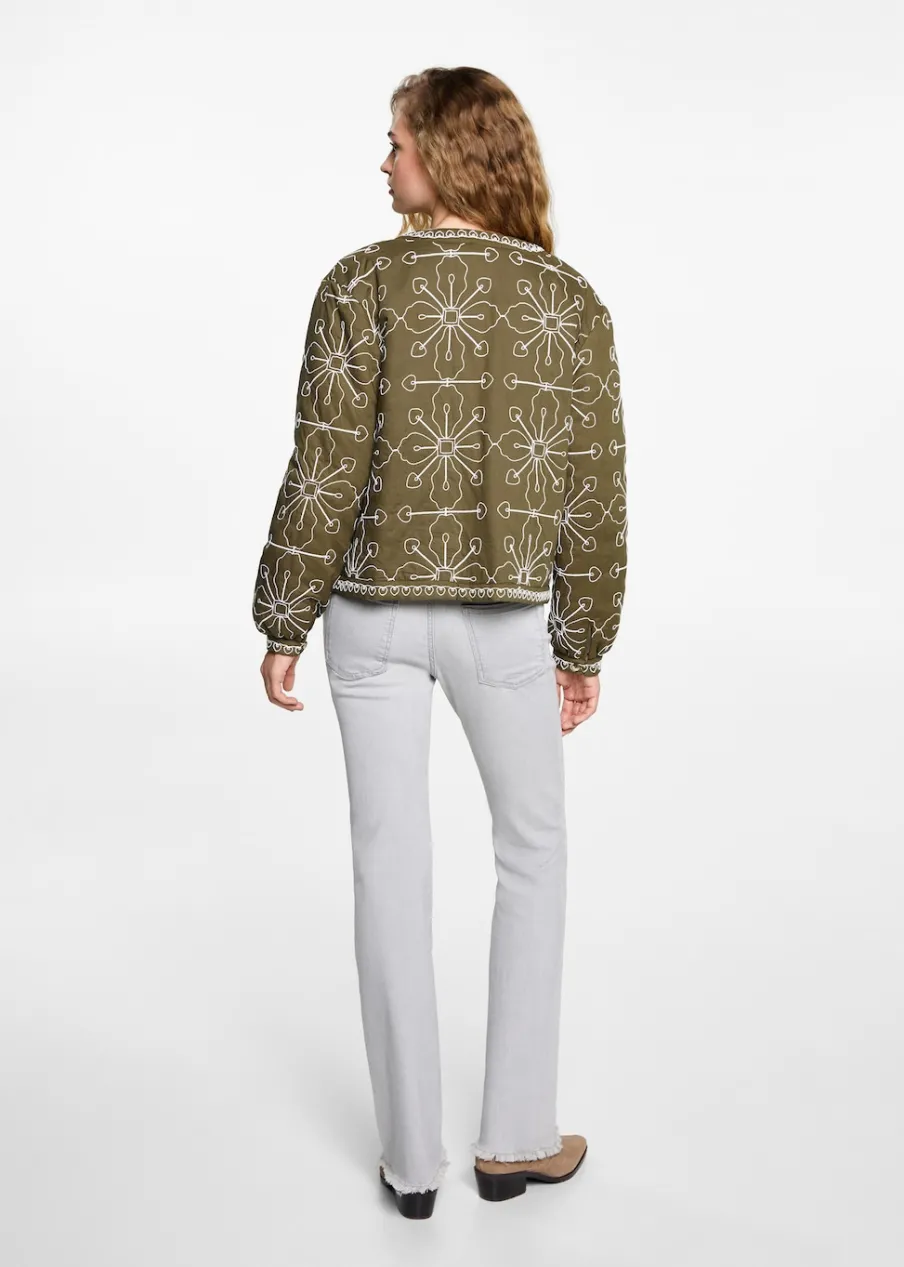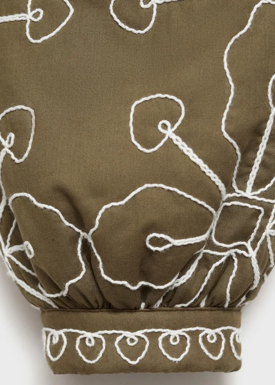 Tkanina z 100% bawełny. Model prosty. Haftowana tkanina. Długi rękaw. Prosty dekolt. Rozporek z przodu. Bez zapięcia.