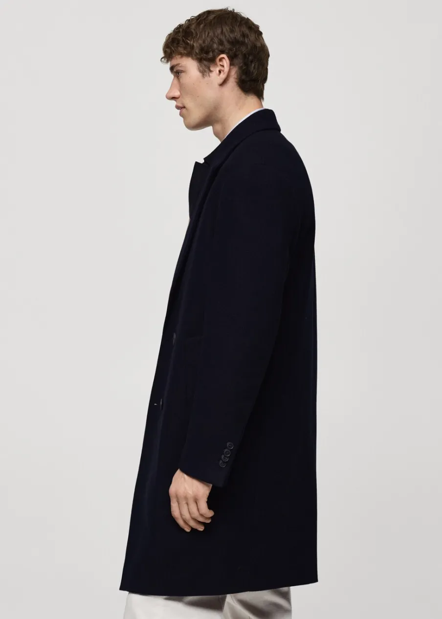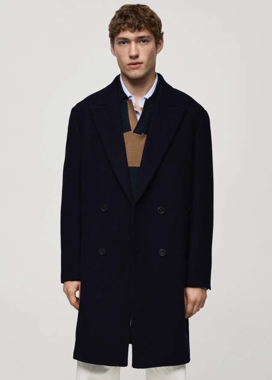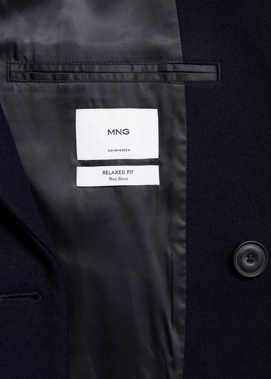 OpisRelaxed fit. Tkanina mieszanka wełny. Model długi. Dwurzędowe zapięcie. Wewnętrzna podszewka. Zapinane mankiety…