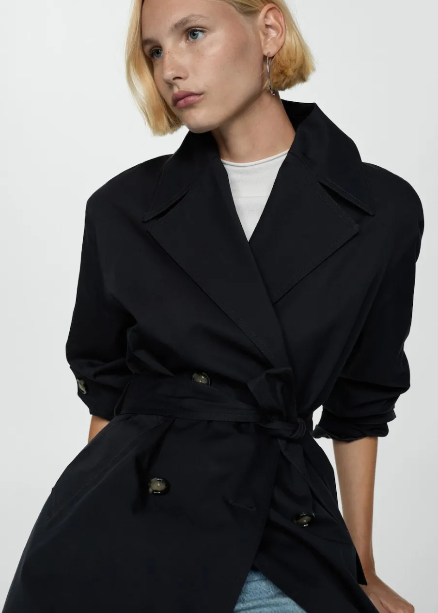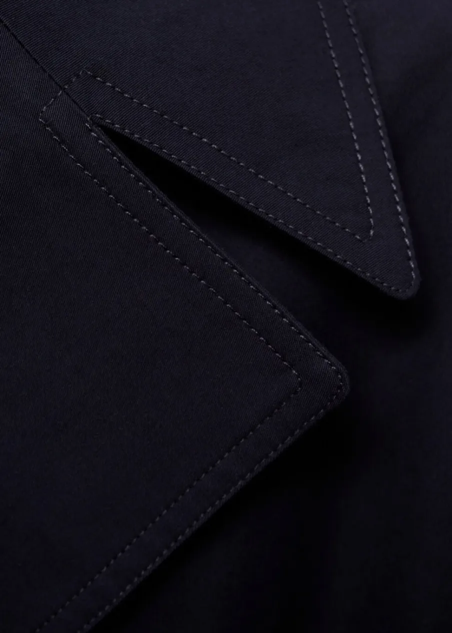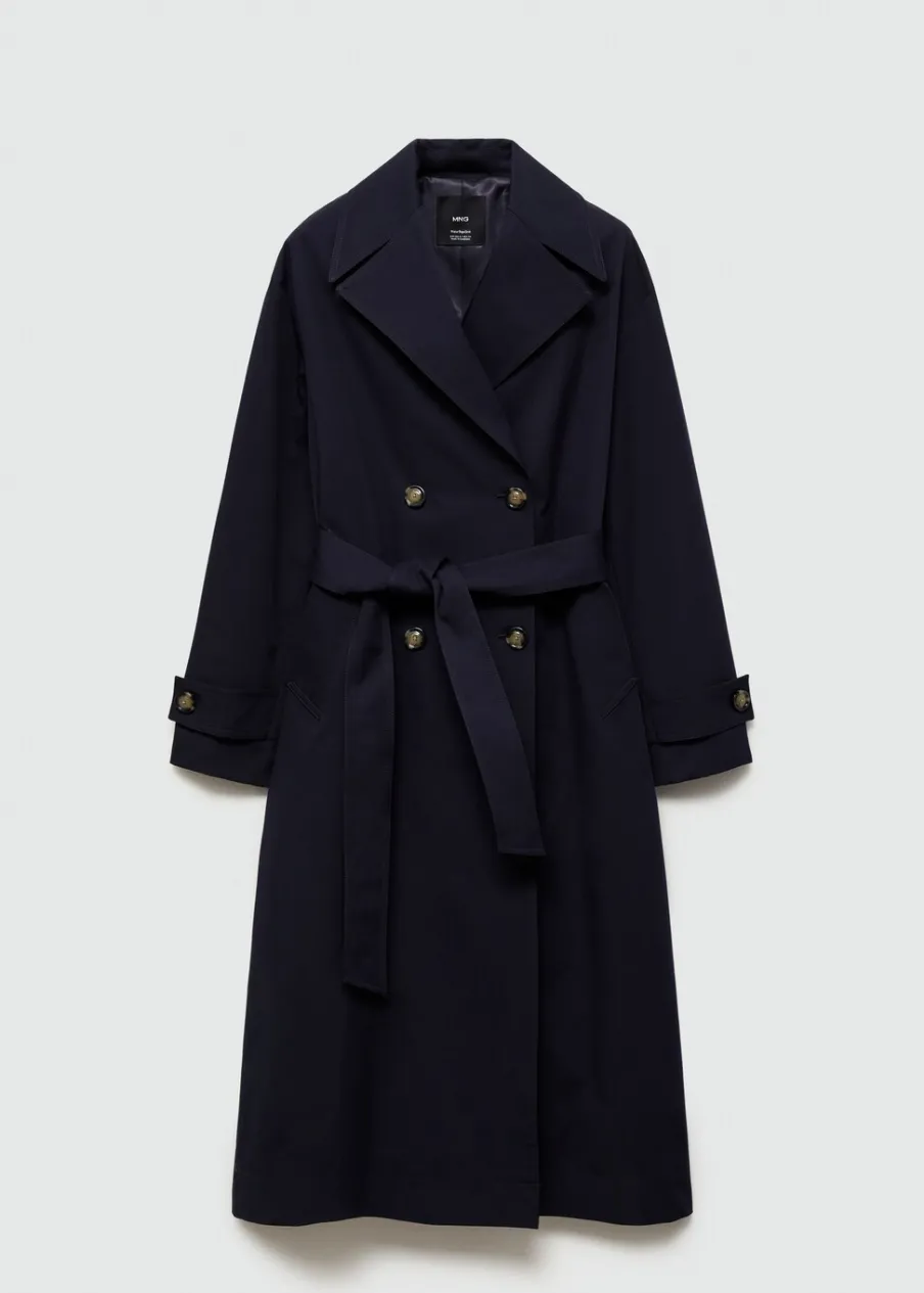 Tkanina mieszanka bawełny. Model prosty. Model długi. Model zakładany. Kołnierz z klapami. Długi rękaw z guzikami na mankietach. Szlufki. Odpinany pasek. Kieszenie boczne. Zapięcie z przodu na guziki. Guziki z imitacji masy perłowej. Wewnętrzna podszewka. Dostępne w Plus Size. Stylizacje biurowe. Water Repellent: trwałe wykończenie tego modelu chroni przed lekkim deszczem, odpycha cząsteczki wody i krople deszczu.