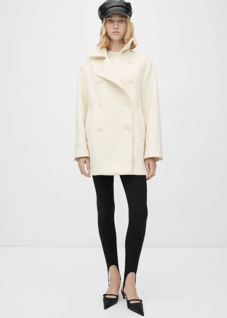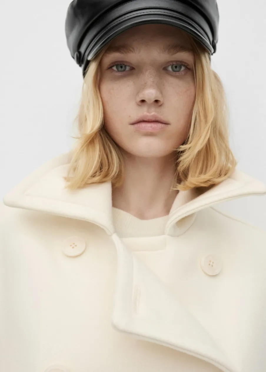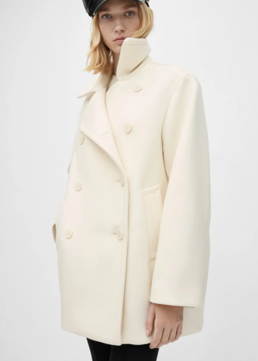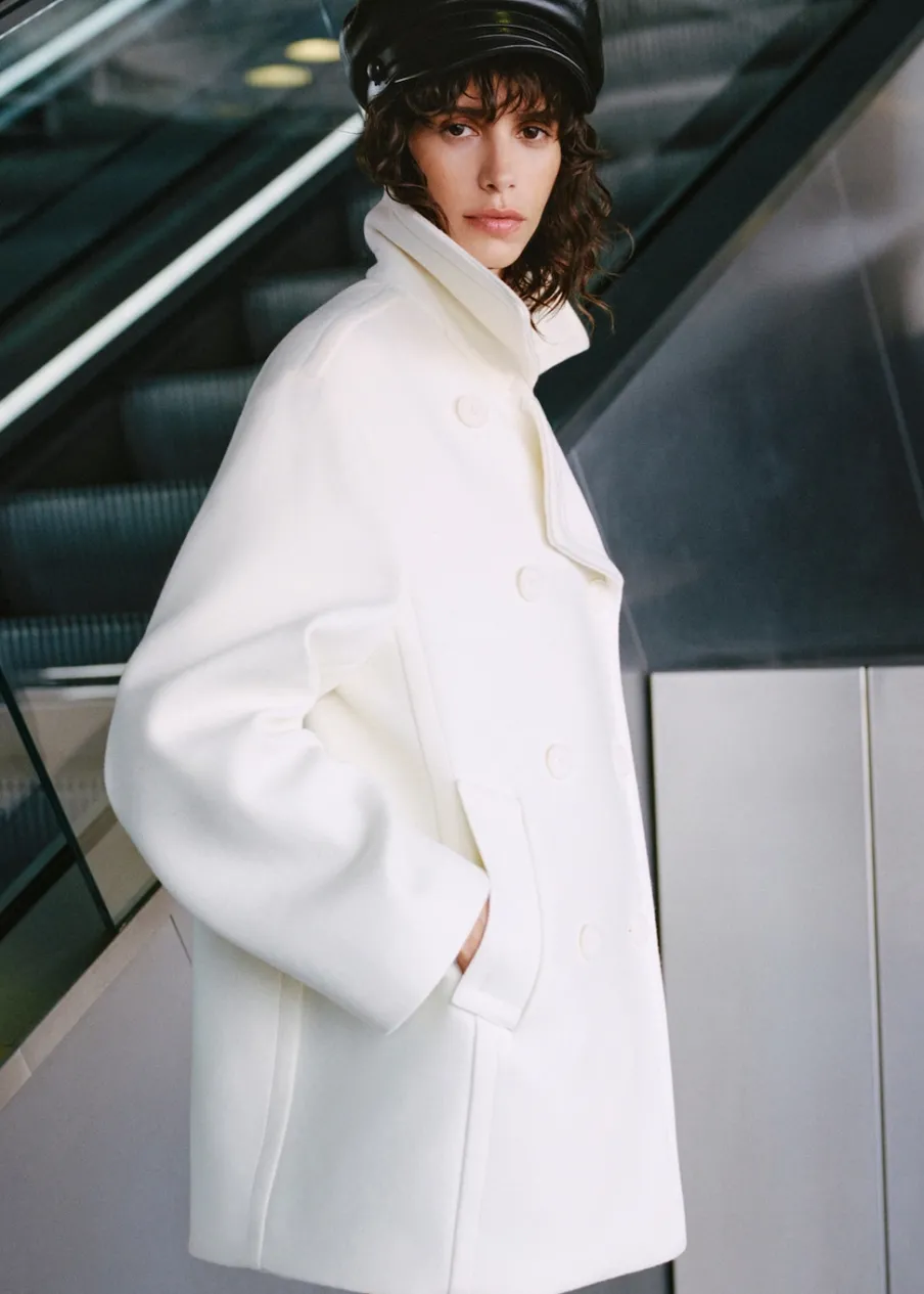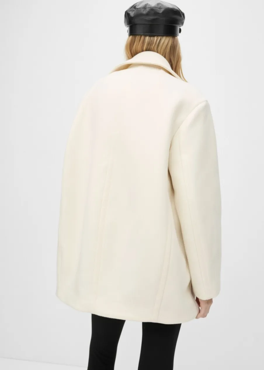 Fason o średniej długości. Model oversize. Długi rękaw. Dwie kieszenie boczne. Dwurzędowe zapięcie. Kolekcja Selection. Modelka ma 178 cm wzrostu i nosi rozmiar S/36. Tkanina z mieszanki wełny dziewiczej. Kołnierz z klapami. Model prosty.
