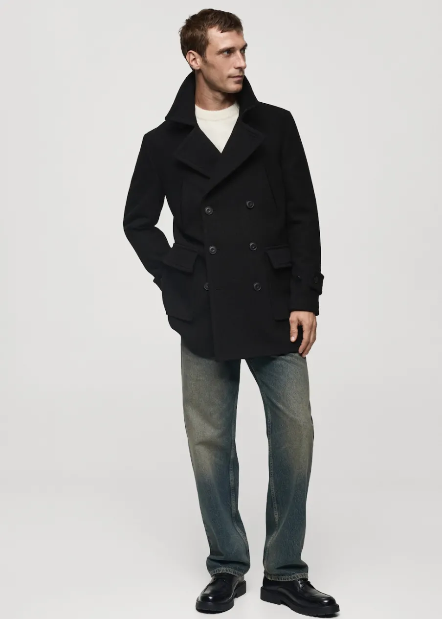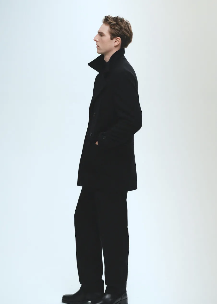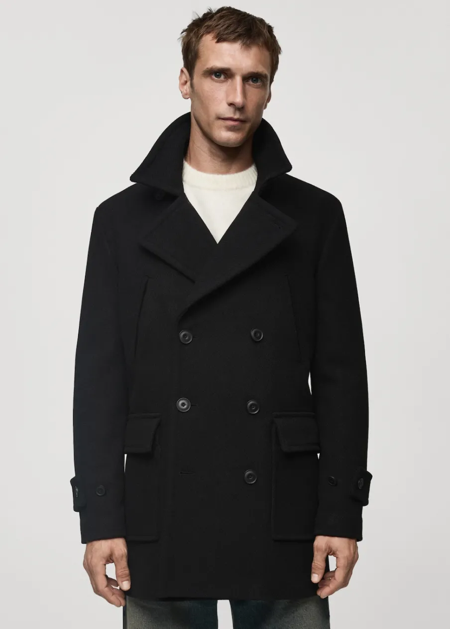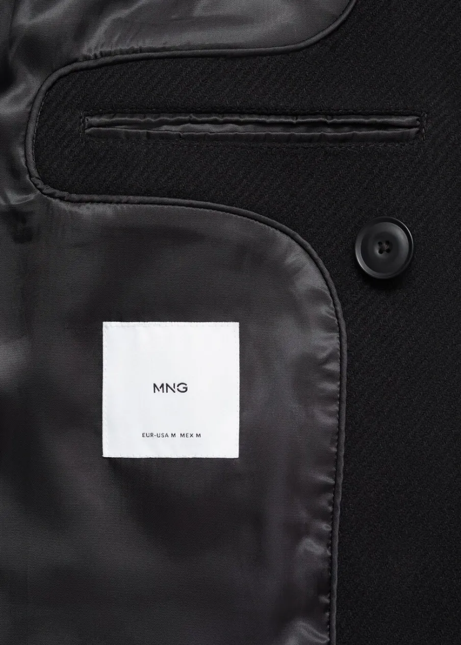 Wyłącznie online. Krój regular. Tkanina mieszana z recyklowanej wełny. Klapy otwarte. Dwurzędowe zapięcie na guziki z przodu. Dwie kieszenie z wypustkami na piersi. Dwie kieszenie z klapą naszyte z przodu. Zapinane mankiety. Wewnętrzna podszewka. Dwie kieszenie z obszyciem wewnątrz. Rozcięcie pośrodku u dołu. Model ma 185 cm wzrostu i nosi rozmiar M.