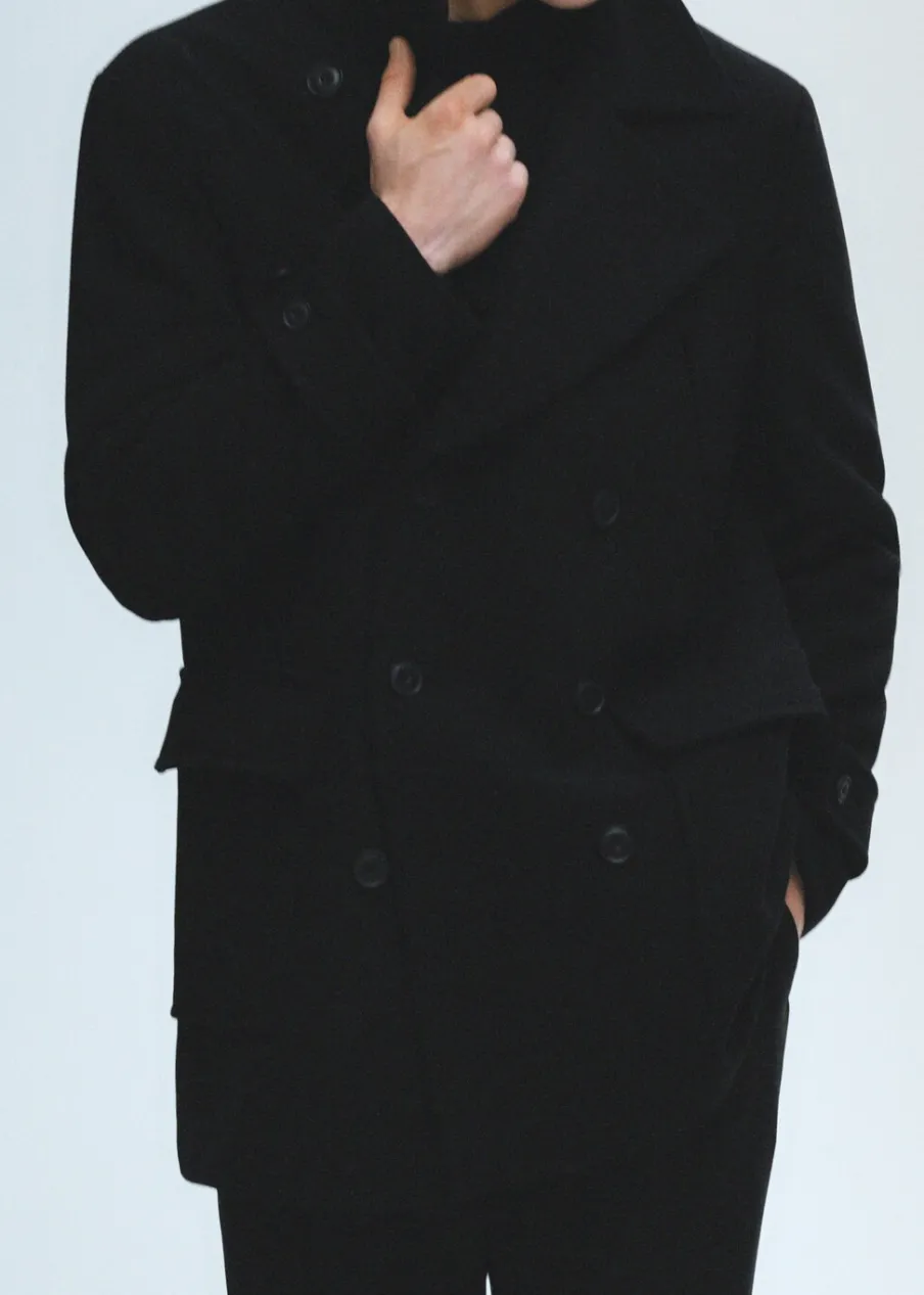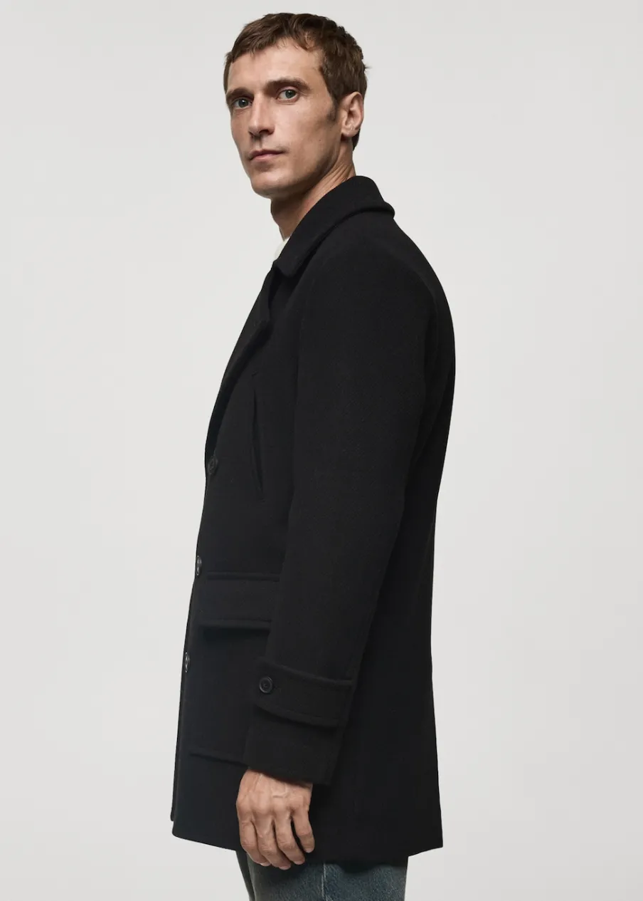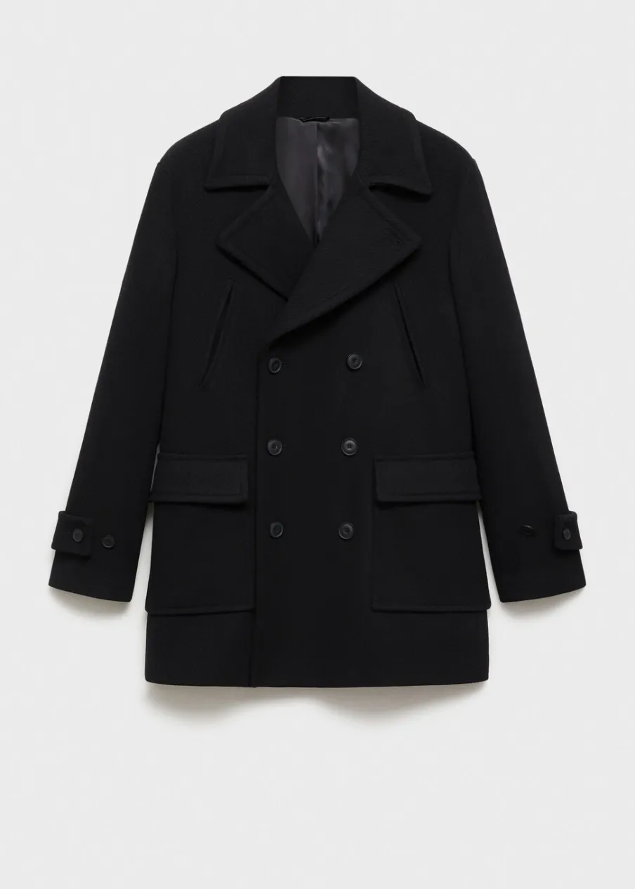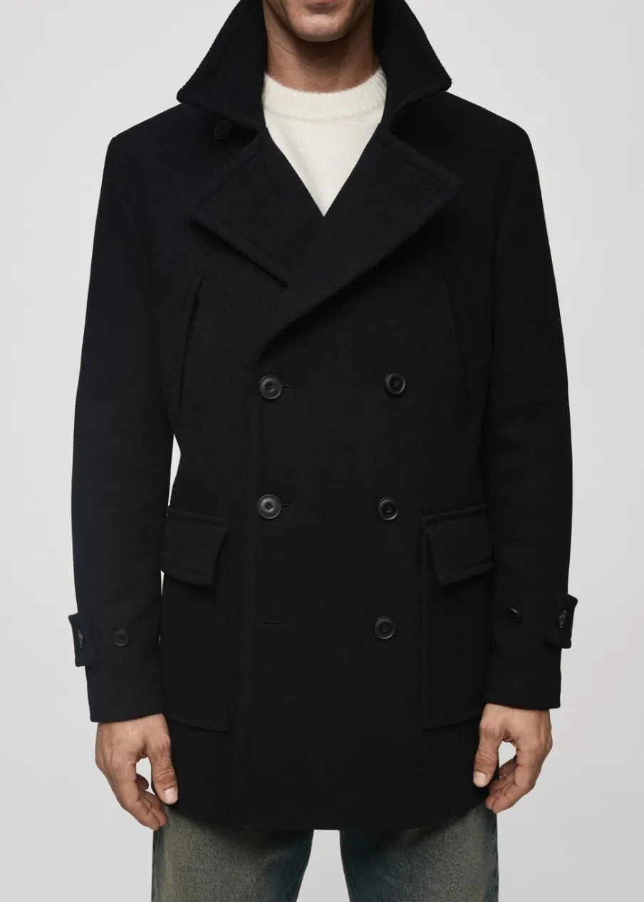 Wyłącznie online. Krój regular. Tkanina mieszana z recyklowanej wełny. Klapy otwarte. Dwurzędowe zapięcie na guziki z przodu. Dwie kieszenie z wypustkami na piersi. Dwie kieszenie z klapą naszyte z przodu. Zapinane mankiety. Wewnętrzna podszewka. Dwie kieszenie z obszyciem wewnątrz. Rozcięcie pośrodku u dołu. Model ma 185 cm wzrostu i nosi rozmiar M.