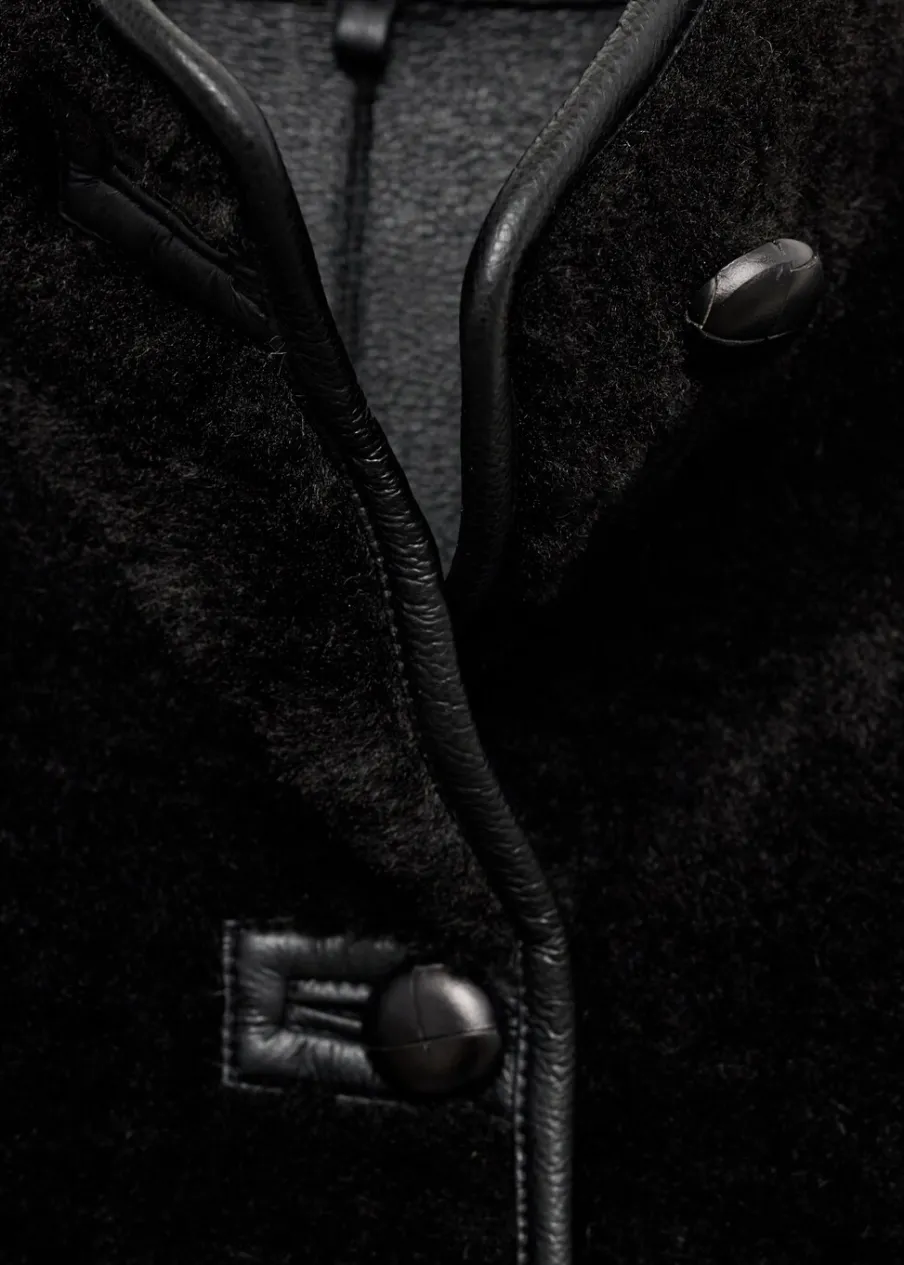 Futrzana tkanina. Włochata tekstura. Model prosty. Model oversize. Golf. Długi rękaw. Dwie kieszenie z przodu. Zapięcie z przodu na guzik. Wewnętrzna podszewka.