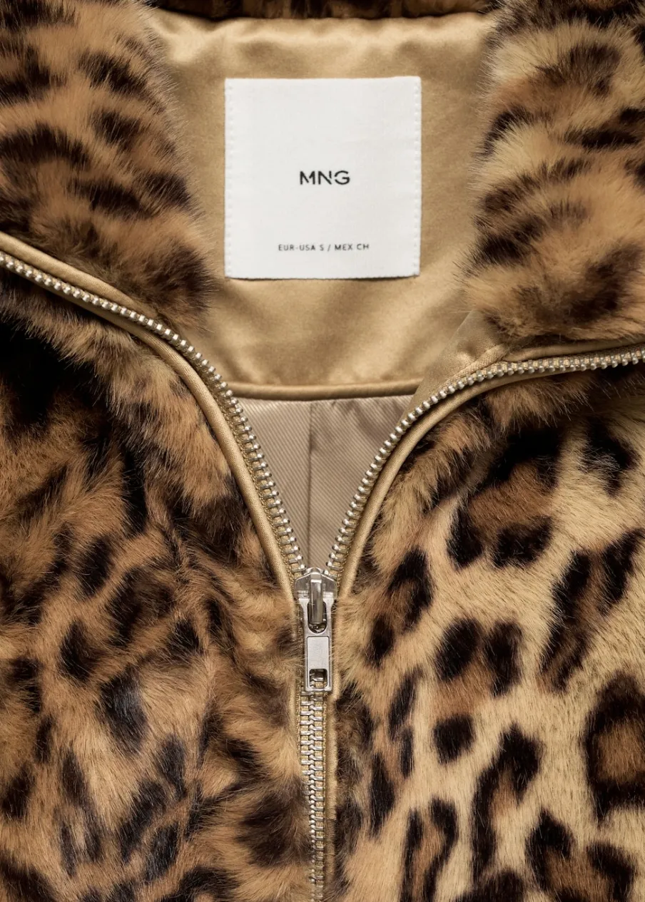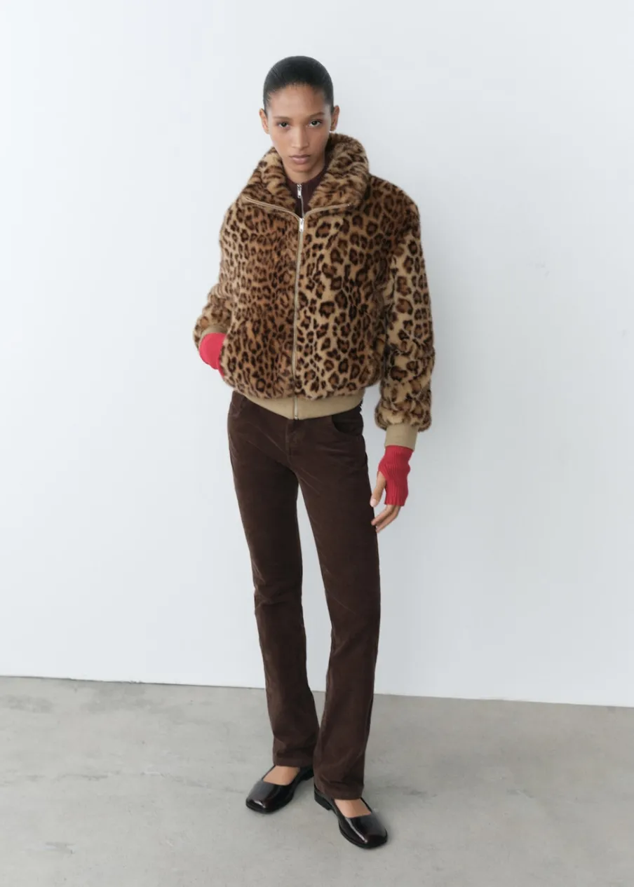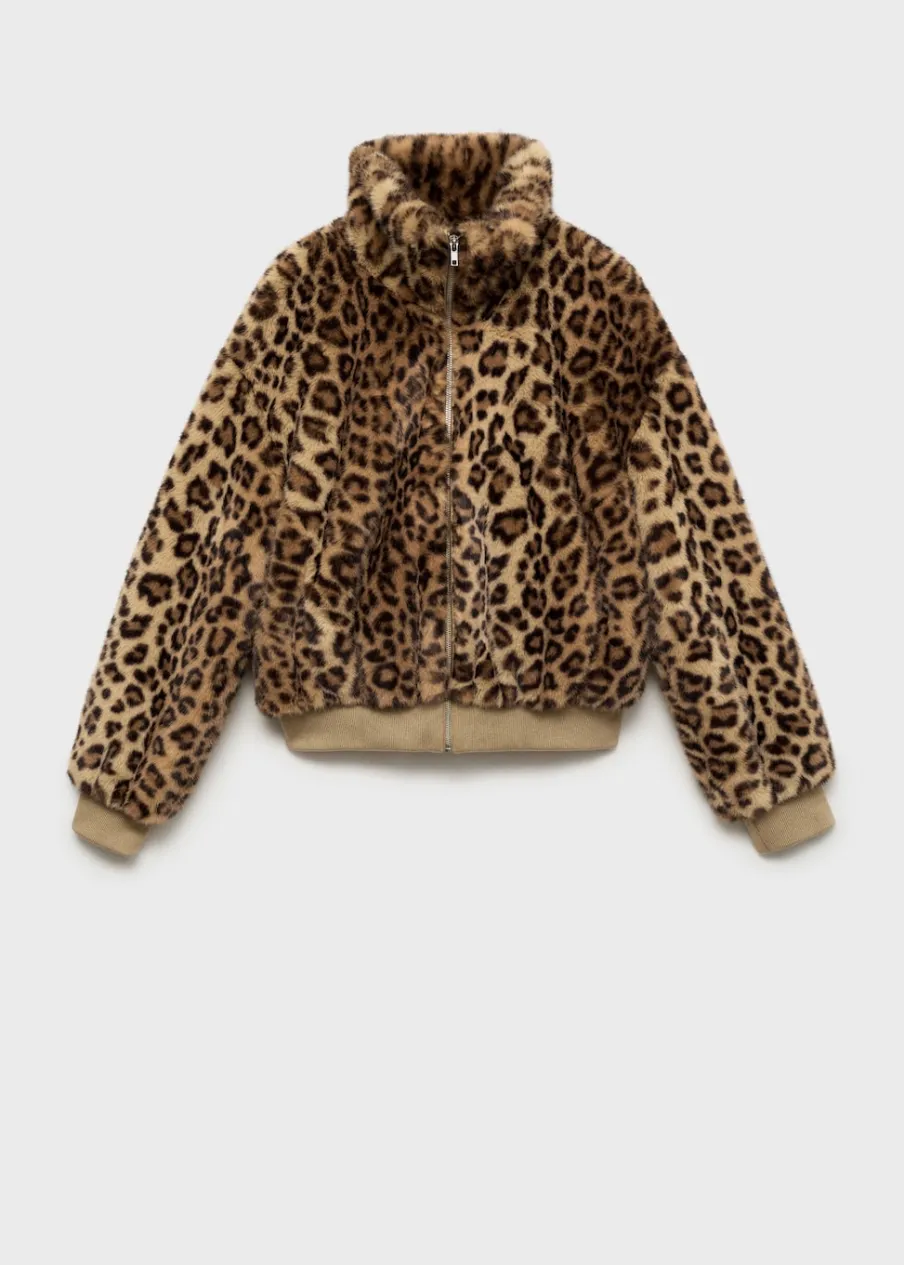 Włochata tekstura. Model oversize. Model bomber. Wzór w lamparcie cętki. Golf. Długi rękaw z elastycznymi mankietami. Kieszenie boczne. Zapięcie z przodu na suwak. Podszewka. Modelka ma 178 cm wzrostu i nosi rozmiar S/36.