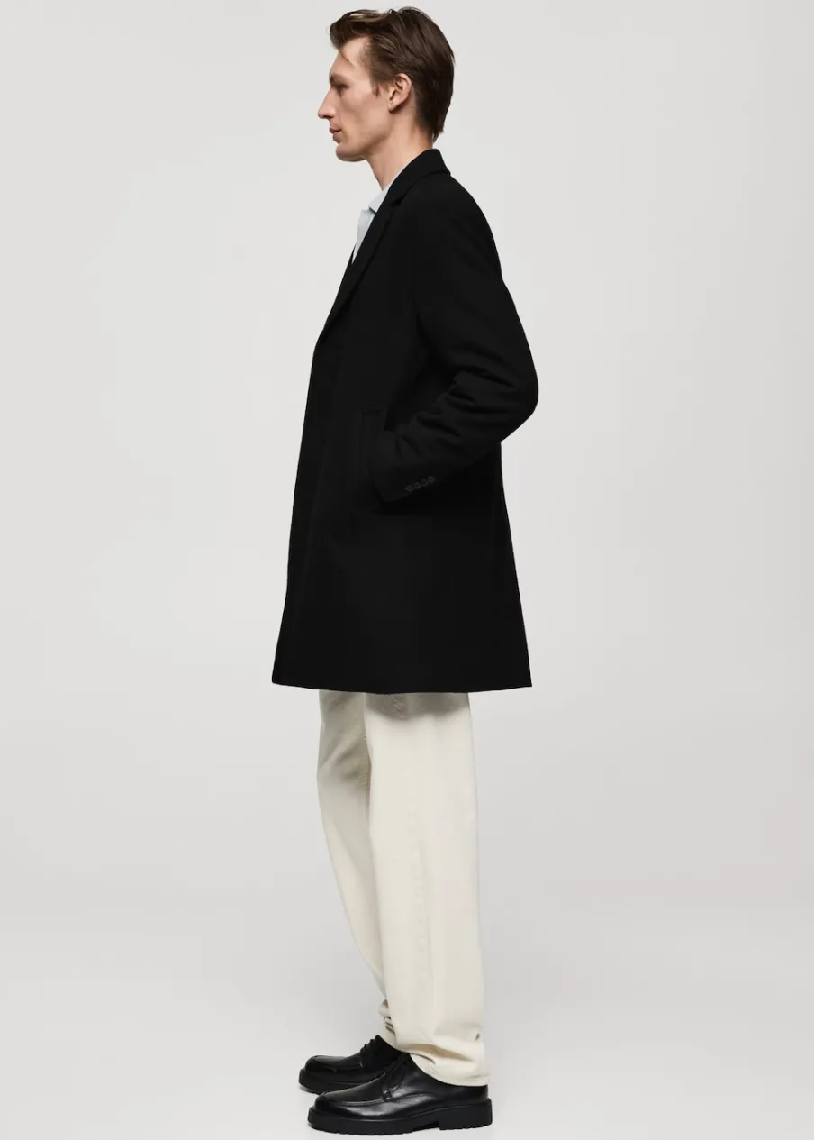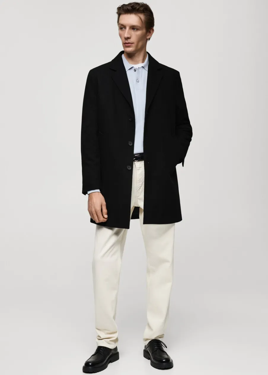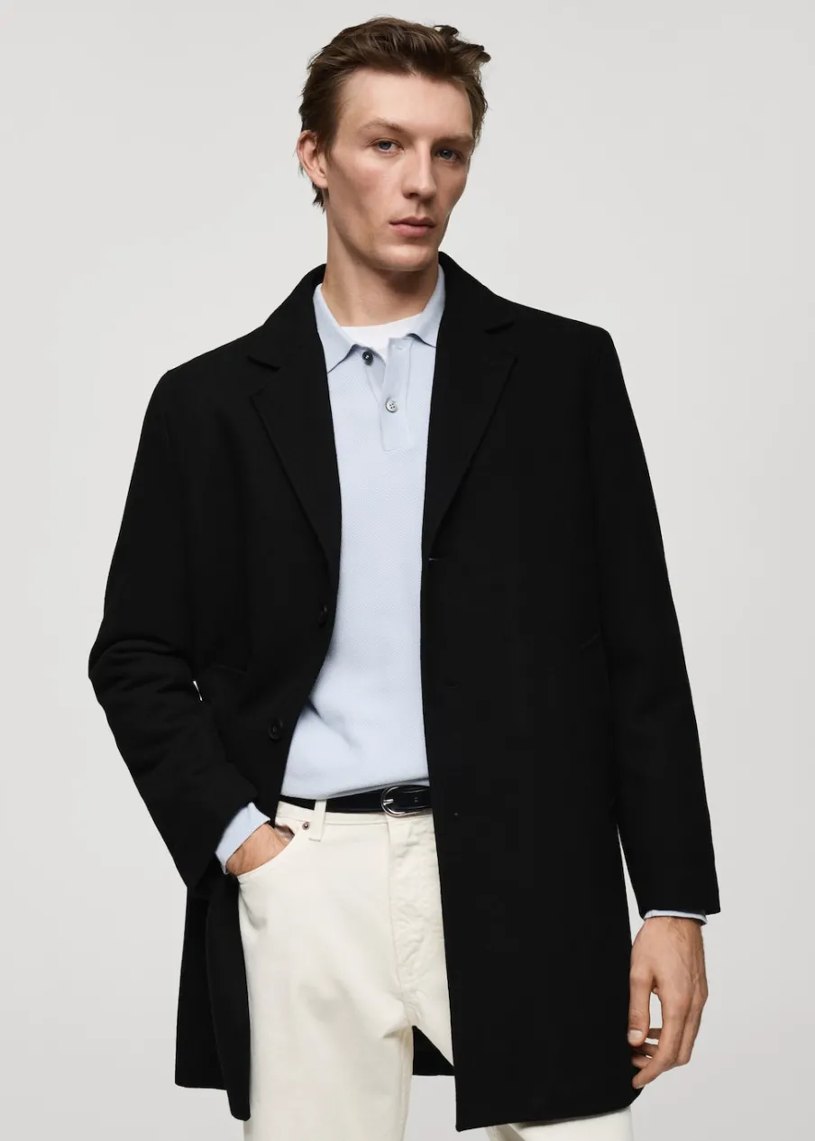 Wyłącznie online. Tkanina mieszanka wełny. Krój regular. Model pikowany. Kołnierz z klapami. Wewnętrzny tylny guzik dla dodatkowego przytrzymania zewnętrznego guzika. Długi rękaw z guzikami na mankietach. Rozcięcie z tyłu u dołu. Wewnętrzna kieszeń. Prosty dół. Model ma 190 cm wzrostu i nosi rozmiar M. Zapięcie na guziki z przodu.
