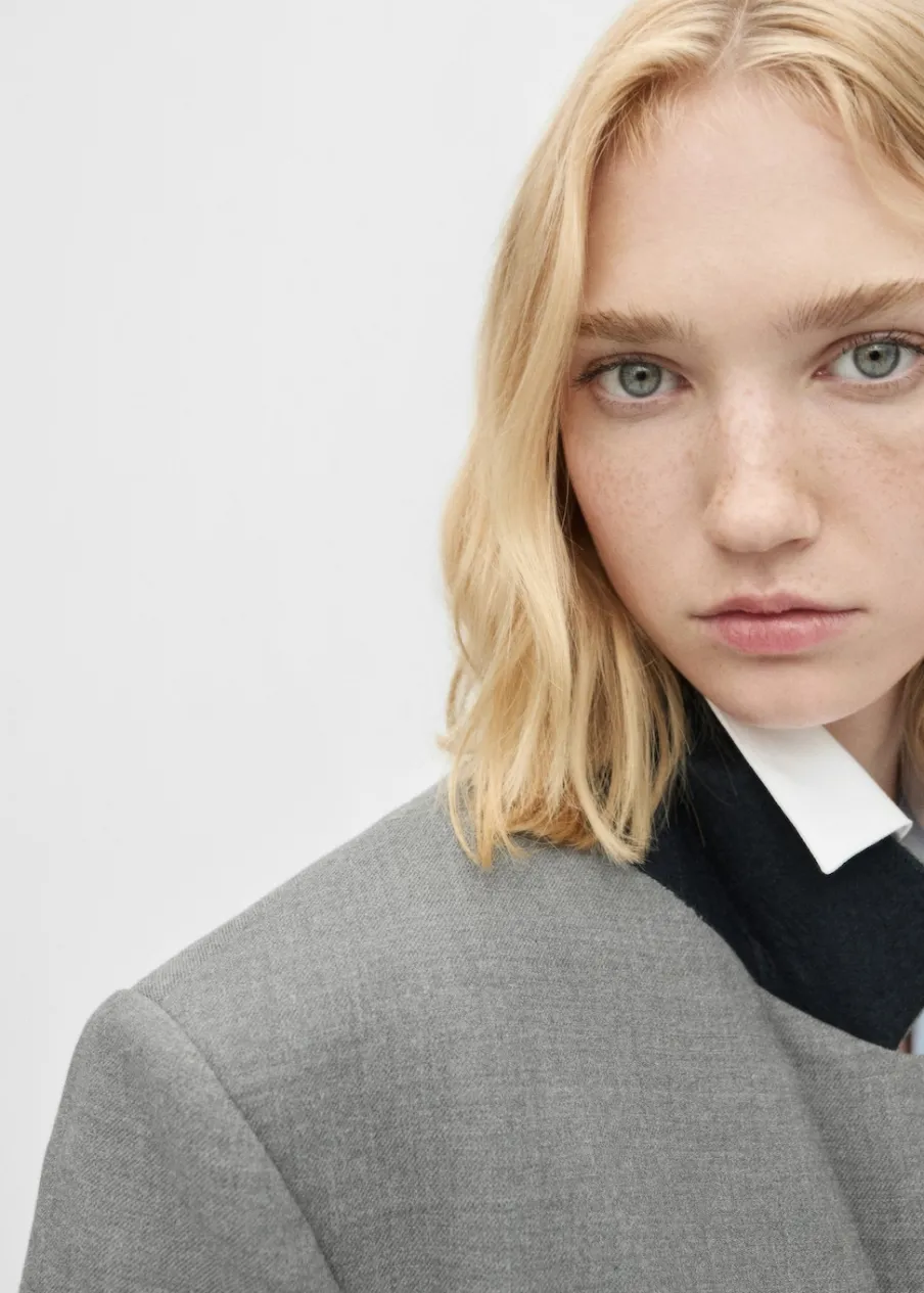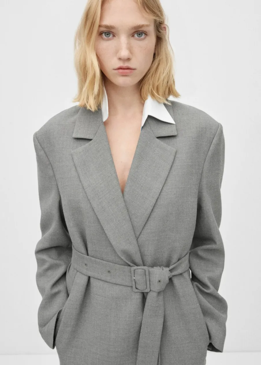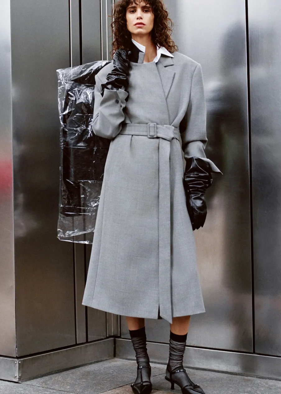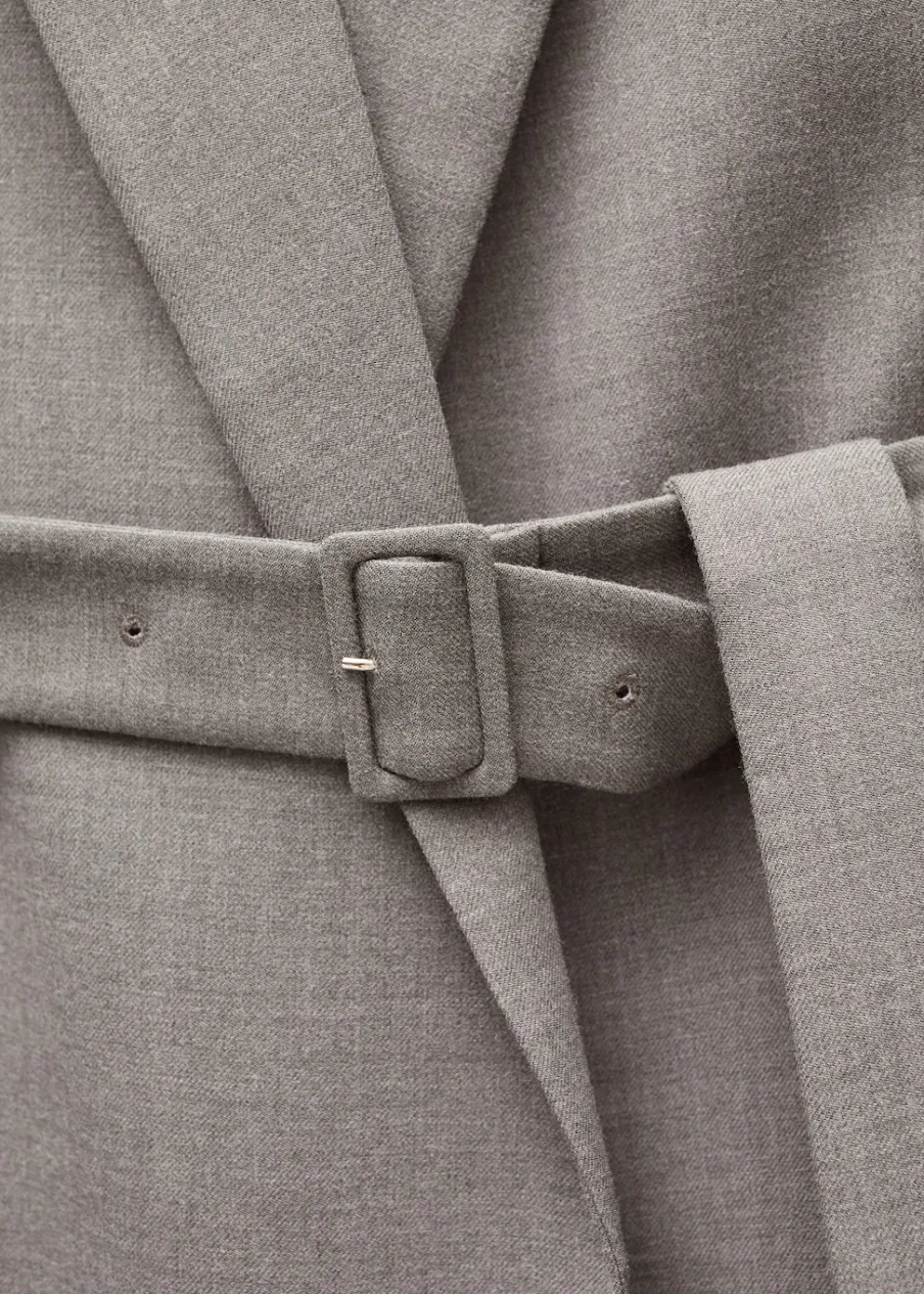 Model długi. Długi rękaw. Pasek zapinany na klamrę. Wewnętrzna podszewka. Kolekcja Selection. Modelka ma 178 cm wzrostu i nosi rozmiar S/36. Tkanina mieszanka wełny. Dekolt w szpic z kołnierzykiem. Klapy z nacięciem. Model zakładany. Model prosty.