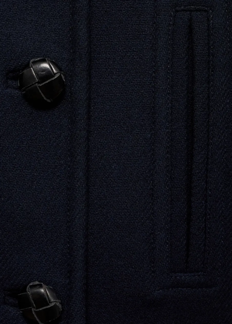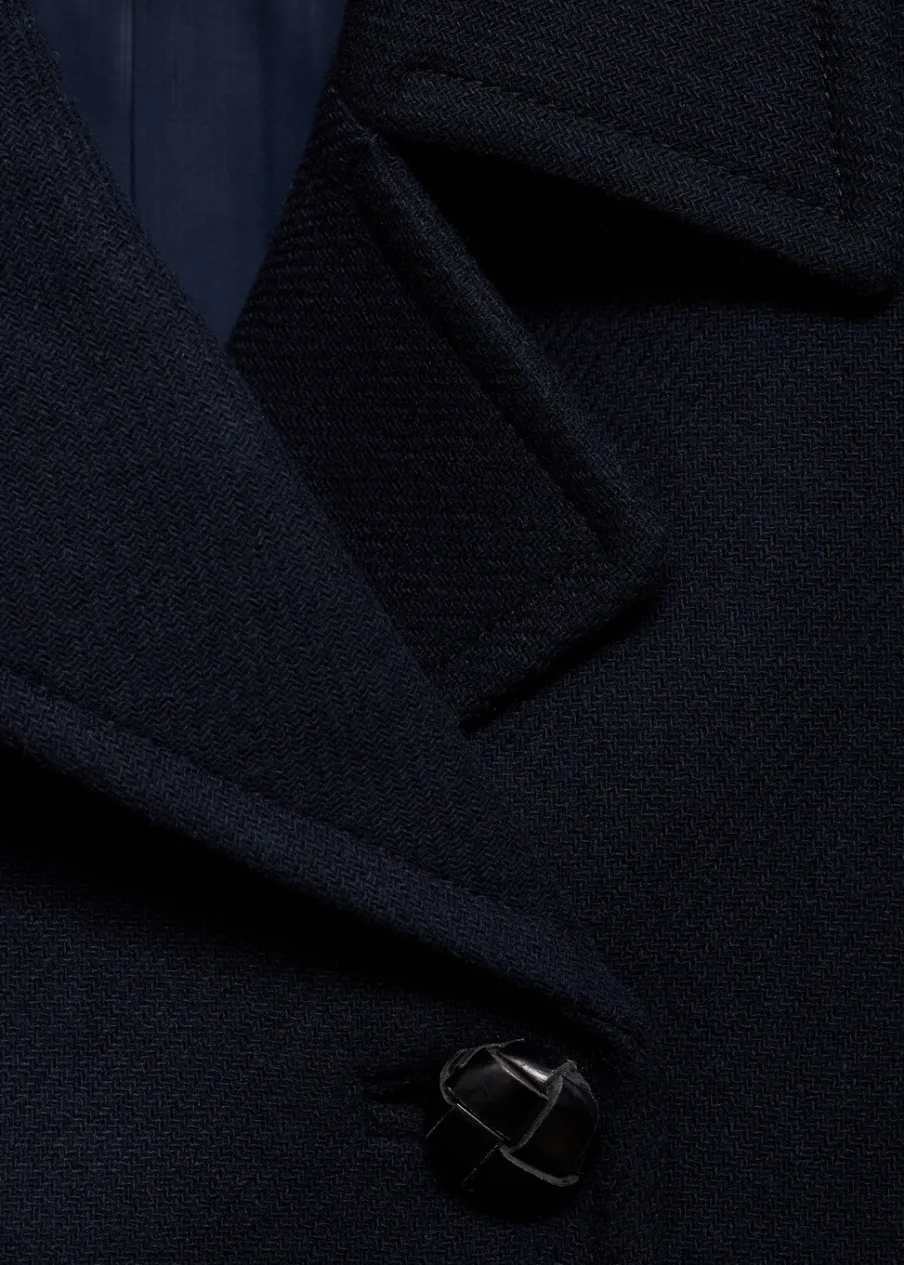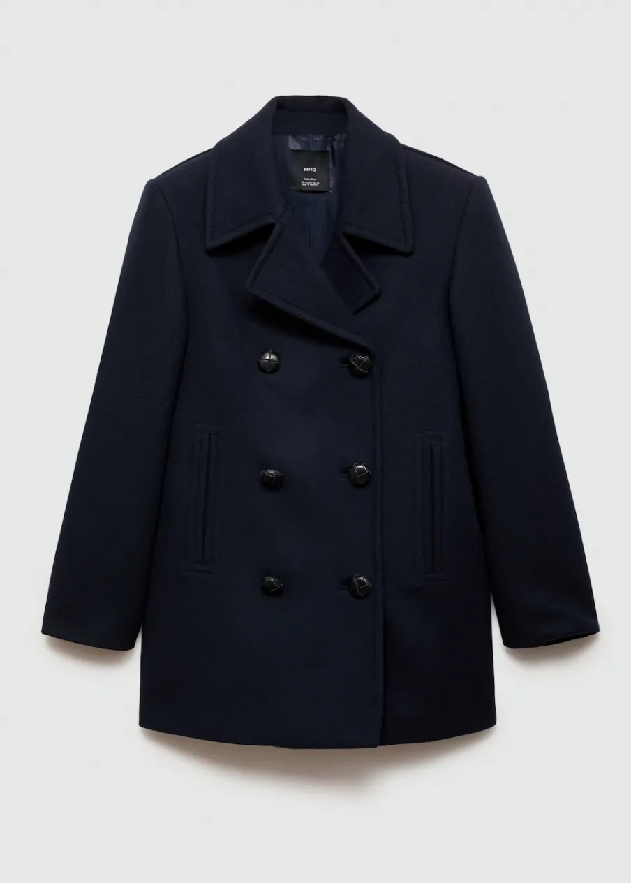 Tkanina mieszanka wełny. Model oversize. Model prosty. Fason o średniej długości. Dekolt w szpic z kołnierzykiem. Klapy z nacięciem. Długi rękaw. Dwurzędowe zapięcie. Wewnętrzna podszewka. Modelka ma 178 cm wzrostu i nosi rozmiar S/36.