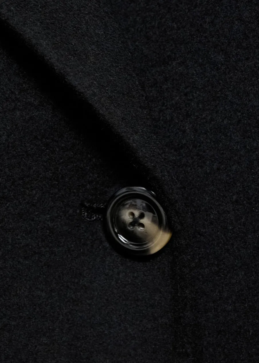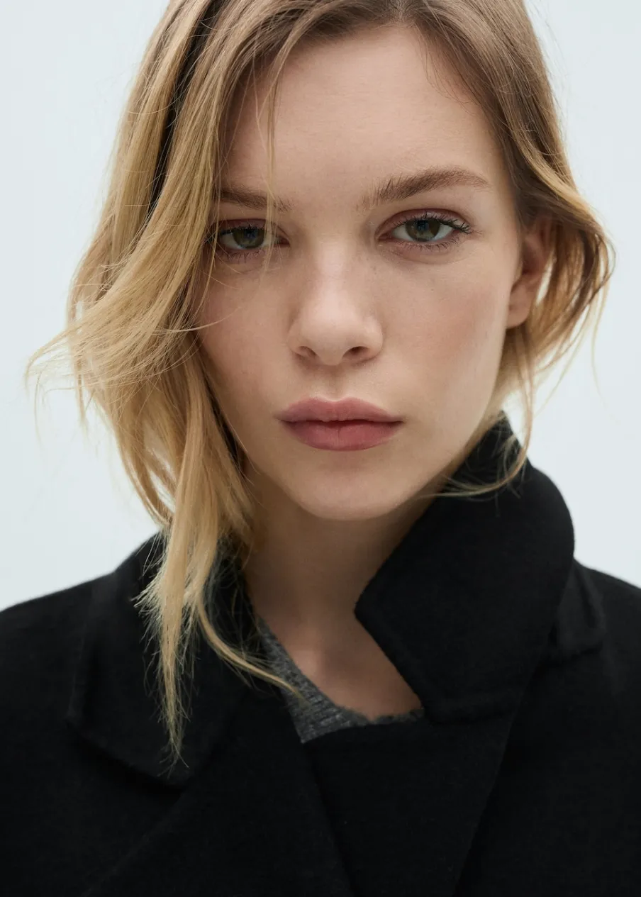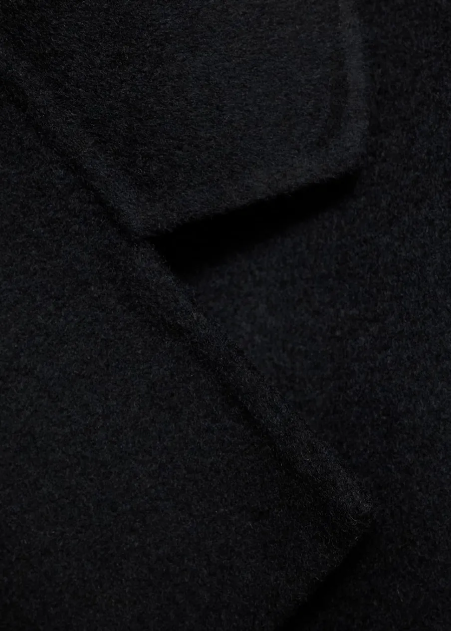 Długi rękaw. Ramiona z obniżonym szwem. Dwie kieszenie boczne. Dwurzędowe zapięcie. Rozcięcie z tyłu u dołu. Stylizacje biurowe. Tkanina z wełną. Wyrób ręczny. Model dwurzędowy. Model oversize. Model długi. Dekolt w szpic z kołnierzykiem. Klapy z nacięciem. Ciężka struktura. Zapięcie z przodu. Klapy. Bez podszewki.