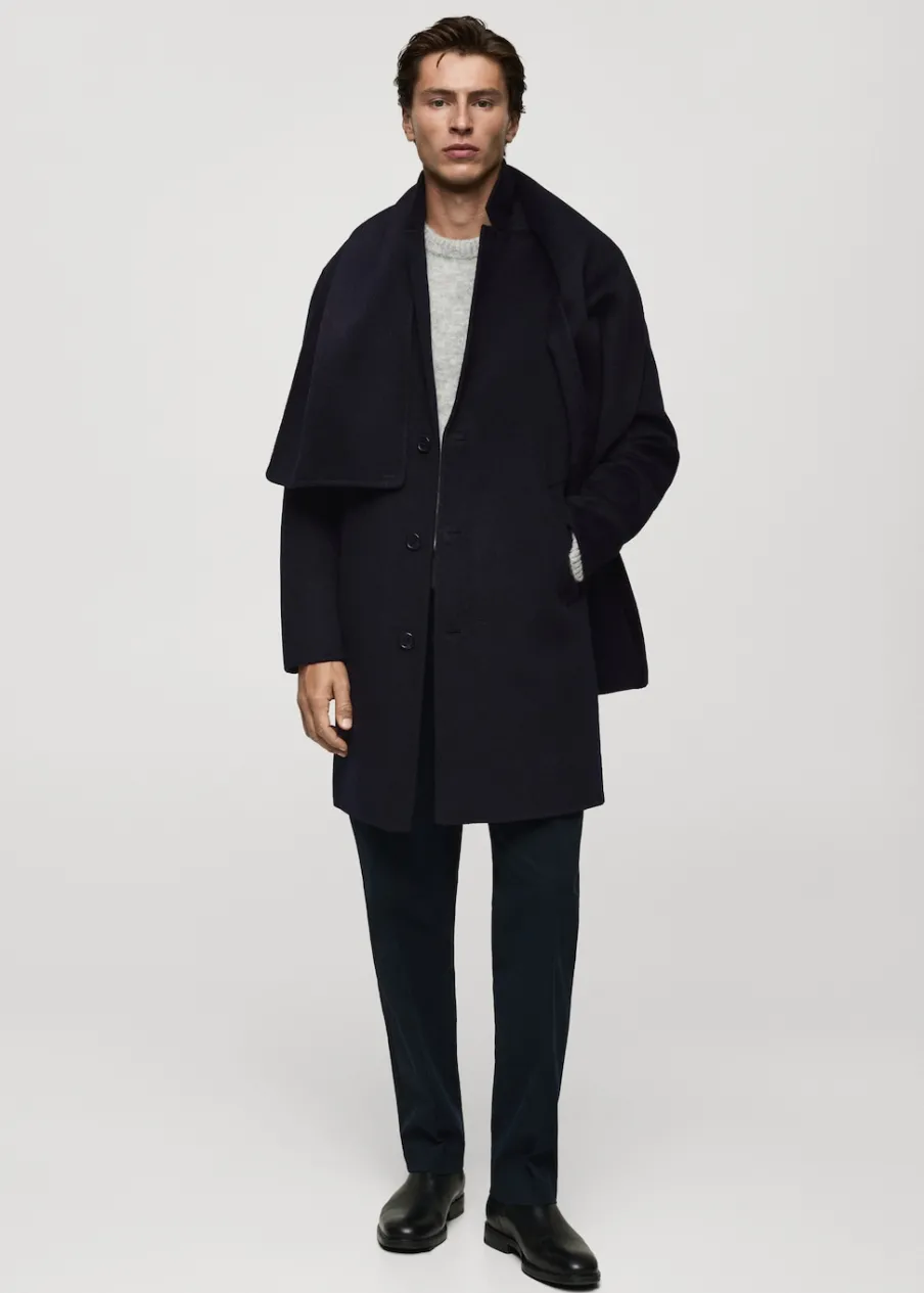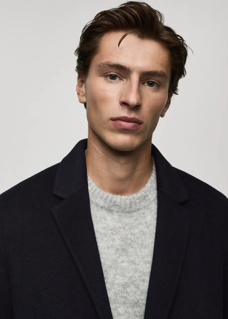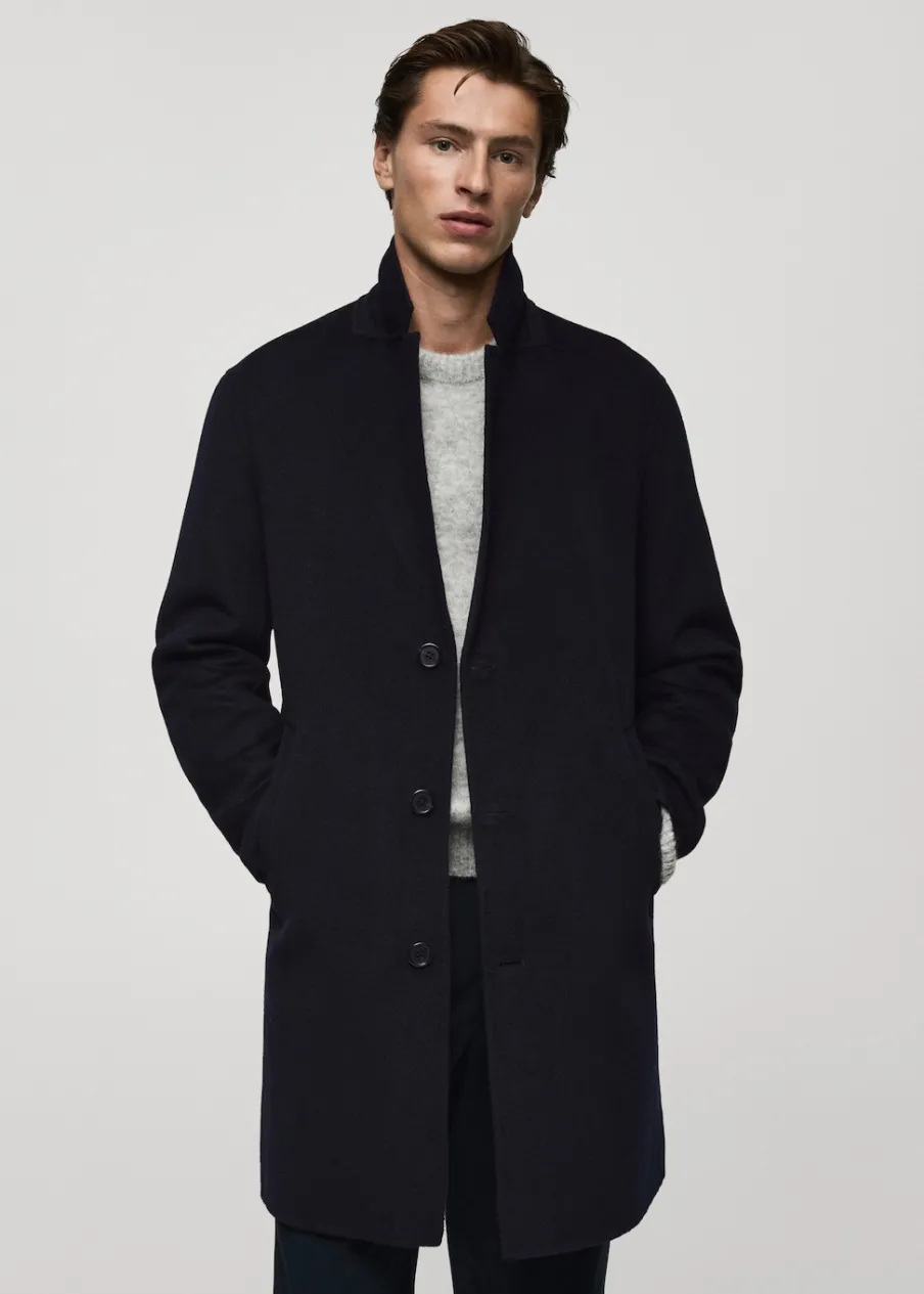 Kolekcja Selection. Model prosty. Średnia długość. Klapy otwarte. Długi rękaw. Dwie wpuszczane kieszenie boczne. Częściowa podszewka. Rozcięcie z tyłu u dołu. Model ma 185 cm wzrostu i nosi rozmiar M. Tkanina mieszanka wełny. Zapięcie na guziki z przodu.