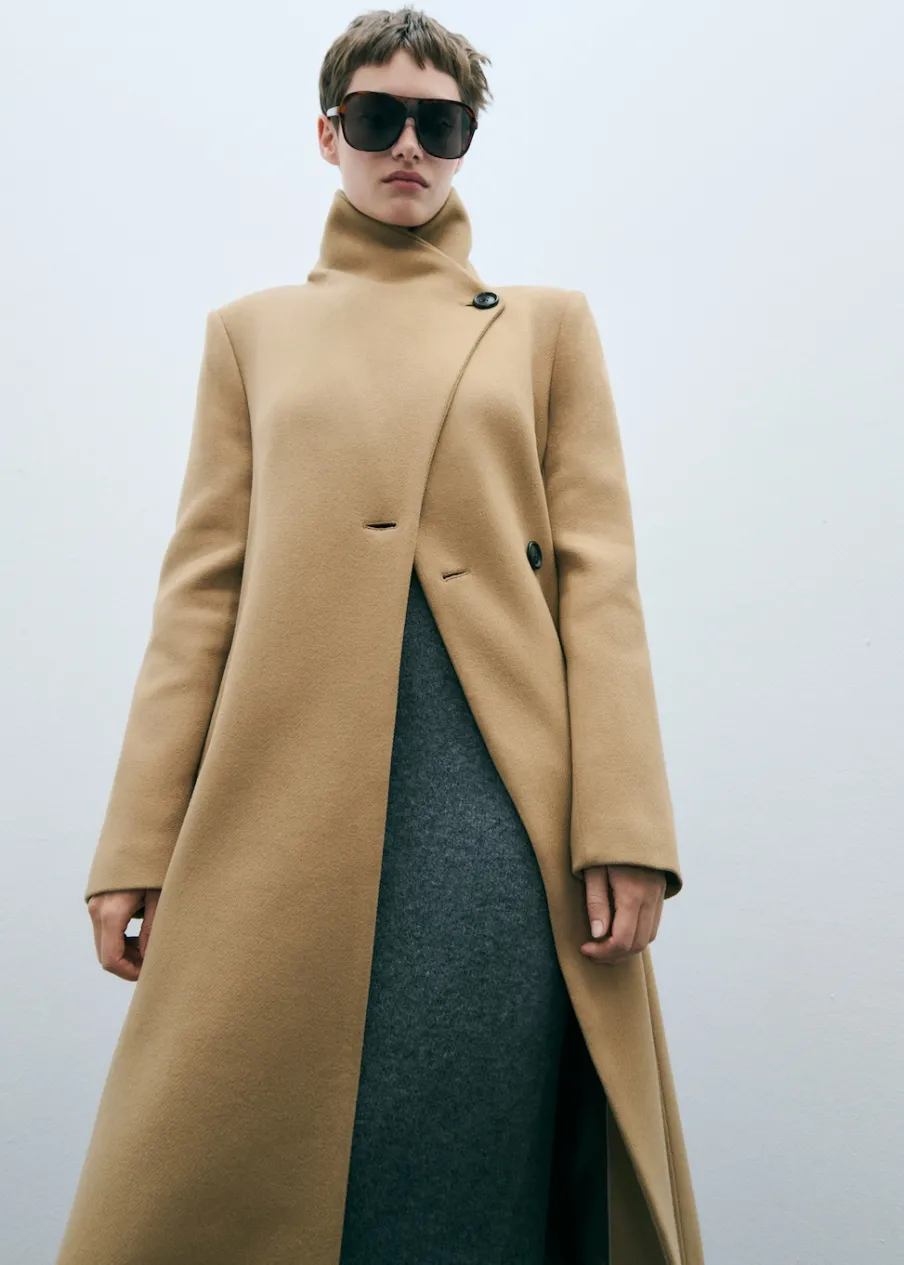 Nadruk: bez nadruku. Długość rękawa: długi. Krój: prosty. Położenie zapięcia: z przodu. Długość: długa. Wypełnienie/podszewka: tylko podszewka. Tkanina płaska/ciężka. Kołnierz komin.
