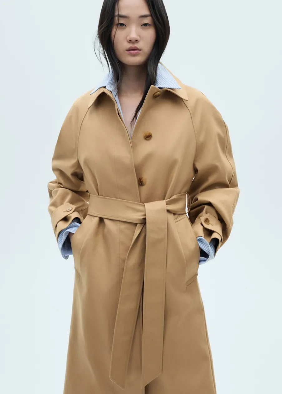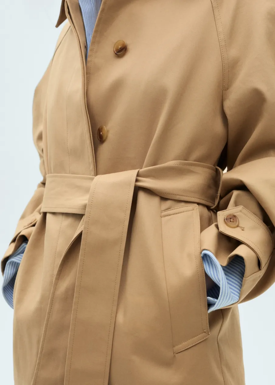 Model długi. Model oversize. Ciężka struktura. Koszulowy kołnierz. Długi rękaw z guzikami na mankietach. Kryte zapięcie na guziki z przodu. Szlufki. Regulowane wiązanie w talii. Kieszenie boczne. Wewnętrzna podszewka. Modelka ma 175 cm wzrostu i nosi rozmiar S/36. Tkanina z 100% bawełny.
