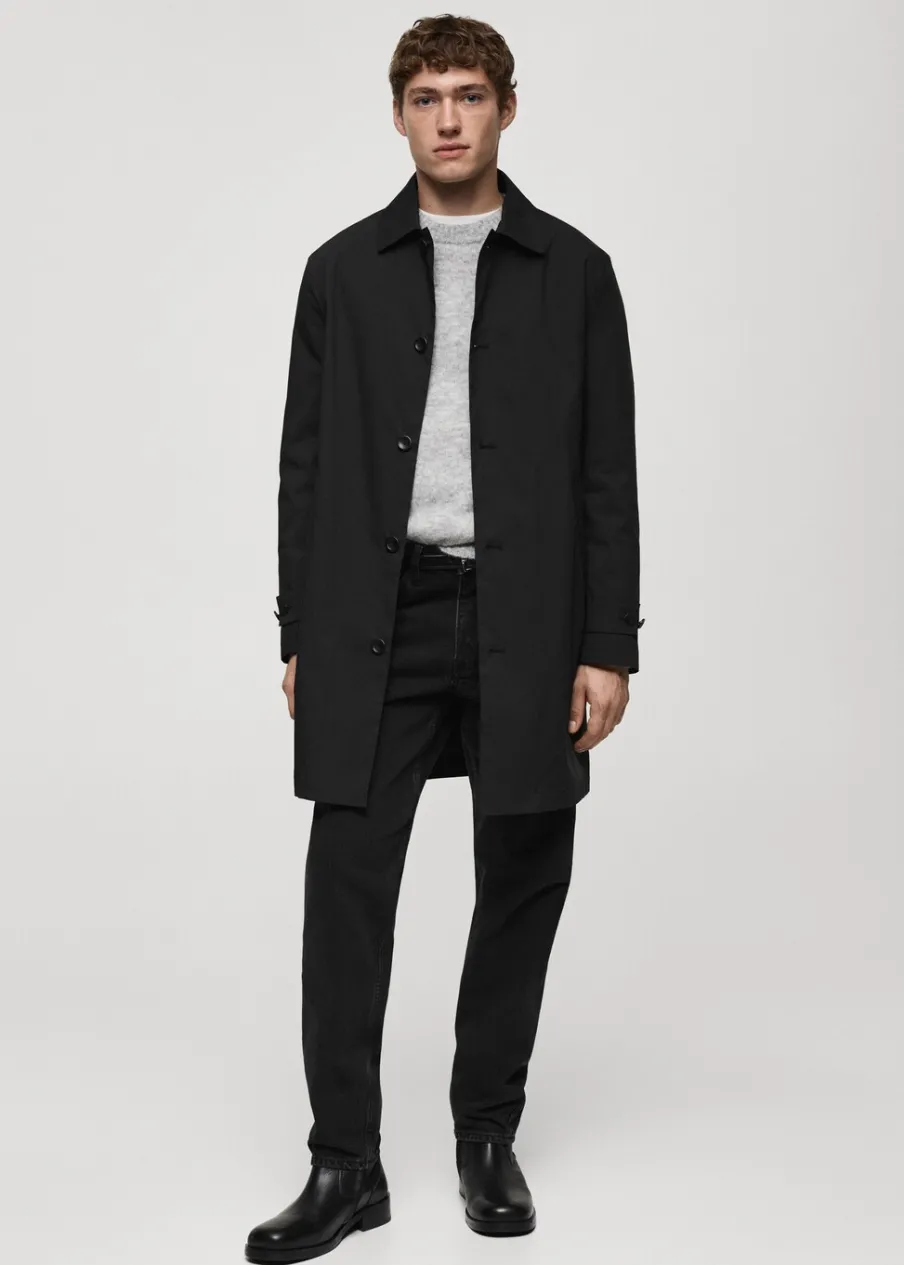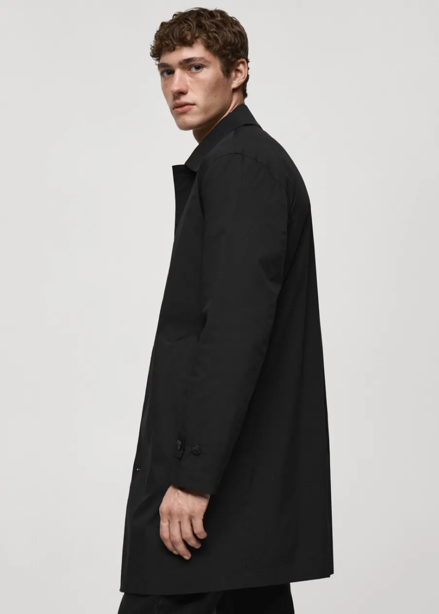 Kolor beżowy dostępny tylko online. Dwie wpuszczane kieszenie boczne. Długi rękaw z guzikami na mankietach. Wewnętrzna podszewka. Wewnętrzna kieszeń. Rozcięcie z tyłu u dołu. Model długi. Model ma 185 cm wzrostu i nosi rozmiar M. Water Repellent: trwałe wykończenie tego modelu chroni przed lekkim deszczem, odpycha cząsteczki wody i krople deszczu. Tkanina z 100% bawełny. Klasyczny kołnierzyk. Zapięcie na guziki z przodu.
