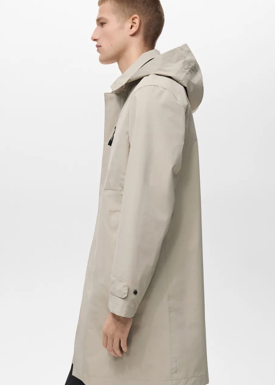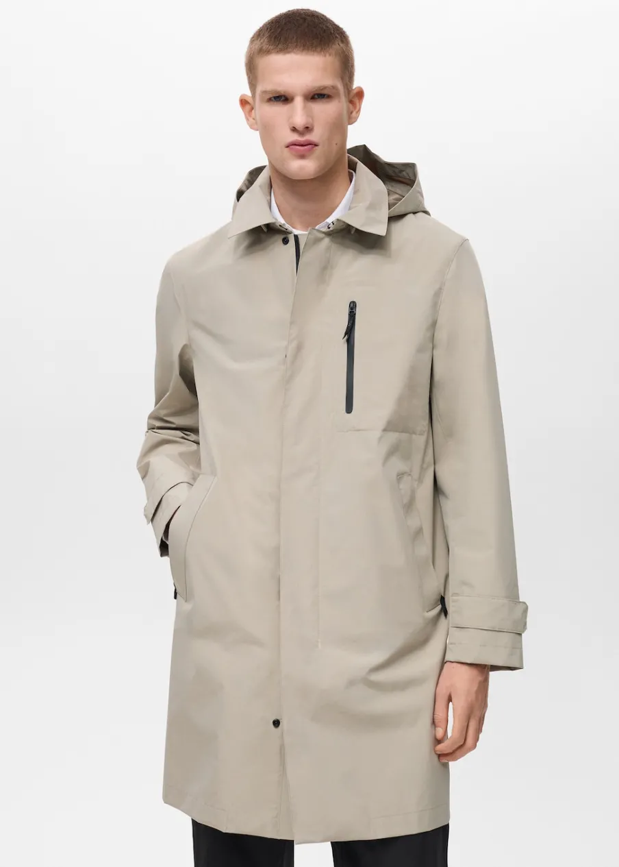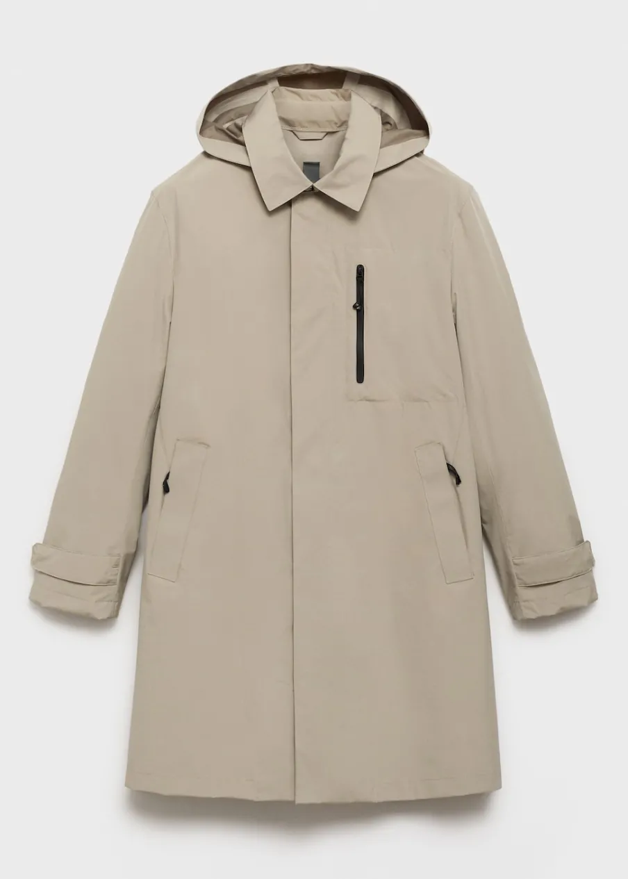 Kolekcja Performance. Comfort stretch: elastyczna tkanina dla większego komfortu. Coolmax® to specjalna tkanina, która pomaga odprowadzać wilgoć ze skóry, dzięki czemu w zimnym klimacie zapewnia suchość i ciepło, a w ciepłym klimacie poczucie rześkości i lekkości. Windproof: ten wytrzymały materiał zapewnia ochronę przed wiatrem dla większego komfortu podczas aktywności na świeżym powietrzu. Waterproof: trwałe wykończenie zapobiega przenikaniu wody przez tkaninę, zapewniając najlepszą możliwą ochronę przed deszczem. Termoregulacyjna: ta tkanina zapewnia optymalną przepuszczalność powietrza, by utrzymać stałą temperaturę ciała. Breathable: ta tkanina pomaga regulować temperaturę ciała, ponieważ pozwala na odprowadzenie wilgoci. Odpinany kaptur. Klasyczny kołnierzyk. Termoklejone wodoszczelne zapięcie na zamek i zatrzaski z przodu. Naszywana kieszeń z termoklejonym zapięciem na zamek. Dwie wpuszczane kieszenie z przodu i wodoszczelne zapięcie na zamek. Długie rękawy z regulowanymi szlufkami. Z tyłu szlica z guzikiem. Kieszenie wewnętrzne. Bez podszewki. Szwy wewnętrzne z termoklejonym wzmocnieniem. Model ma 190 cm wzrostu i nosi rozmiar M.