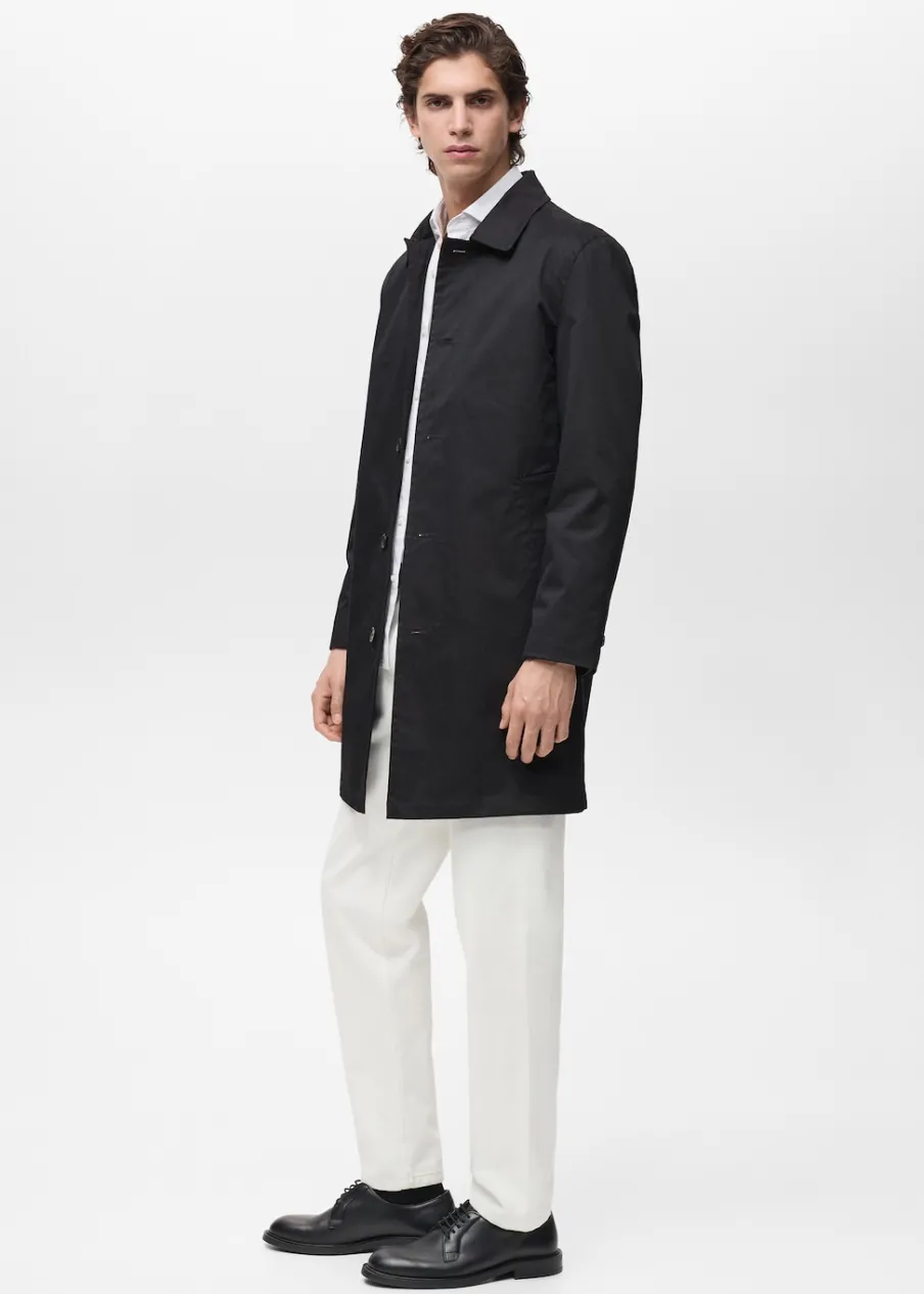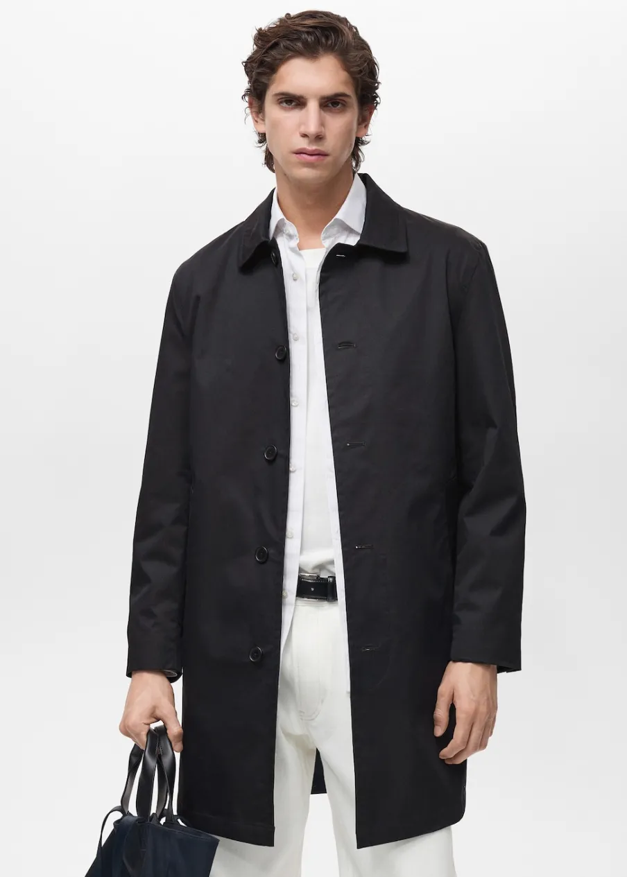 ESSENTIALS: Made to last. Kolor niebieski dostępny tylko online. Water Repellent: trwałe wykończenie tego modelu chroni przed lekkim deszczem, odpycha cząsteczki wody i krople deszczu. Klasyczny kołnierzyk. Zapięcie na guziki z przodu. Długi, zapinany rękaw. Dwie kieszenie z wypustkami z przodu. Rozcięcie z tyłu u dołu. Wewnętrzna podszewka. Wewnętrzna kieszeń. Model ma 190 cm wzrostu i nosi rozmiar M.