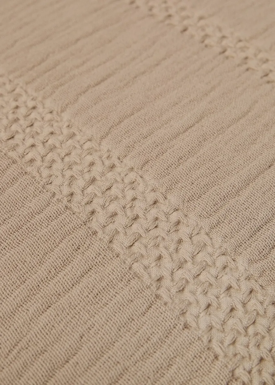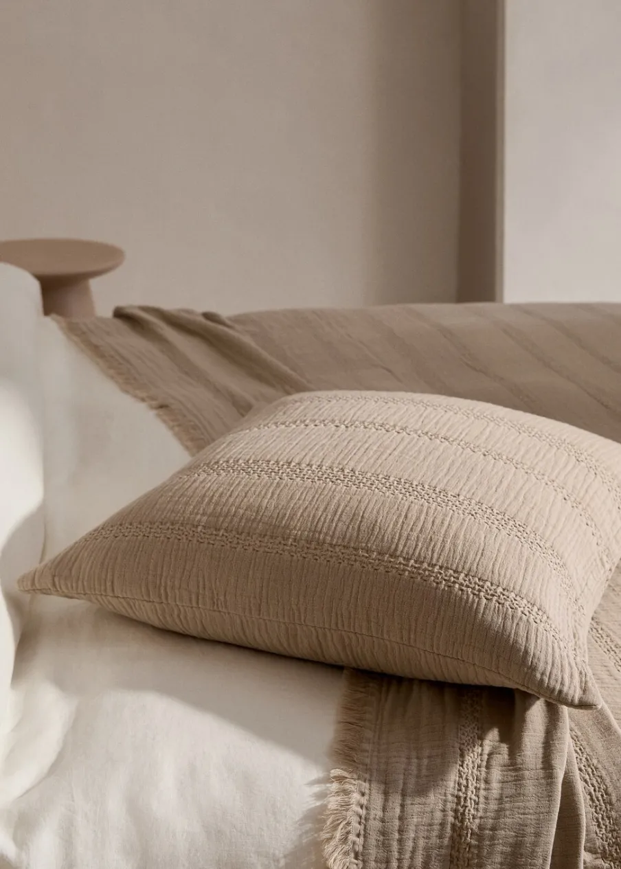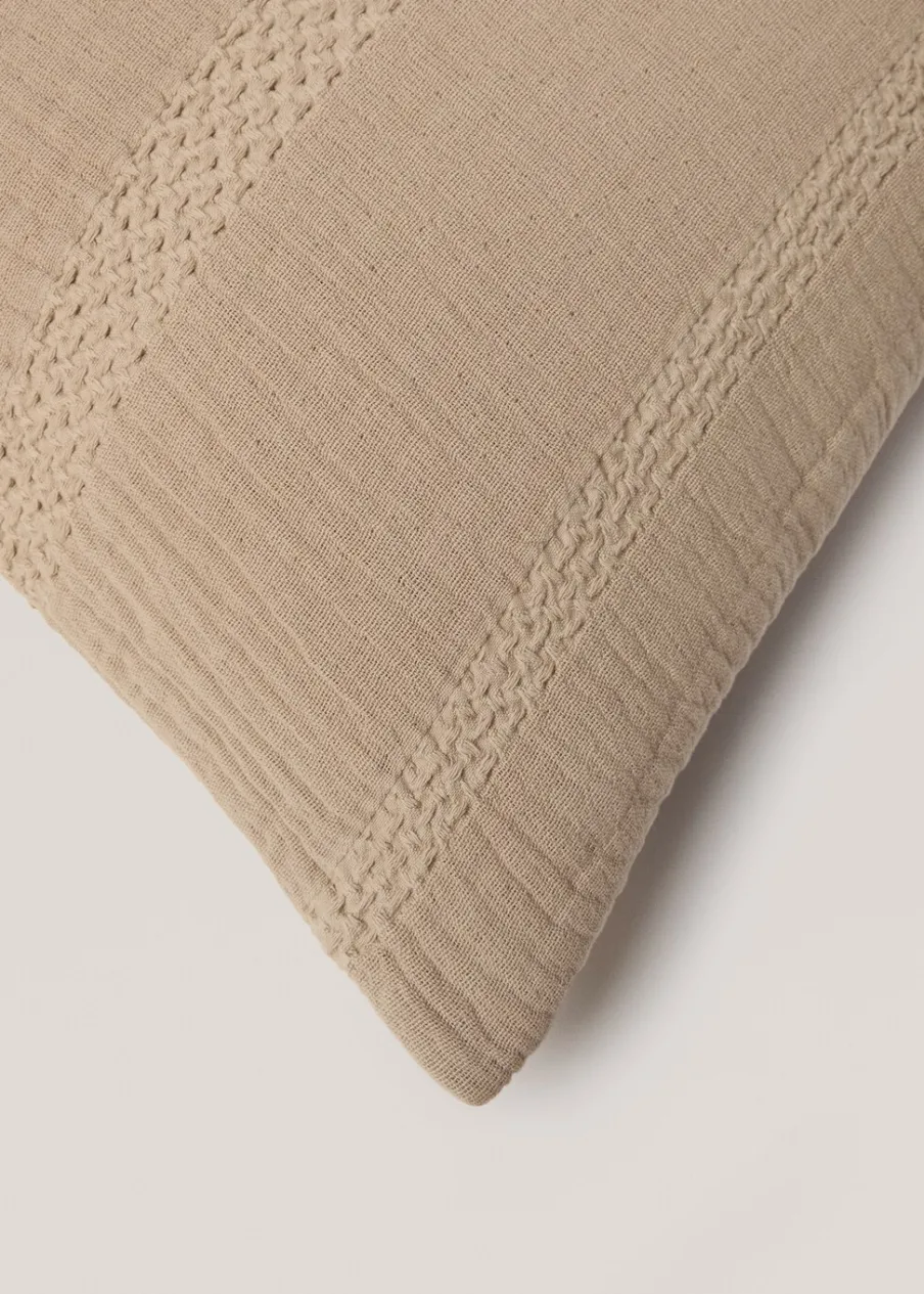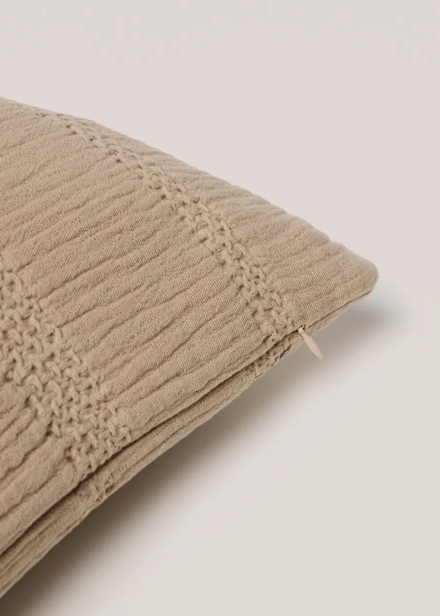 Wymiary: 50 x 50 cm. Teksturowana, bawełniana tkanina. Postrzępione nogawki. Tkanina z 100% bawełny.