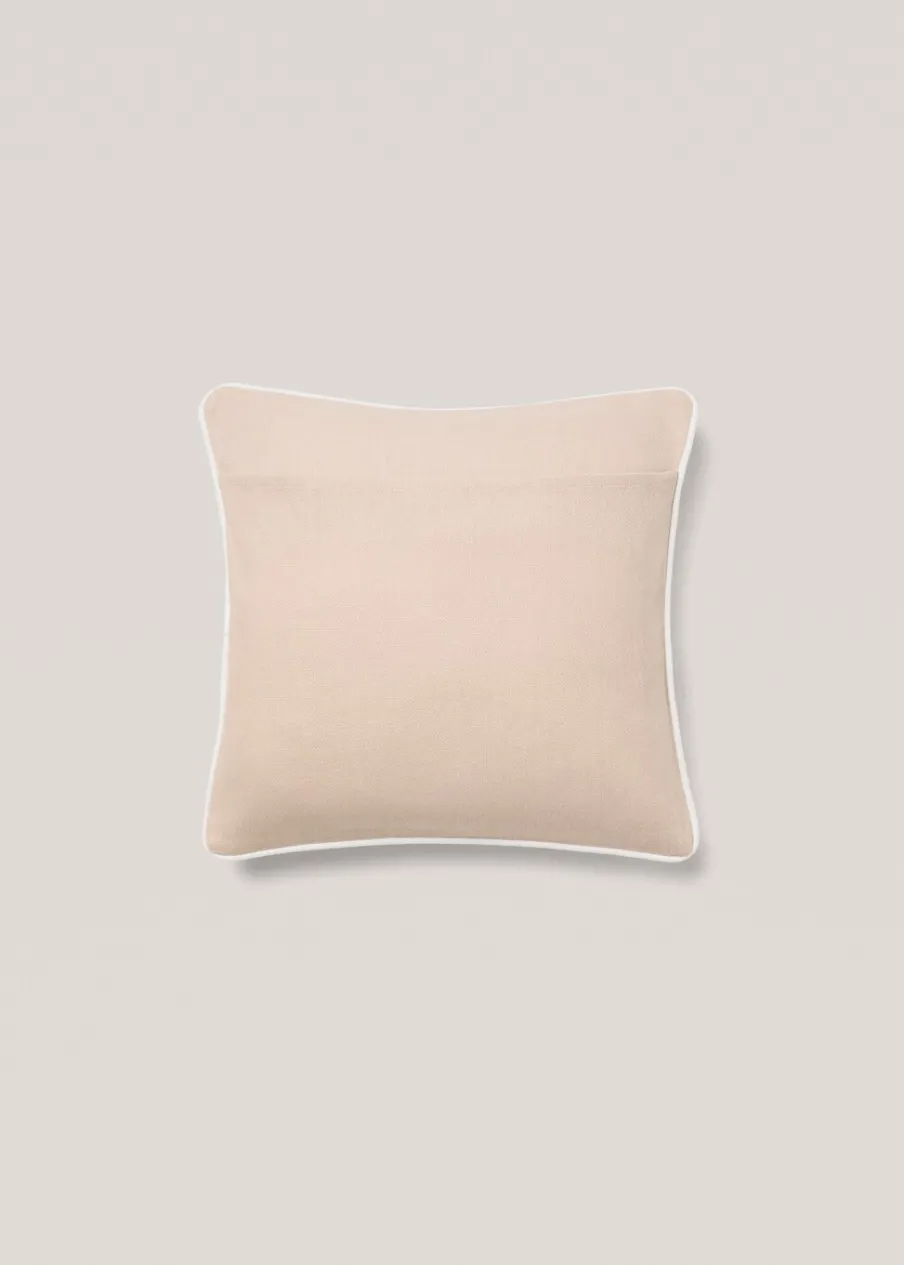 Kontrastowa lamówka. Zamknięcie na klapę. Bez wkładu. Wymiary: 45 x 45 cm. Tkanina z 100% bawełny.