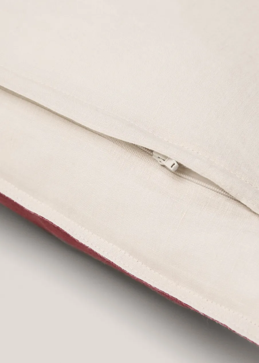 Tkanina z 100% lnu. Len z czasem staje się coraz miększy i wyróżnia się elastycznością; jest lekko pomarszczony, ale nie wymaga prasowania. Ponadczasowa, wytrzymała i zrównoważona tkanina. Dwukolorowe. Dwustronna tkanina. Zapięcie na suwak. Bez wkładu. Wymiary: 40 x 60 cm.