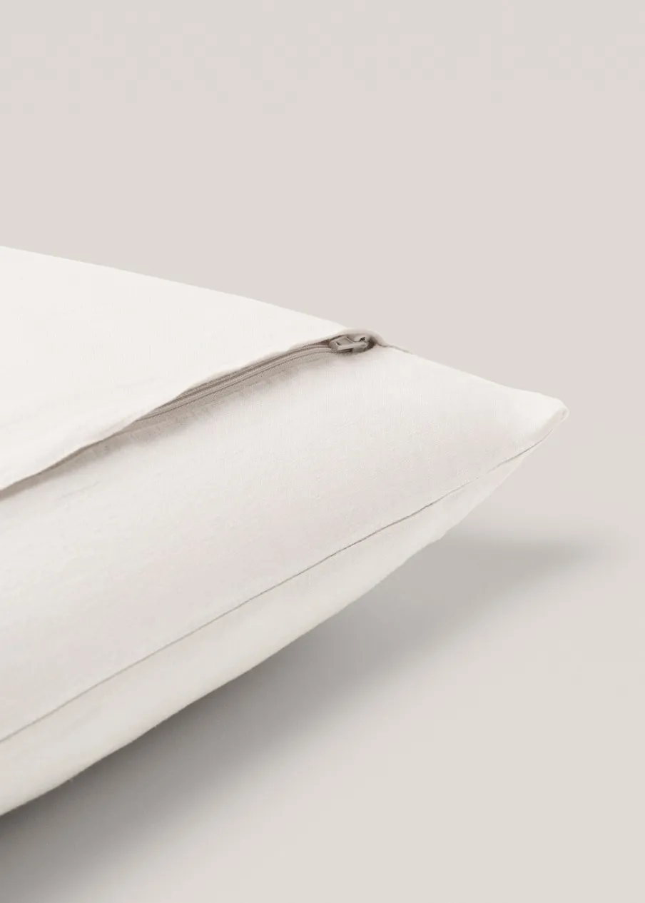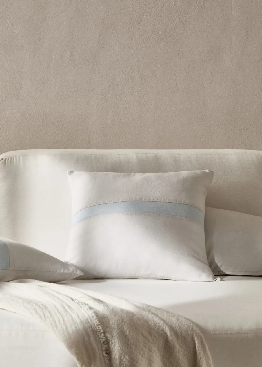 Tkanina z 100% lnu. Len z czasem staje się coraz miększy i wyróżnia się elastycznością; jest lekko pomarszczony, ale nie wymaga prasowania. Ponadczasowa, wytrzymała i zrównoważona tkanina. W romantycznym stylu. Dwukolorowy deseń. Kontrastowy pas. Tkanina gładka. Zapięcie na suwak. Bez wkładu. Wymiary: 45 x 45 cm.