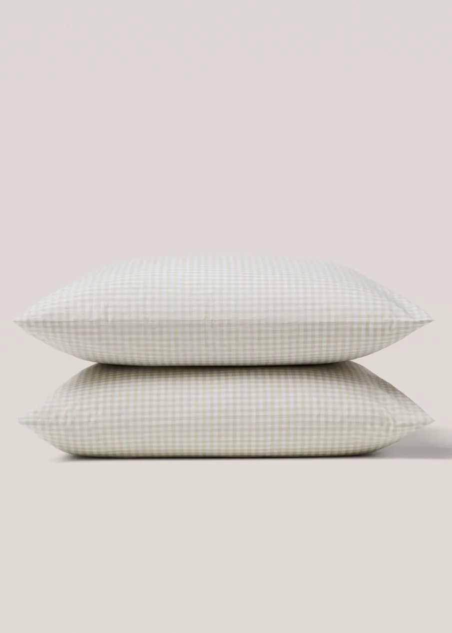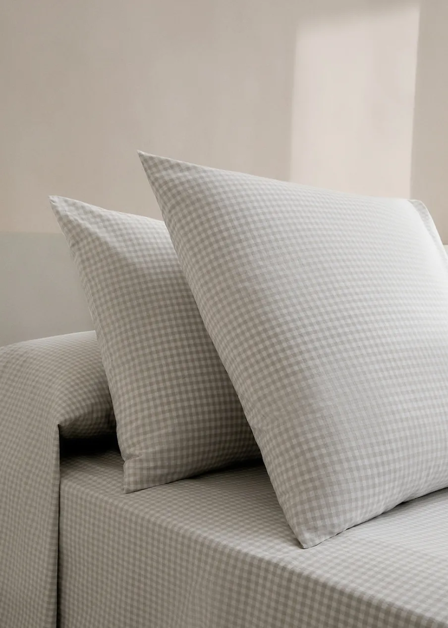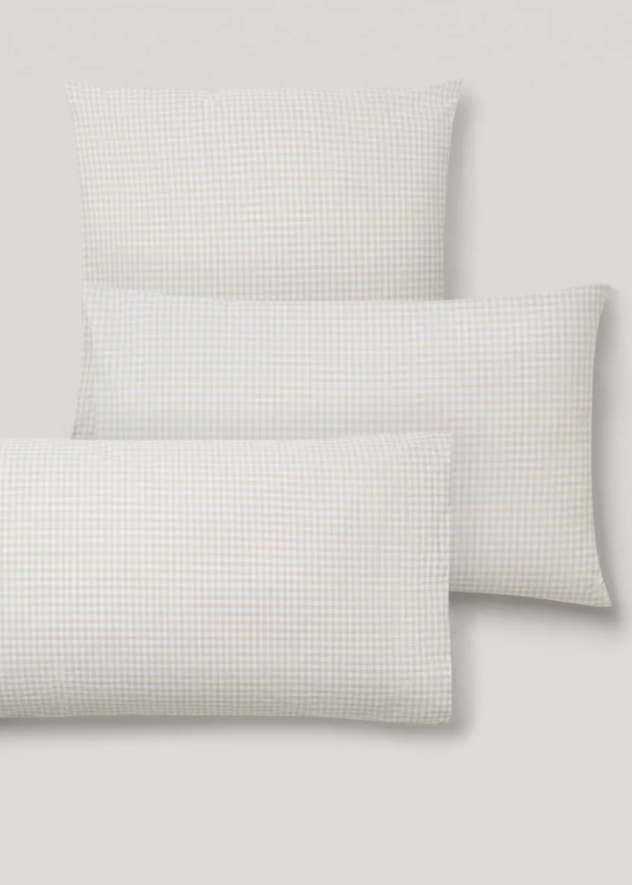 Wymiary: 60 x 60 cm. Zestaw 2 sztuk. Bawełna 100%. Bawełniany perkal jest miękką i elastyczną tkaniną o wysokiej oddychalności.. Gęstość splotu 200 TC zapewnia maksymalną miękkość, wytrzymałość i oddychalność, a także wrażenie lekkości w dotyku. Wzór w kratę vichy. Zamknięcie na klapę. Bez wkładu.