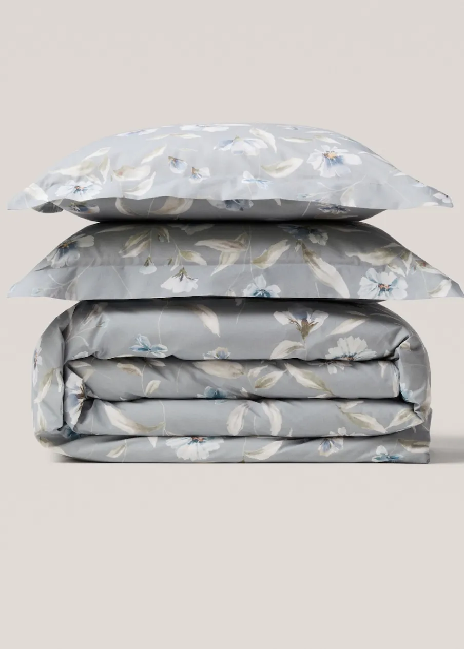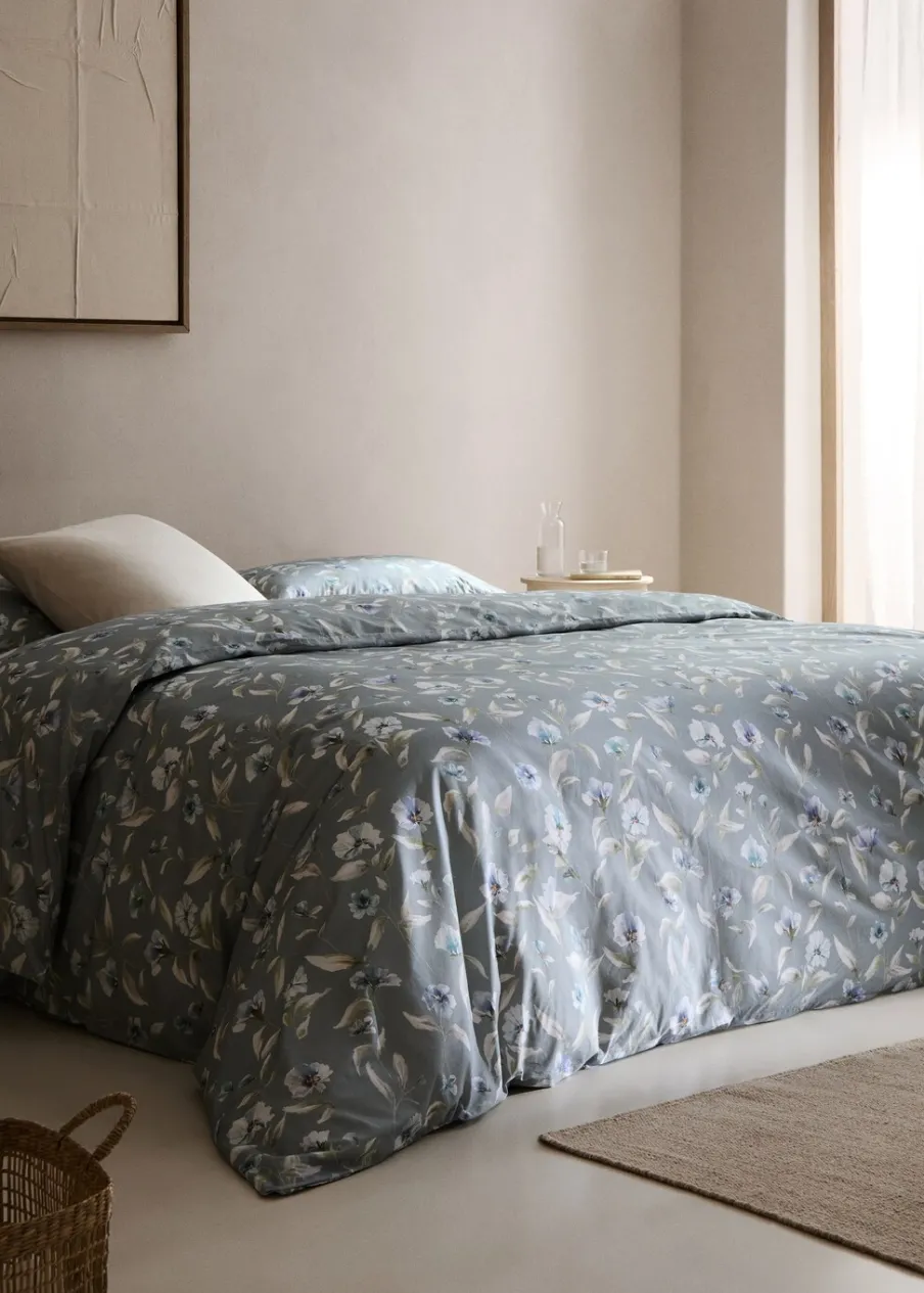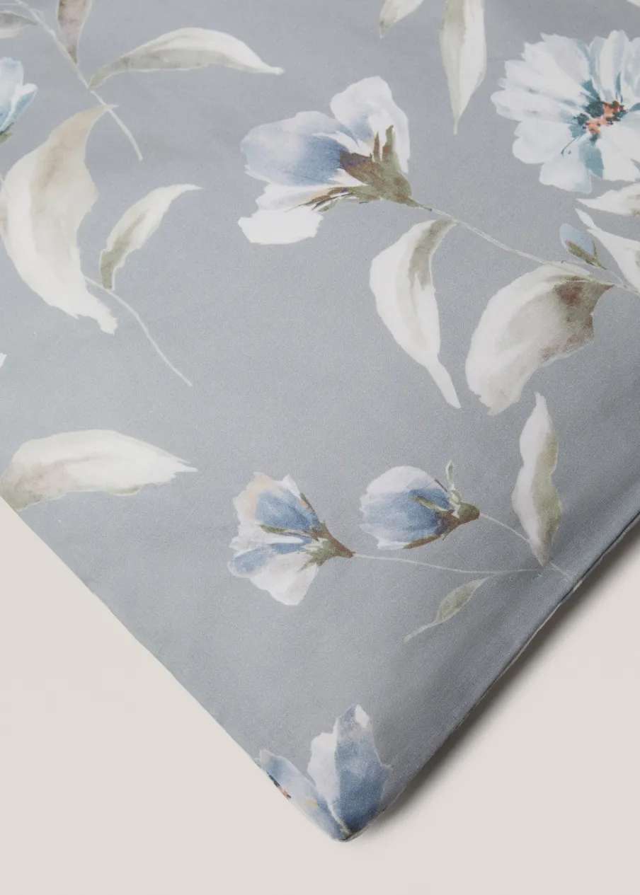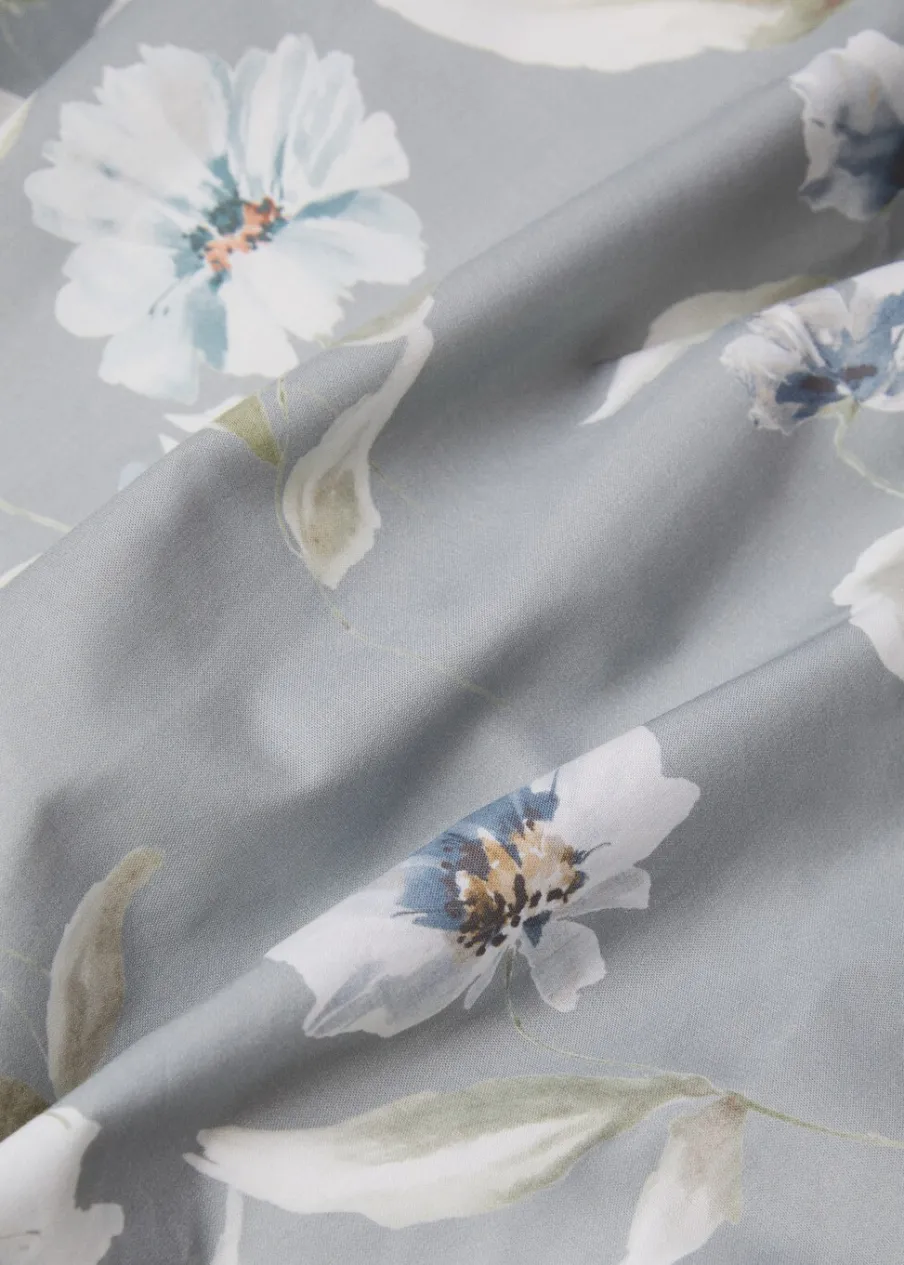 Wymiary: 150 x 220 cm. Łóżko 90 cm. Łóżko pojedyncze. Gęstość splotu 200 TC zapewnia maksymalną miękkość, wytrzymałość i oddychalność, a także wrażenie lekkości w dotyku. Deseń w kwiaty. Bez wkładu. Zapięcie na guziki. Tkanina z 100% bawełny.