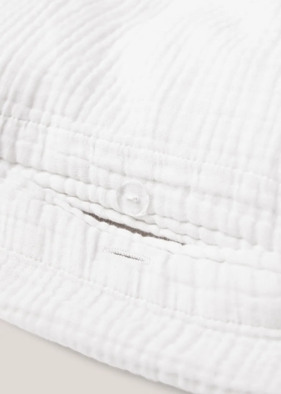 Wyłącznie online. Łóżko 135/140 cm. Wymiary: 220 x 220 cm. Bawełna 100%. Szyfonowa tkanina. Trzywarstwowy muślin. Miękka tekstura. Wykończenie w swobodnym stylu. Naturalne gniecione wykończenie. Szybkoschnąca tkanina. Przytulny i ciepły akcent. Dostępne w różnych kolorach. Śródziemnomorski styl. Pasuje do innych artykułów z kolekcji. Połącz ten artykuł z poszewkami na poduszki i jaśki z tej samej kolekcji, aby utrzymać wystrój sypialni w idealnej harmonii. Zapięcie na guziki. Bez wkładu.