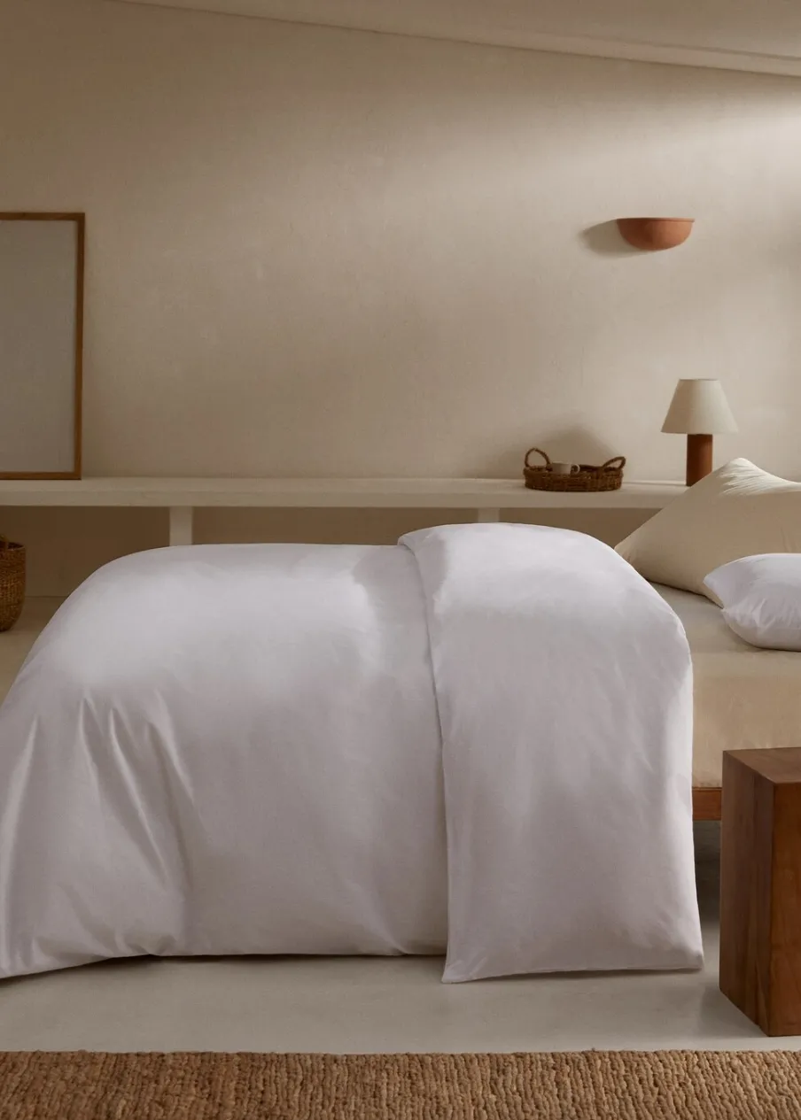 Wyłącznie online. Tkanina bawełniana typu perkal. Łóżko 135/140 cm. Wymiary: 220 x 220 cm. 180 TC. Tkanina gładka. Bawełniany perkal jest miękką i elastyczną tkaniną o wysokiej oddychalności. Odznacza się wytrzymałością na upływ czasu i wielokrotne pranie. Posiada doskonałe właściwości termiczne i zapewnia wysoki stopień komfortu gwarantujący zdrowy wypoczynek. Zapięcie na guziki. Bez wkładu.