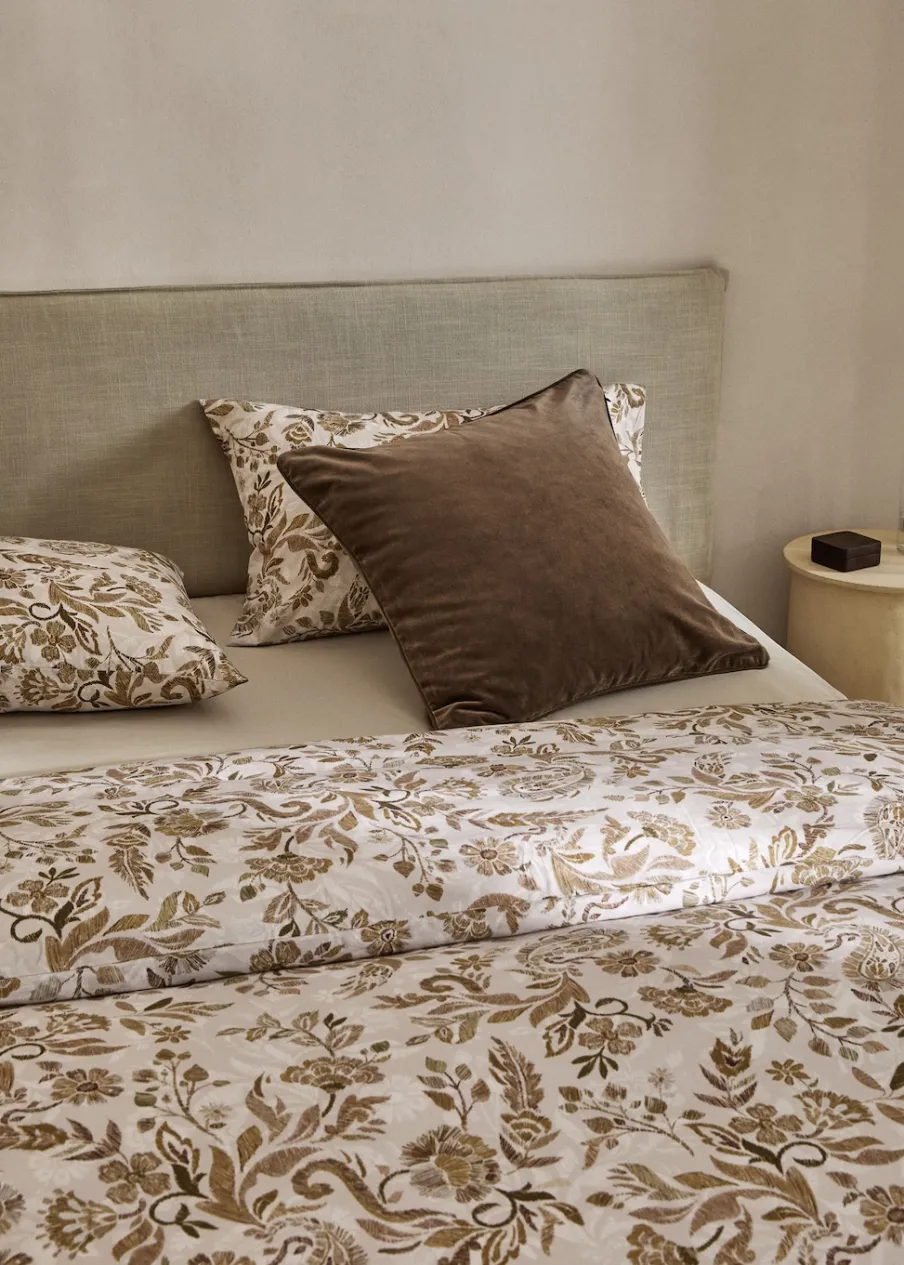 Wyłącznie online. Łóżko 90 cm. Łóżko pojedyncze. Wymiary: 150 x 220 cm. Tkanina perkalowa z 100% bawełny. 180 TC. Kwiatowy deseń. Przyjemny i miękki w dotyku. Pasuje do innych artykułów z kolekcji. Bez wkładu.