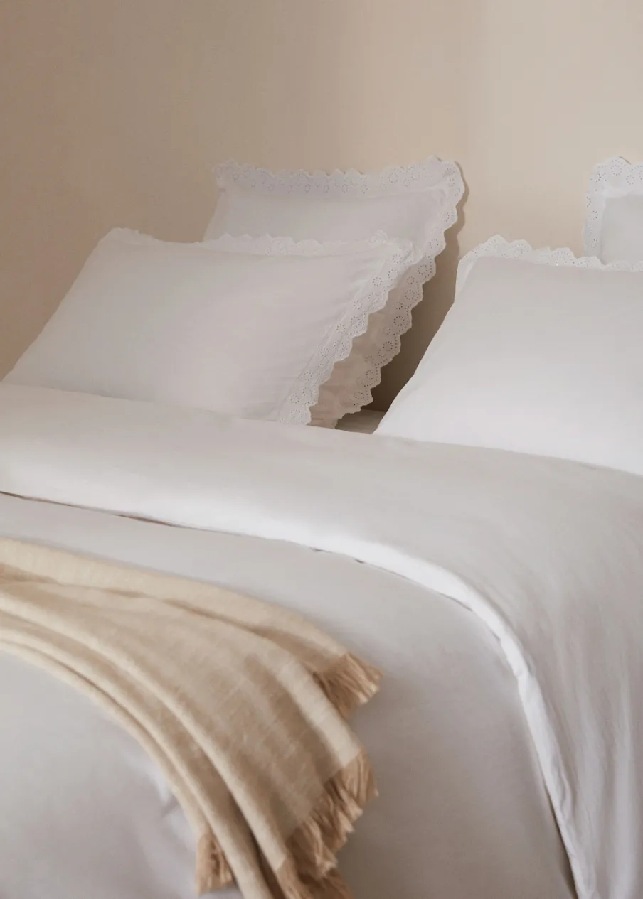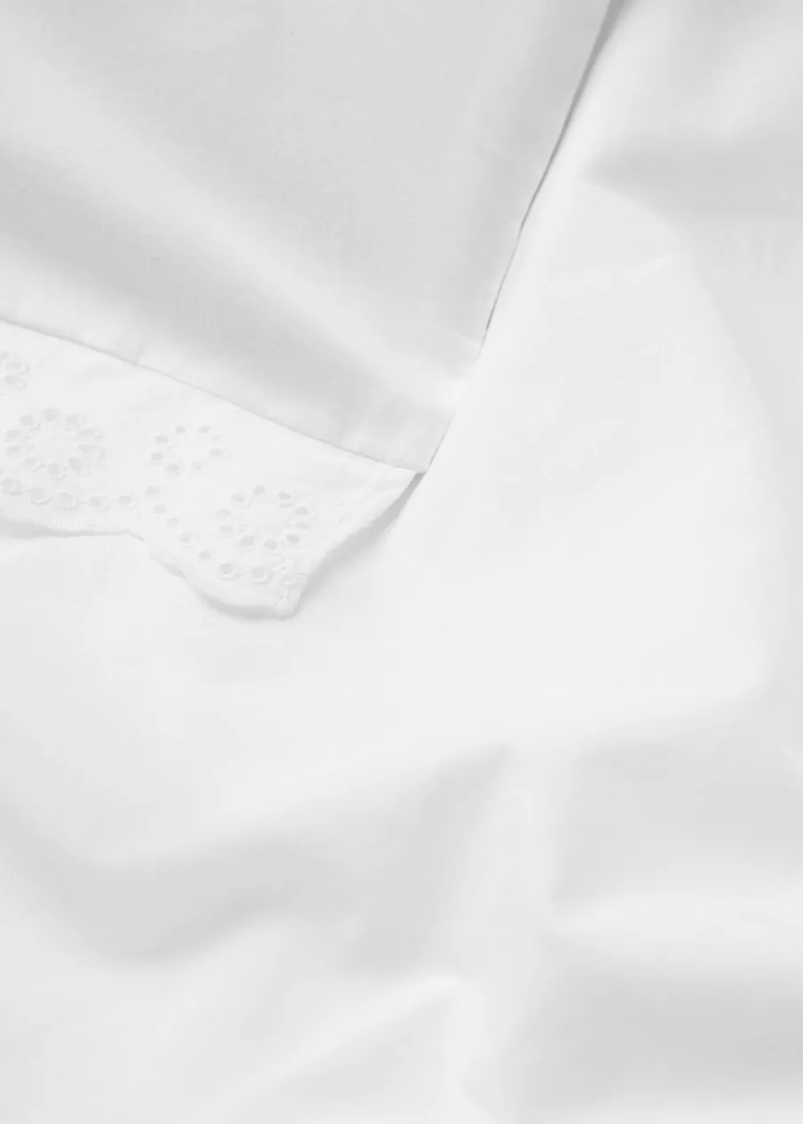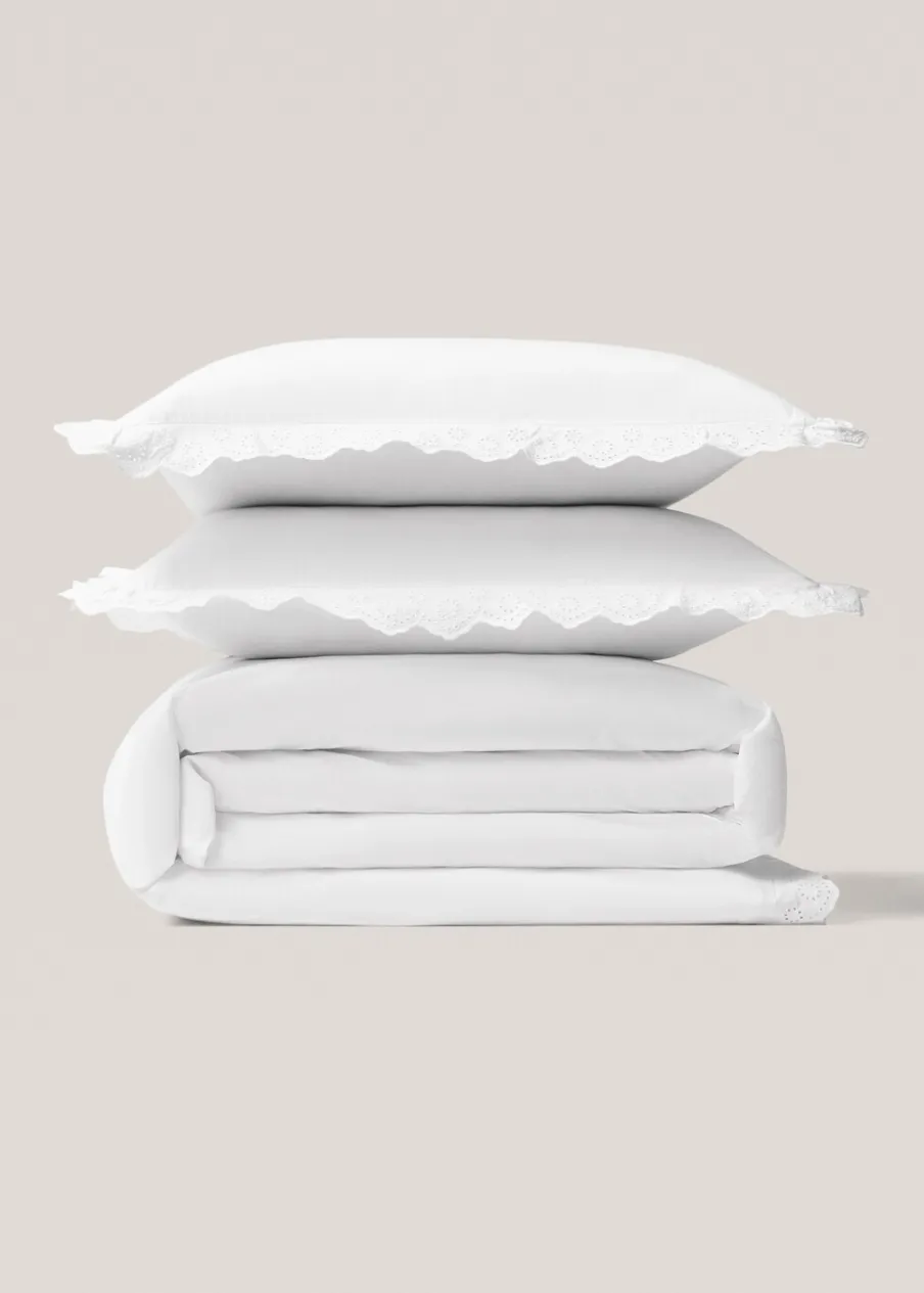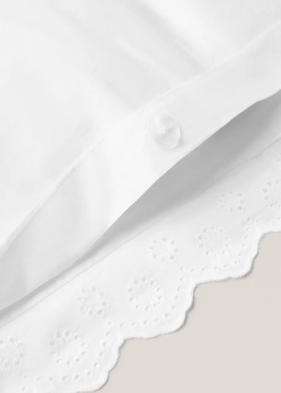 Łóżko 135/140. Wymiary: 220 x 220 cm. Bawełniany perkal jest miękką i elastyczną tkaniną o wysokiej oddychalności. Ozdobne falbany. Haftowana falbanka. Haftowane detale. Zapięcie na guziki. Bez wkładu. Łóżko 135/140 cm. 180 TC. Tkanina z 100% bawełny.