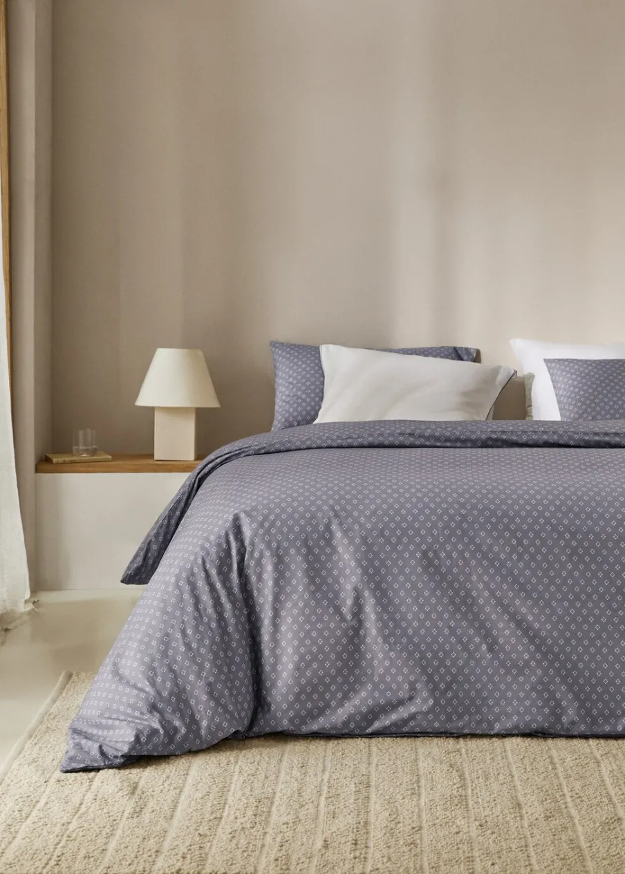 Wyłącznie online. Wymiary: 150 x 220 cm. Łóżko 90 cm. Łóżko pojedyncze. Tkanina perkalowa z 100% bawełny. Geometryczny wzór. Pasuje do innych artykułów z kolekcji. Bez wkładu. Doda nowoczesny i elegancki akcent do wystroju sypialni.