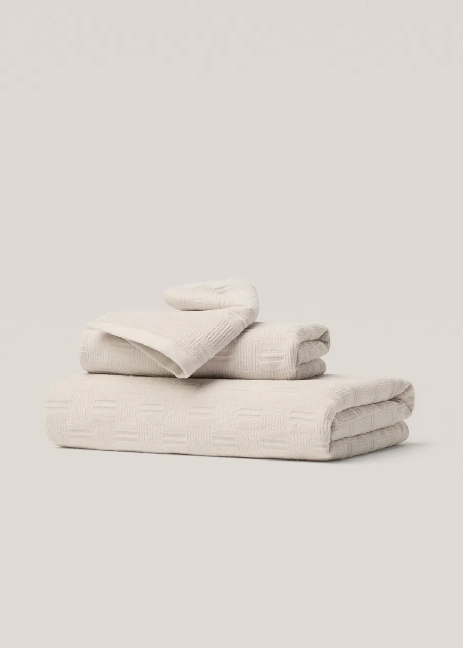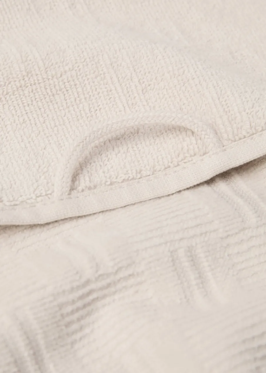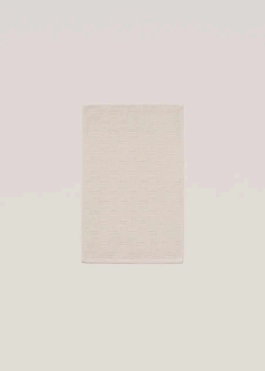 Ręcznik do twarzy. Wymiary: 30 x 50 cm. Dzianina żakardowa z 100% bawełny. Gramatura: 420 g/m2. Geometryczny deseń. Przyjemna tekstura. Poczuj komfortową miękkość tego chłonnego ręcznika. Jego wzornictwo rozjaśni Twoją łazienkę w najczystszym stylu śródziemnomorskim. Eleganckie wzornictwo tego ręcznika doda wyrafinowania wystrojowi łazienki. Jest lekki, kompaktowy i szybkoschnący – idealny na każdą okazję. Pasuje do innych artykułów z kolekcji.