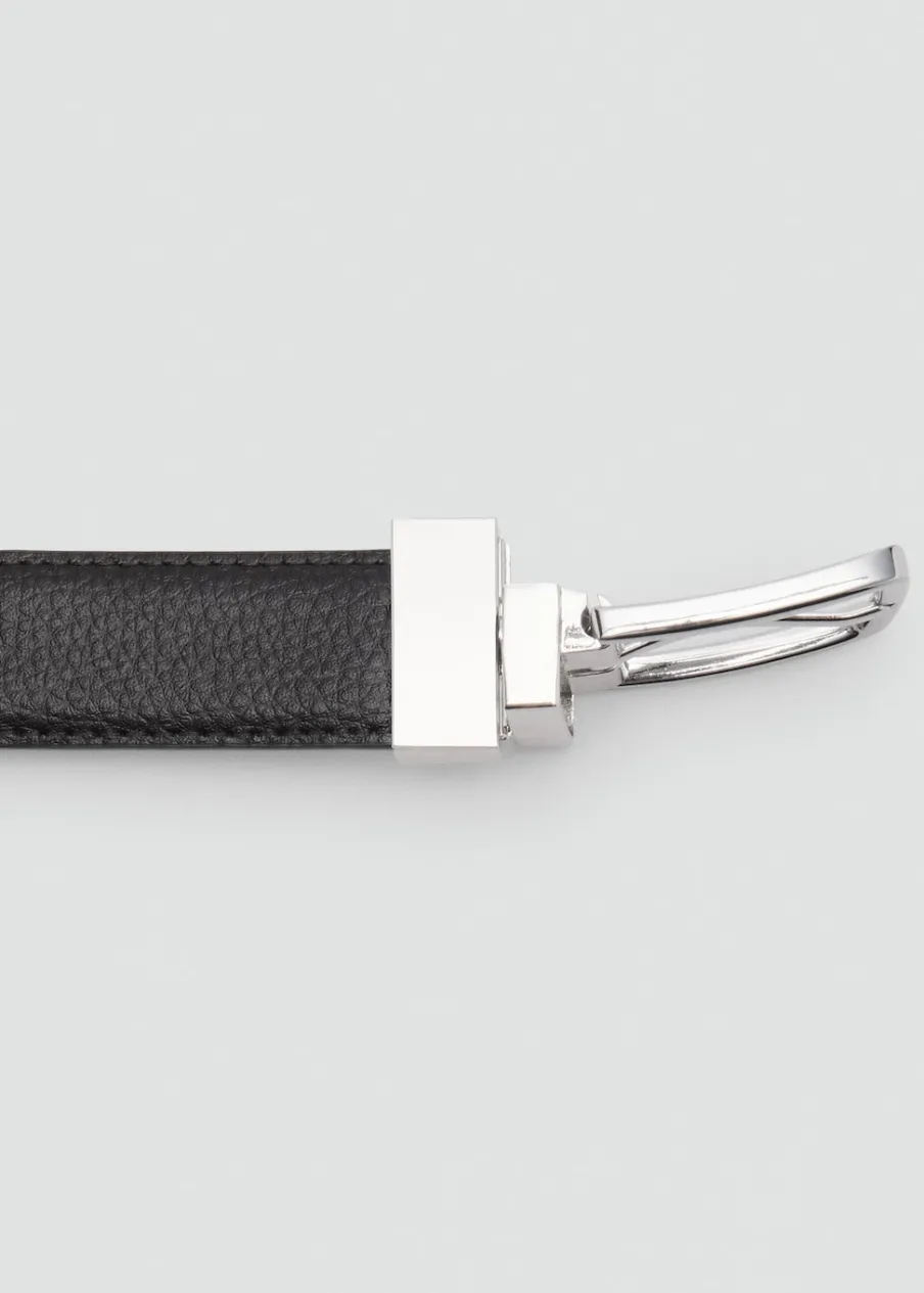 100% skóra bydlęca. Gnieciona skóra. Dwustronna metalowa klamra. Jedna strona z tłoczoną teksturą, druga gładka. Dorabianie dziurek w celu dopasowania rozmiaru gratis w sklepach MANGO.
