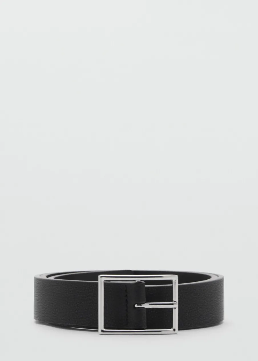 100% skóra bydlęca. Gnieciona skóra. Zapięcie na kwadratową, metalową klamrę. Dorabianie dziurek w celu dopasowania rozmiaru gratis w sklepach MANGO.