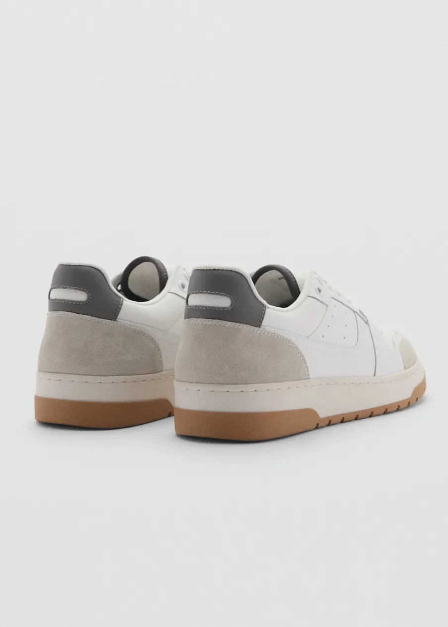 Wierzch ze skóry. Kontrastowe wstawki z dwoiny. Okrągły nosek. Stębnowane detale. Wiązanie na sznurówki. Gruba podeszwa z gumy w kontrastowym kolorze.
