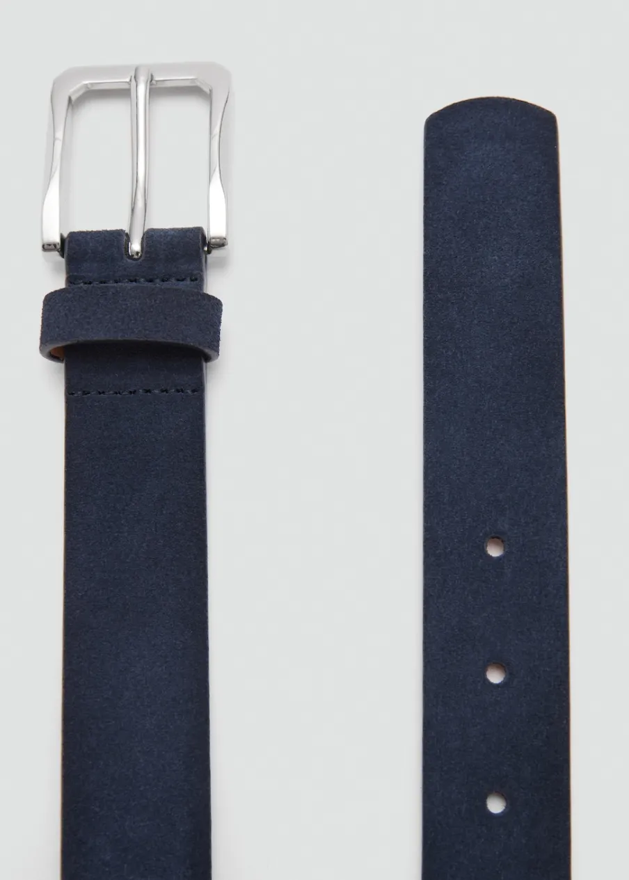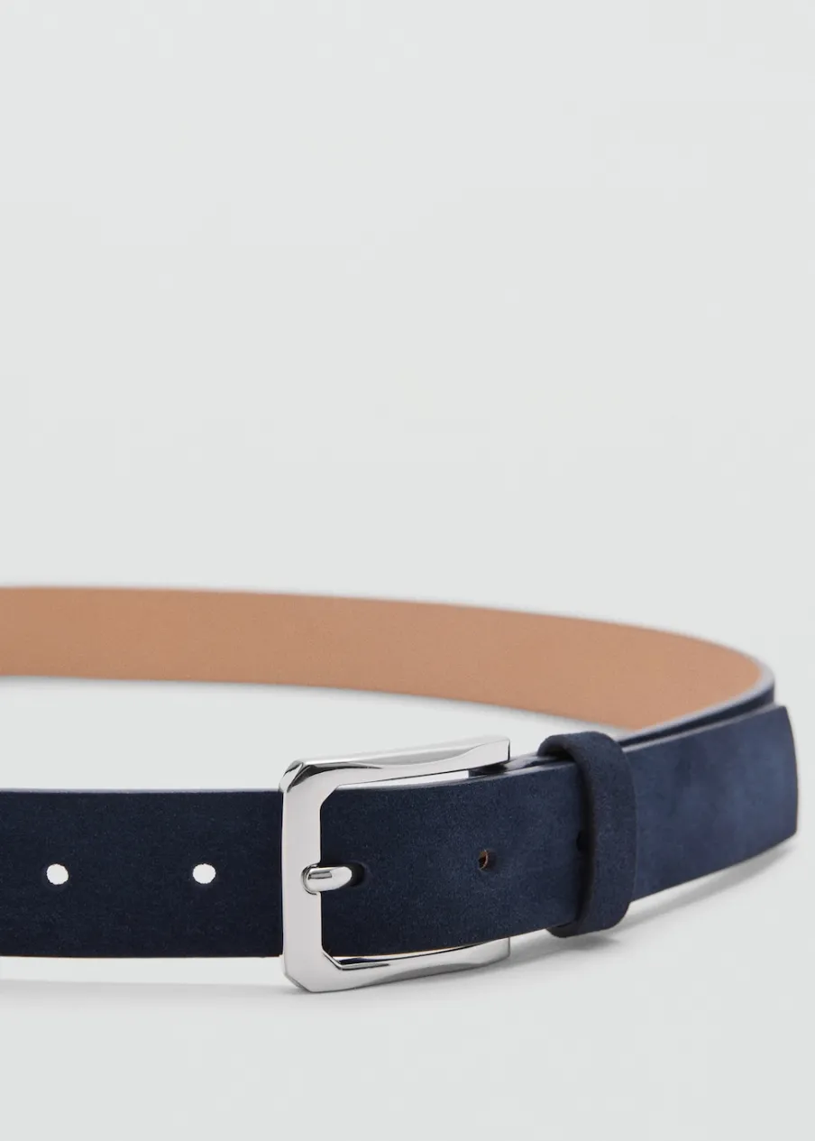 100% skóra zamszowa. Zapięcie na kwadratową, metalową klamrę. Dorabianie dziurek w celu dopasowania rozmiaru gratis w sklepach MANGO.