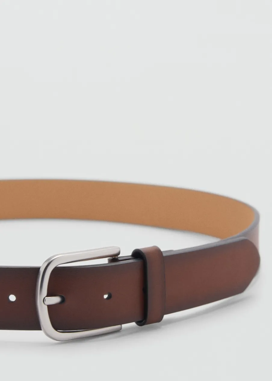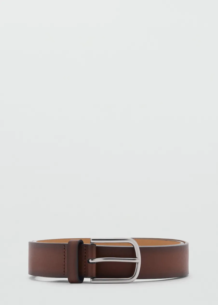 Metalowa klamra. Szorstka skóra z ciemną patyną tworzącą efekt cieniowania. Dorabianie dziurek w celu dopasowania rozmiaru gratis w sklepach MANGO.