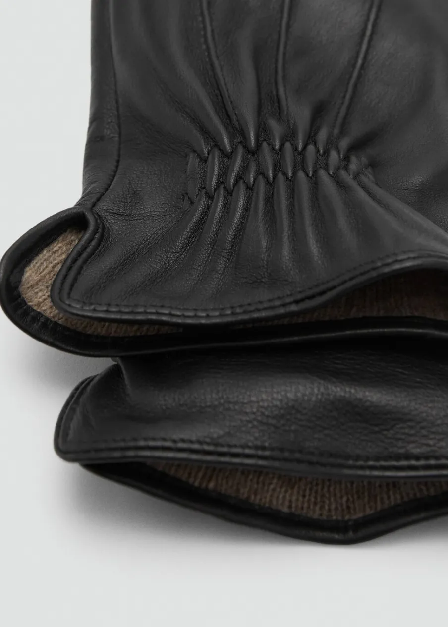 OpisSkóra owcza 100%. Wełniana podszewka. Marszczony detal. Ozdobne szwy.