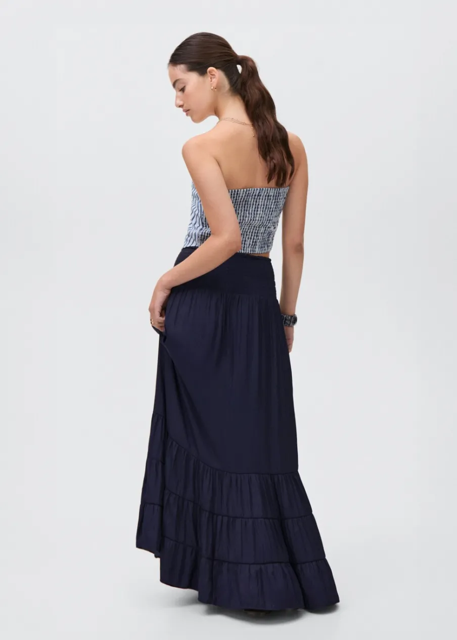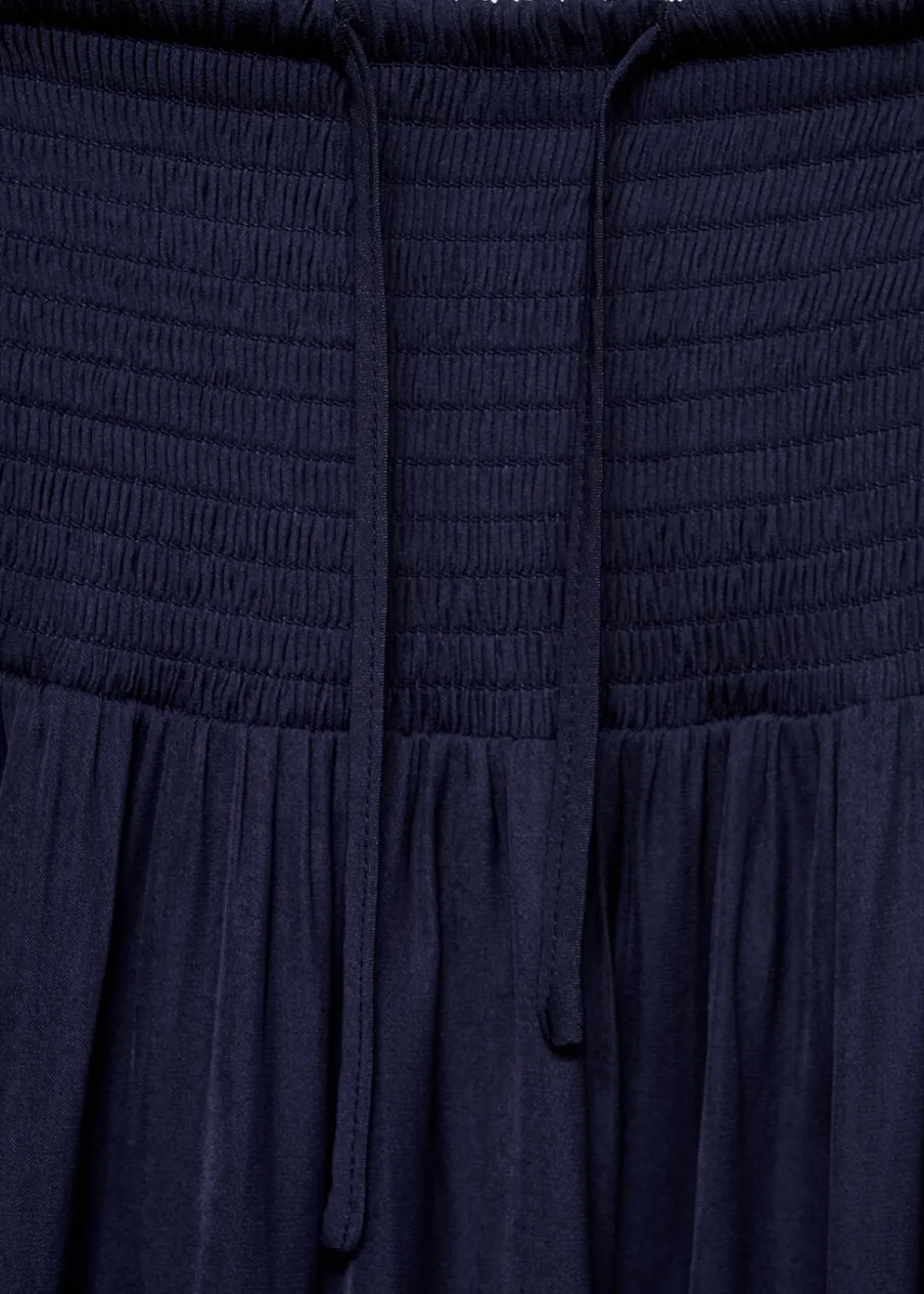 Model długi. Elastyczny pas. Ozdobne marszczenie.