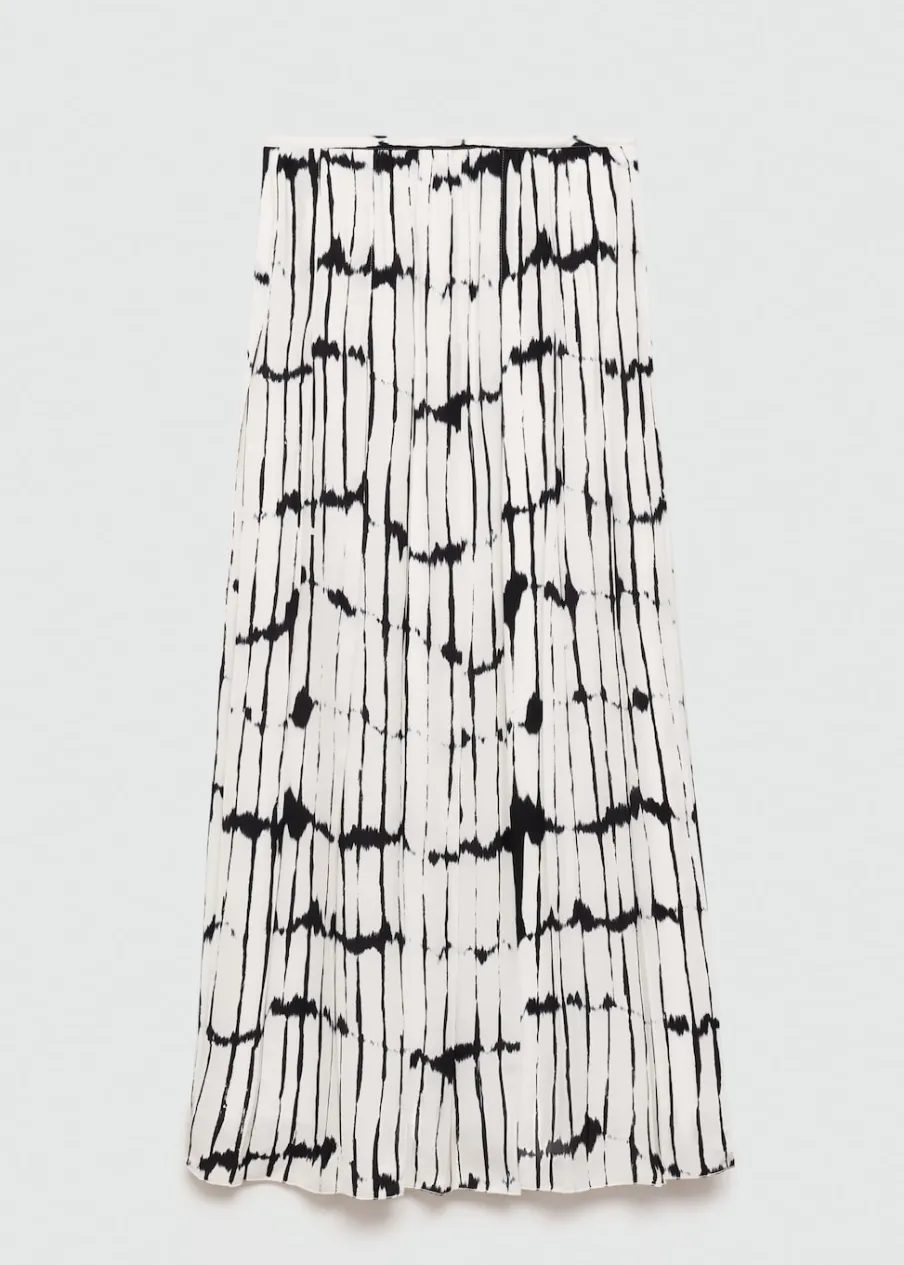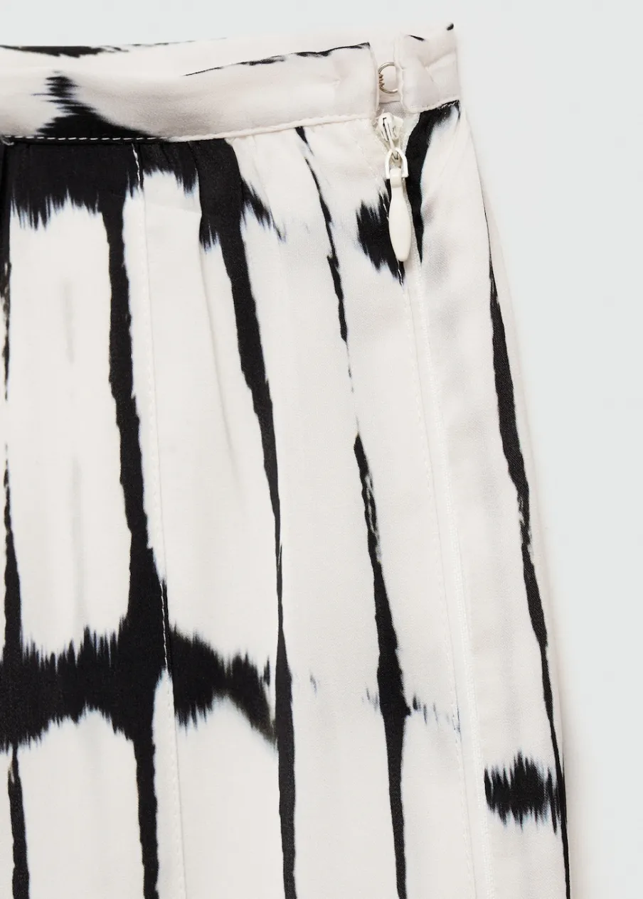 OpisLejąca tkanina. Model długi. Model prosty. Wzór w pasy. Kryte zapięcie na zamek z boku. Total look.