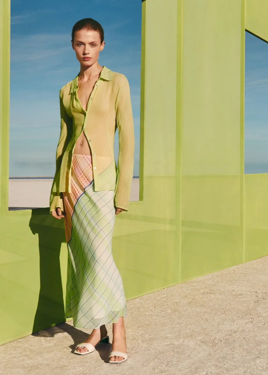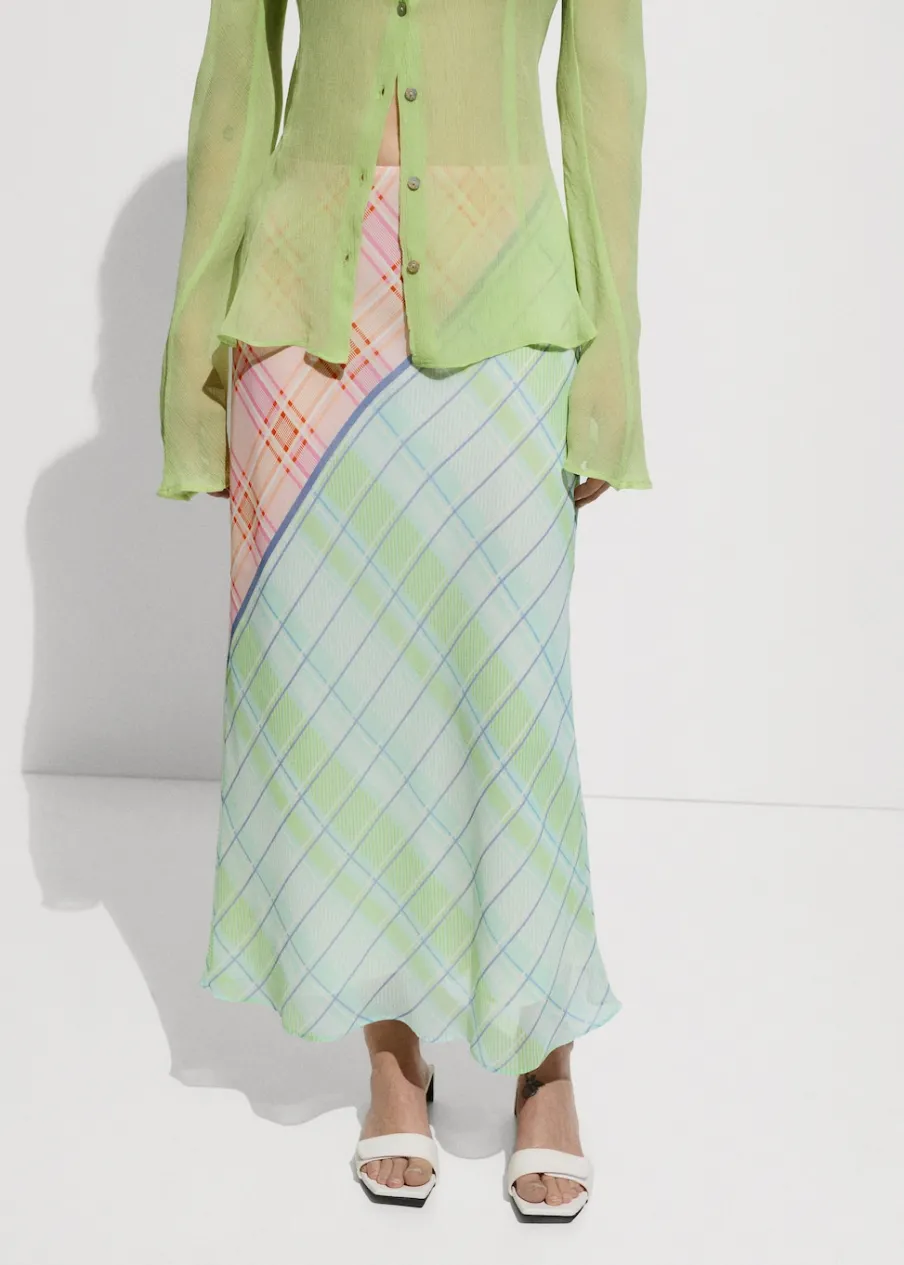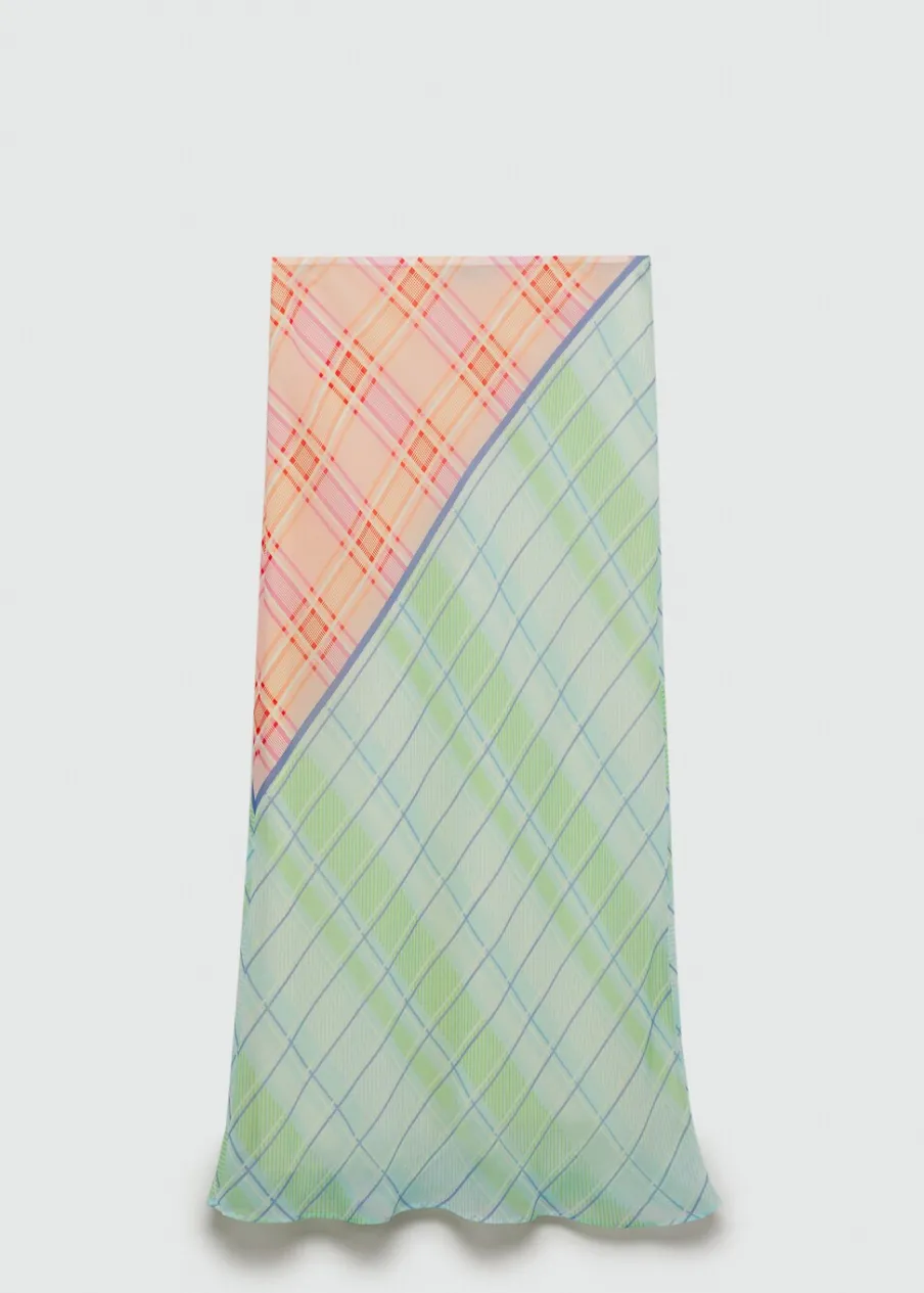 Lejąca tkanina. Model prosty. Model długi. Wzór w kratę. Elastyczny pas. Bez zapięcia. Wewnętrzna podszewka.