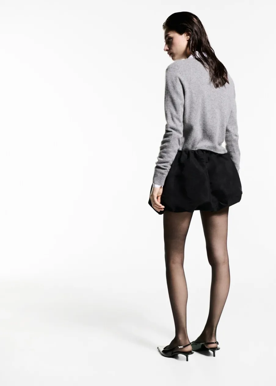 Krótki krój. Model evasé. Niski stan. Elastyczny pas. Bez zapięcia. Modelka ma 177 cm wzrostu i nosi rozmiar S/36. Kolekcja wizytowa.
